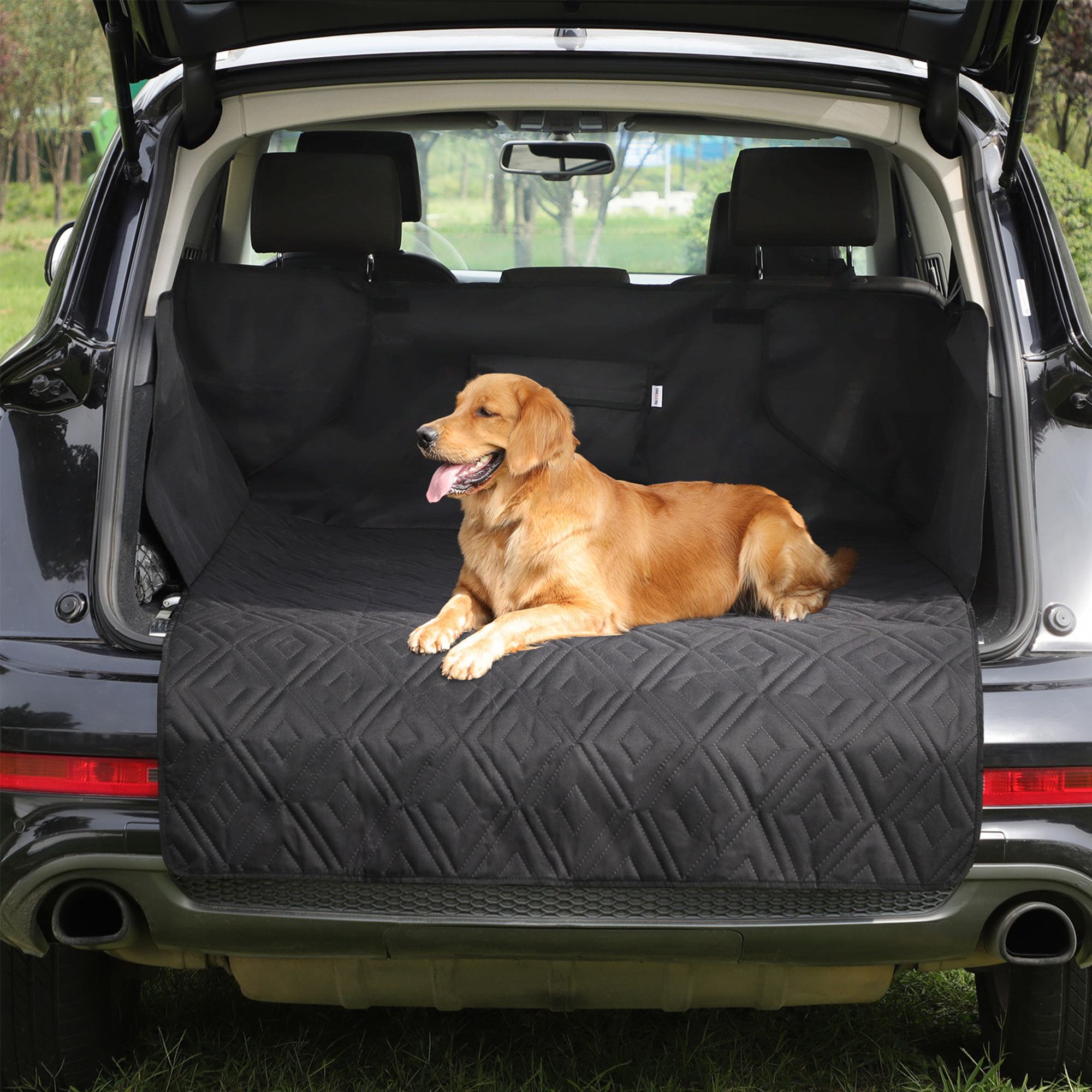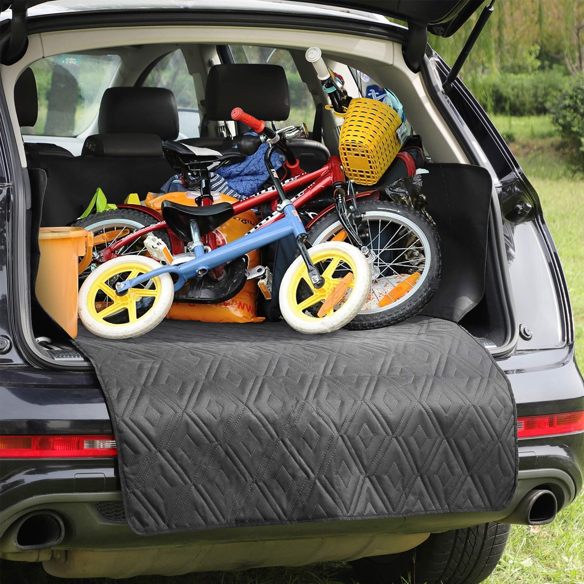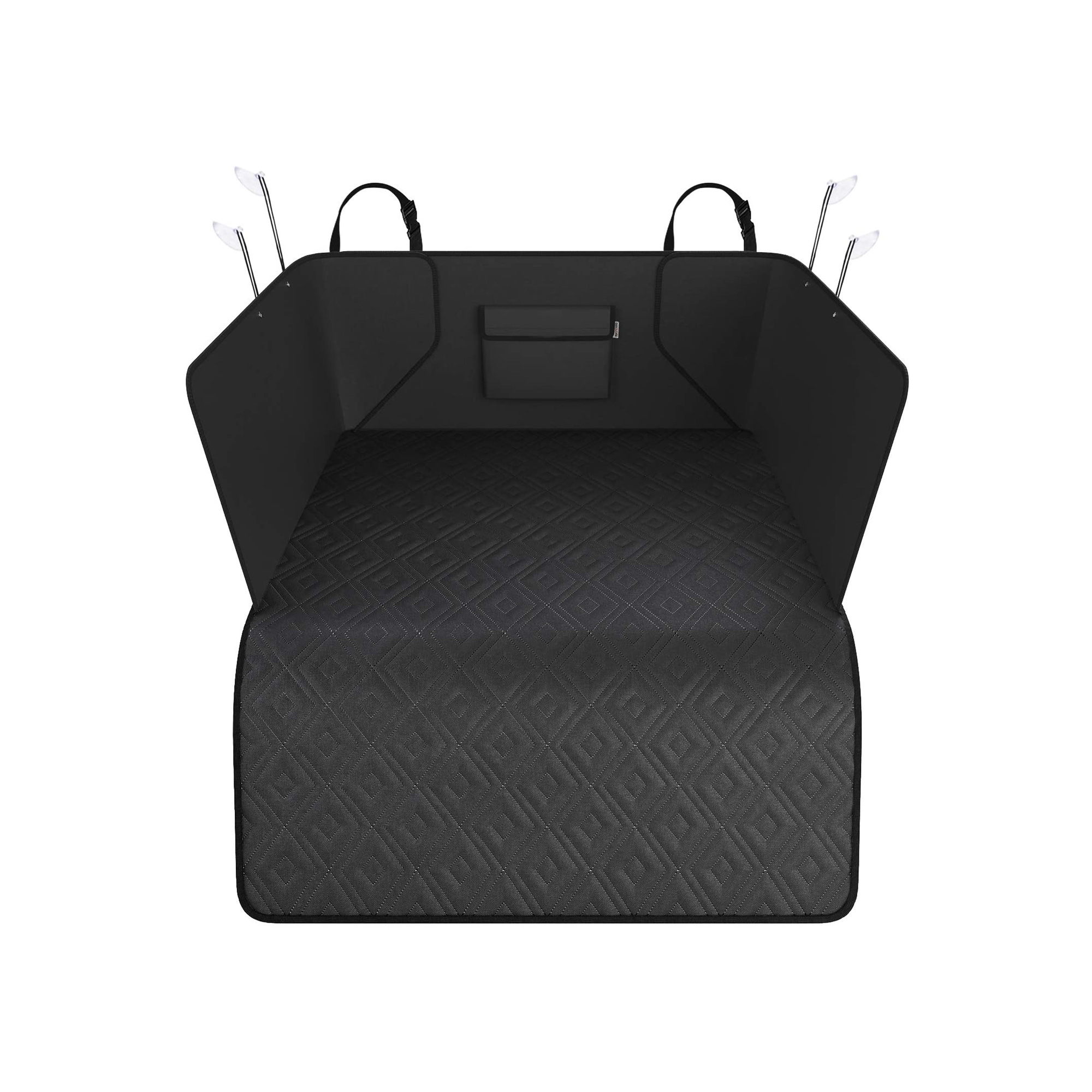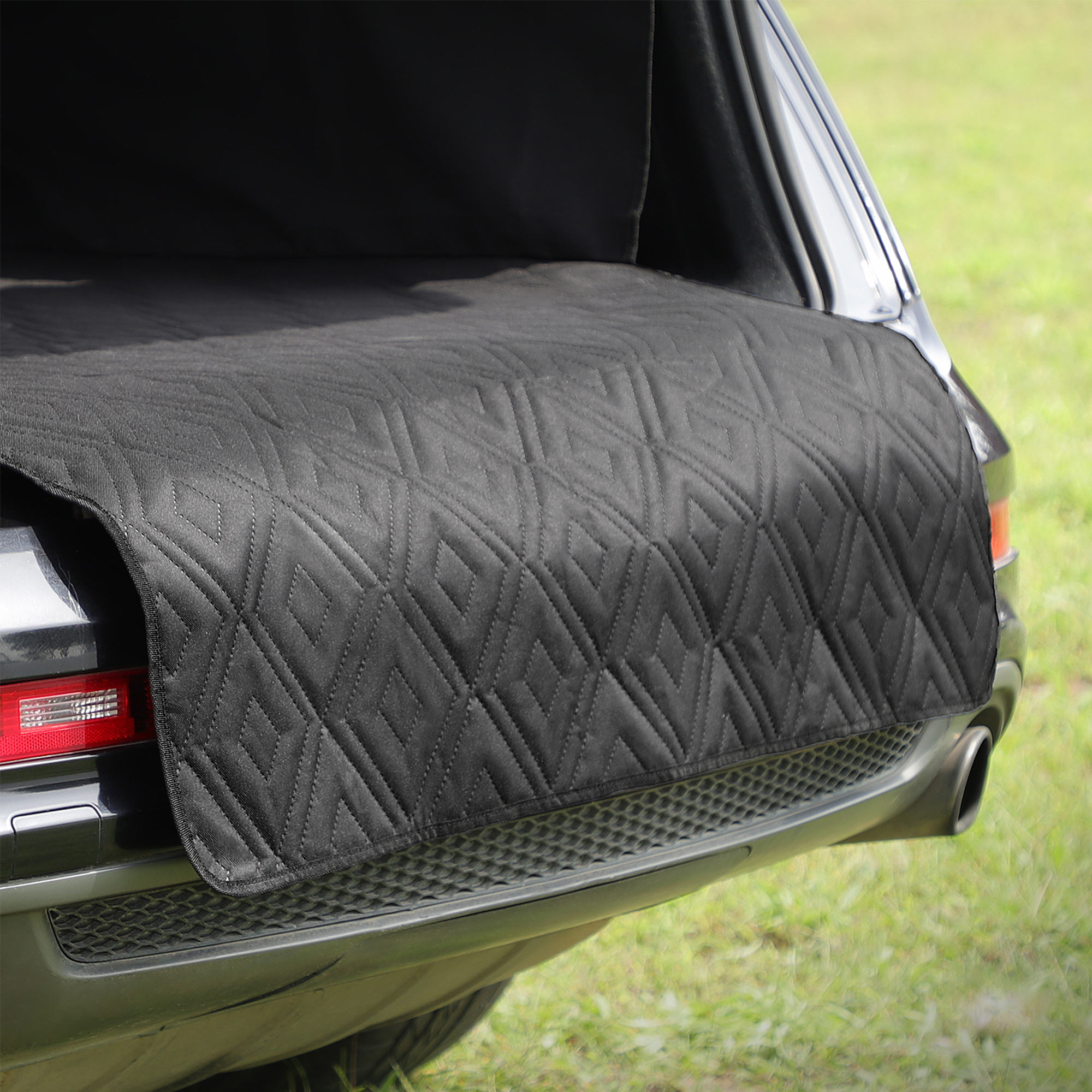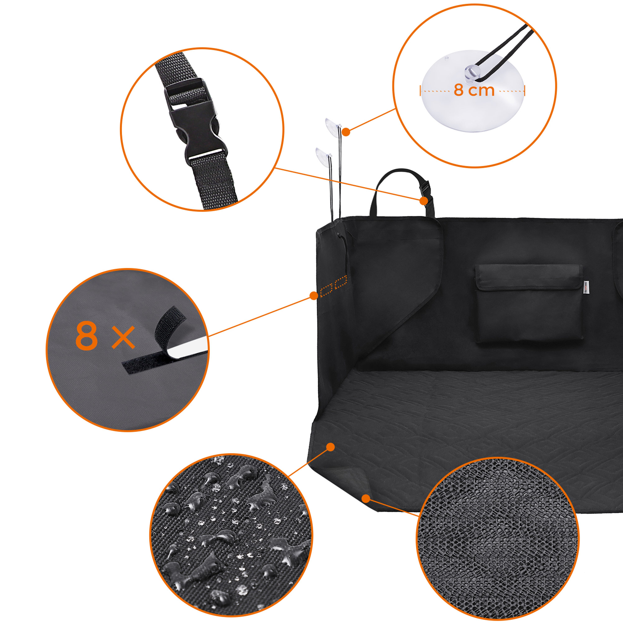 Hund ombordÄven om du naturligtvis älskar din fyrbenta vän, är hår, smuts och små repor i din bil ett irritationsmoment? Denna hundfilt från FEANDREA skyddar både din hund och din bagageutrymme. Passar denna hundfilt i min bil?Hundfilten är 185 x 105 cm stor. Fästremmarna och -linorna kan justeras i längden. Därmed passar denna produkt i nästan alla vanliga personbilar och SUV-modeller. Kan denna underlägg skydda min bil från alla typer av smuts? Filten har en vattentät TPU-film och ultraljudssömmar som helt klarar sig utan nålstick. På så sätt skyddas din bil optimalt mot våta hundtassar, lera, saliv eller urin. Produktdetaljer:- Färg: Svart – Material: 600D Oxford-tyg, PP-fyllning, TPU-film, halkskyddsnät i PVC – Storlek: 185 x 105 cm (L x B x H) – Vikt: 1,8 kg Leveransomfattning: – 1 x hundtäcke för bagageutrymmet FEANDREA Anmärkningar: – Ej lämpligt för maskintvätt!