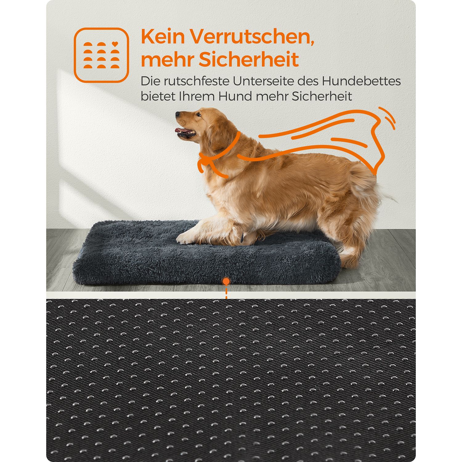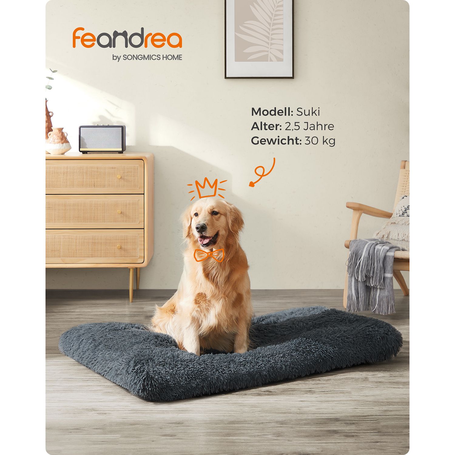 Feandrea hundbädd, hundkudde, fluffig hundmatta, lång plysch, 80 x 50 cm, mjuk stoppning, maskintvättbar, hundkorg, multifunktionell, bärbar, ljusgrå PGW201G01