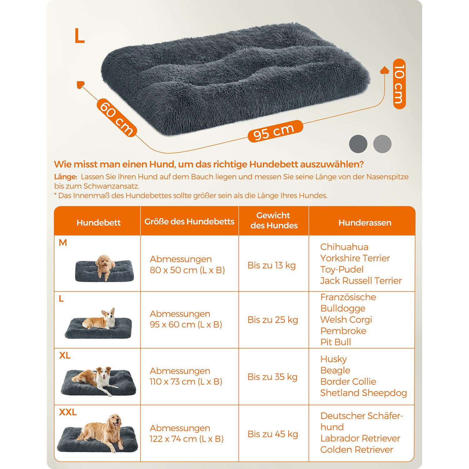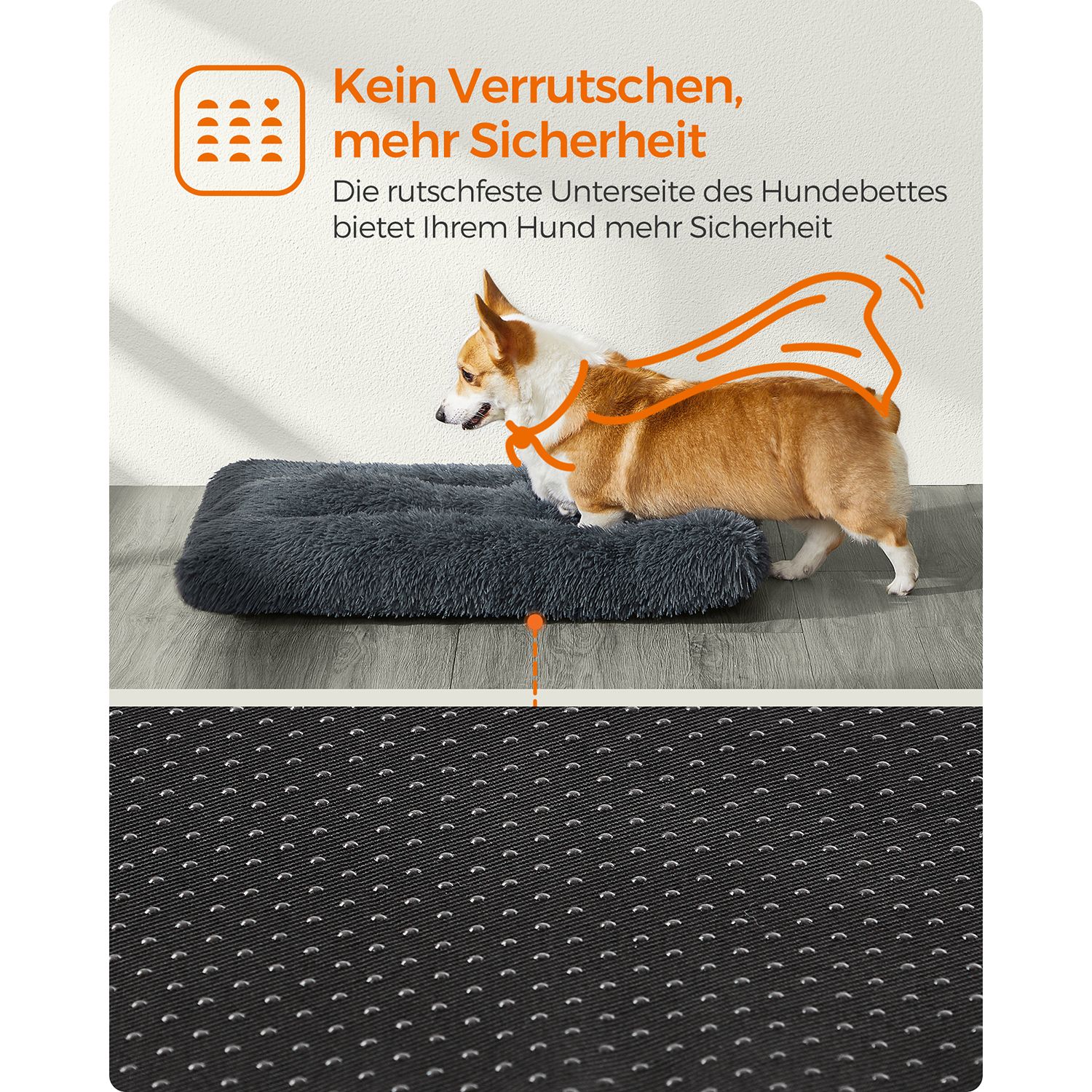 Feandrea hundbädd, hundkudde, fluffig hundmatta, lång plysch, 80 x 50 cm, mjuk stoppning, maskintvättbar, hundkorg, multifunktionell, bärbar, ljusgrå PGW201G01