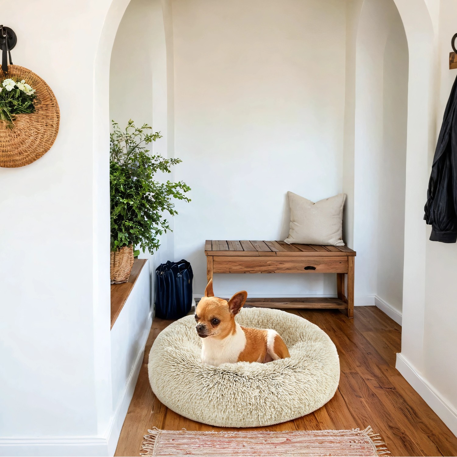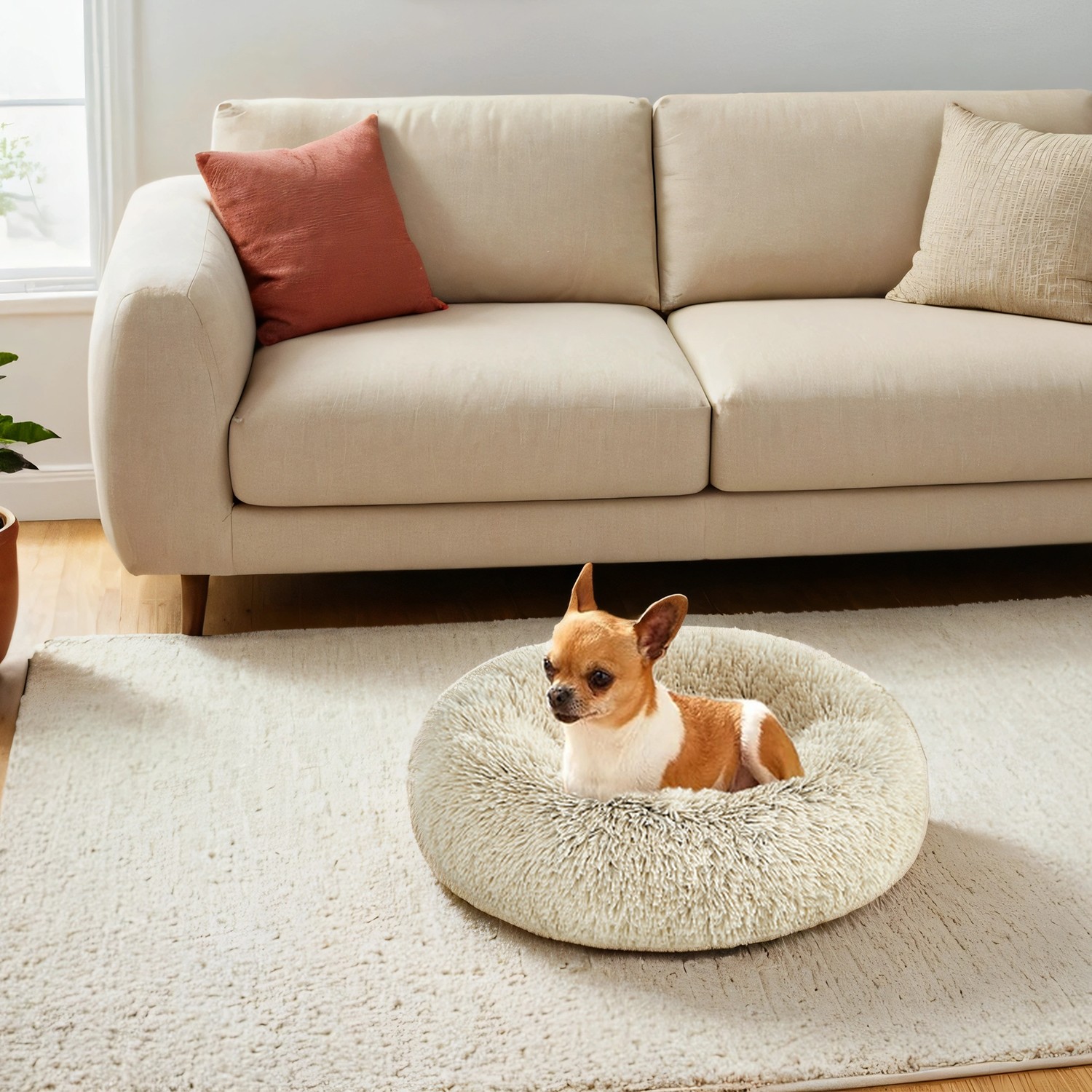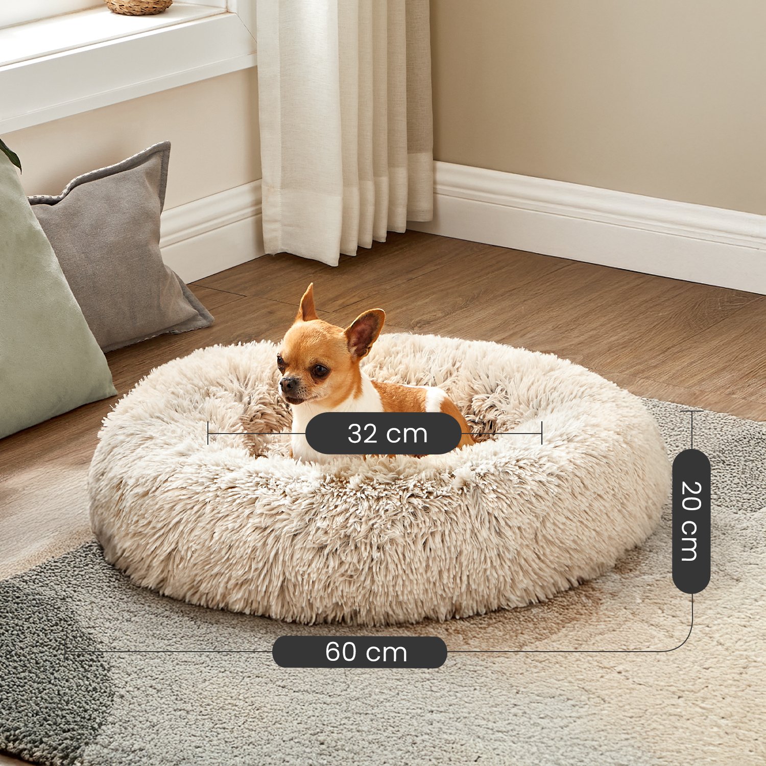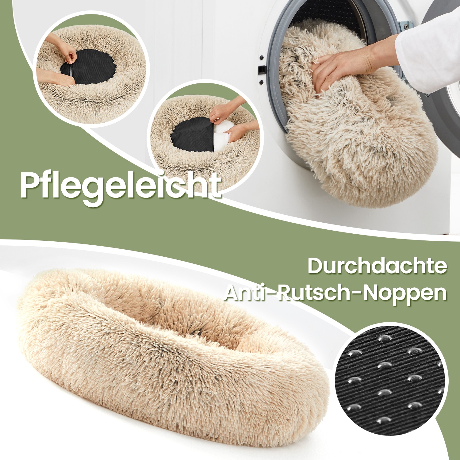 Alltid vid din sida: Var sover dina fyrbenta vänner helst, i vardagsrummet eller i sovrummet? Eller vill de bara koppla av bredvid dig? Lägg denna hundkudde, fylld med nya, oanvända minnesskumflisor, bredvid ditt skrivbord så att din älskling kan ligga bekvämt bredvid dig medan du arbetar. Kvalitet eller stil? Denna söta, donutformade hundbädd kompromissar inte med kvaliteten. Högkvalitativ plysch, nya, oanvända minnesskumflingor, PP-stoppning, halkfri undersida, bekväm och hållbar – denna hundsoffa har många fördelar. Den har också en dragkedja på undersidan så att du enkelt kan ta ut stoppningen i mitten av kudden och rengöra resten. Denna säng är lämplig för små och medelstora hundar eller katter och är en utmärkt present till dina fyrbenta vänner.Produktdetaljer: Färg: Khaki Material: Plush, PP-stoppning, nya, oanvända minnesskumflingor Storlek: 60 x 20 cm (Ø x H) Vikt: 1 kg Leveransomfattning: 1 x hundbädd FEANDREA Anmärkningar: Produkter med sömmar kan avvika 2-3 cm från de mått vi anger. Kontrollera också innan köpet att produktens storlek passar ditt husdjur. Denna produkt levereras i en vakuumförpackning. Skaka den efter uppackningen så att den når sin fulla storlek.Vi rekommenderar att du tvättar denna produkt för hand eller använder en dammsugare och en fuktig trasa för rengöring. Skaka produkten efter rengöring så att den återgår till sitt ursprungliga skick. Använd inte denna produkt i närheten av värmekällor över 40 °C. Om du har golvvärme, använd en extra underlägg.