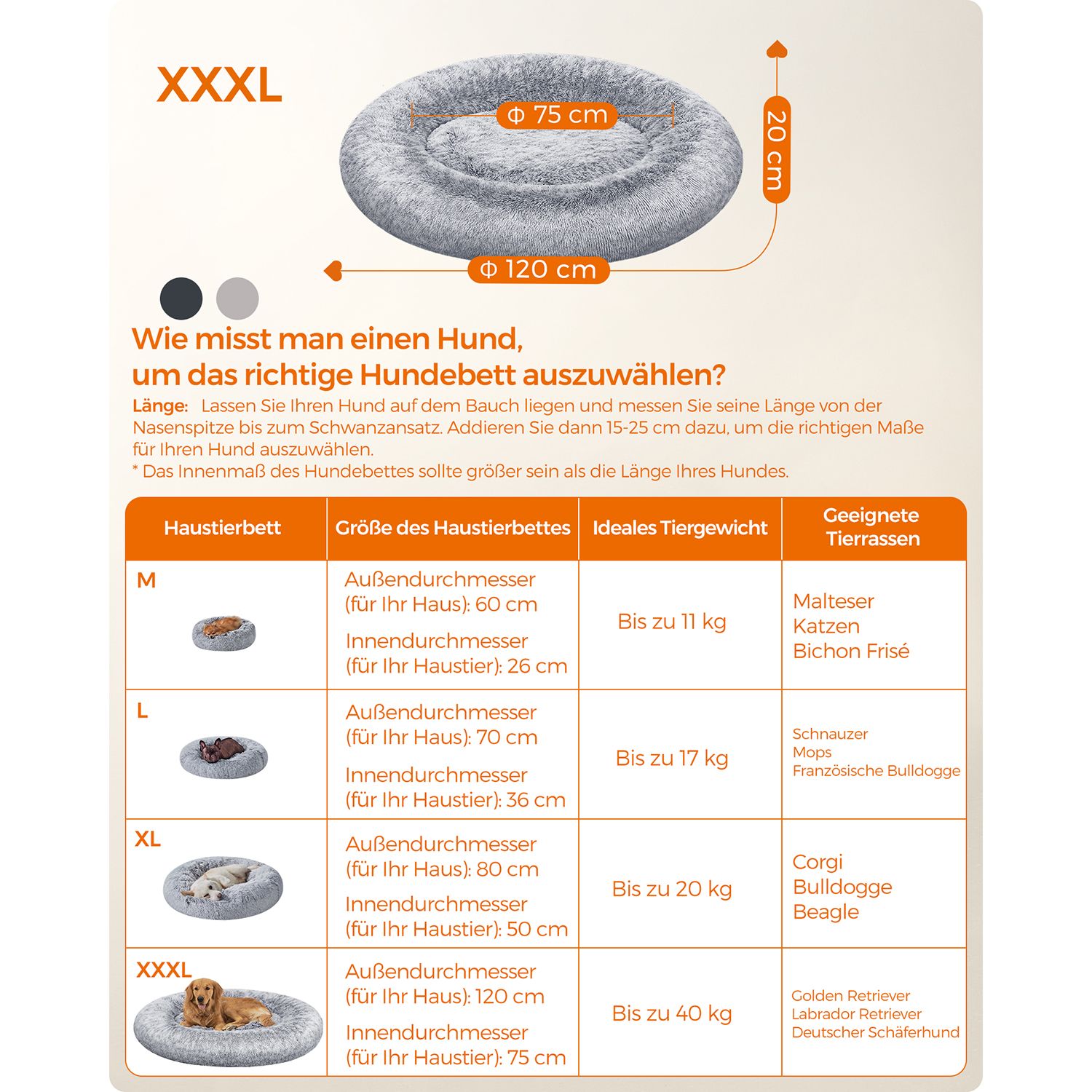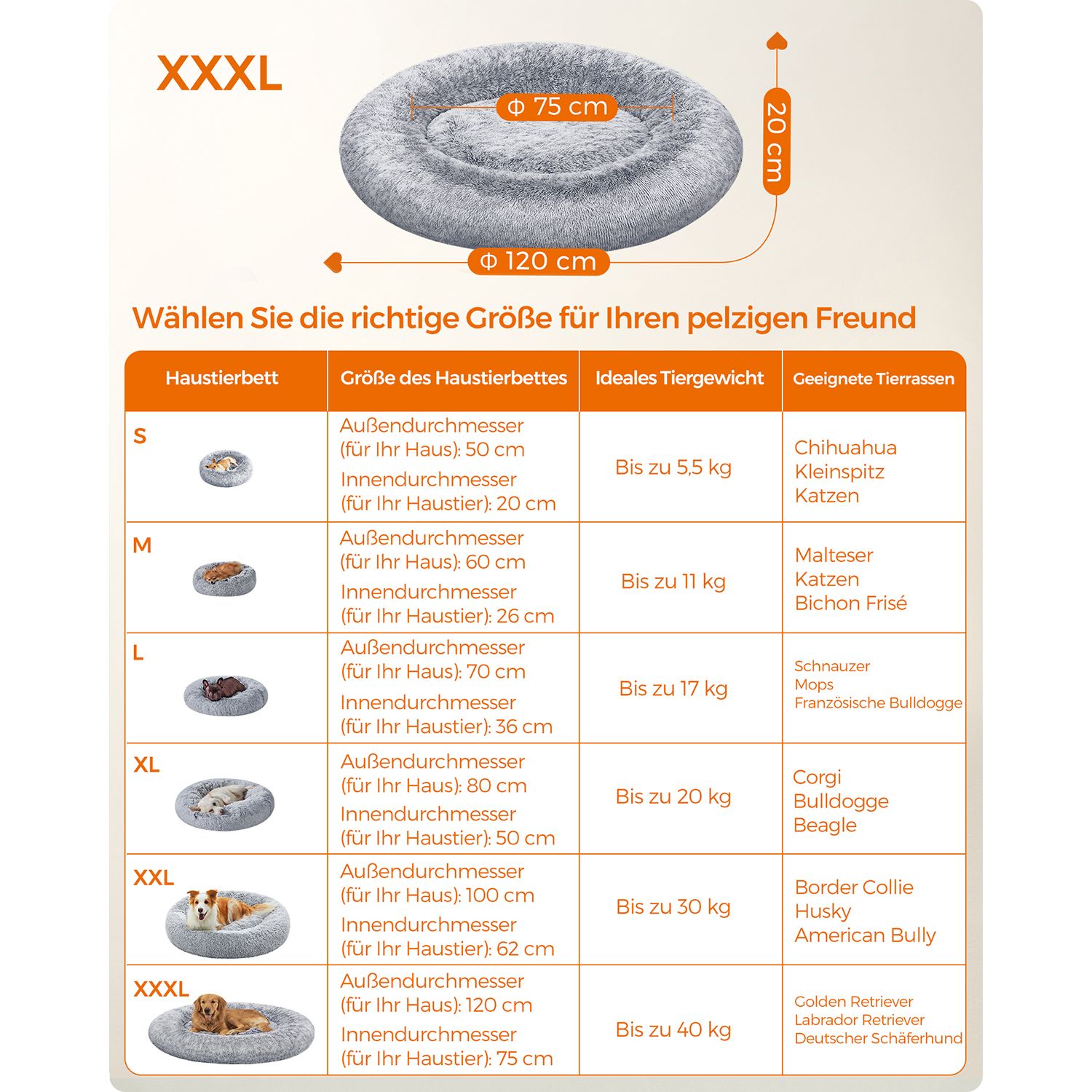 Feandrea Fluffig hundbädd Ø 120 cm ljusgrå