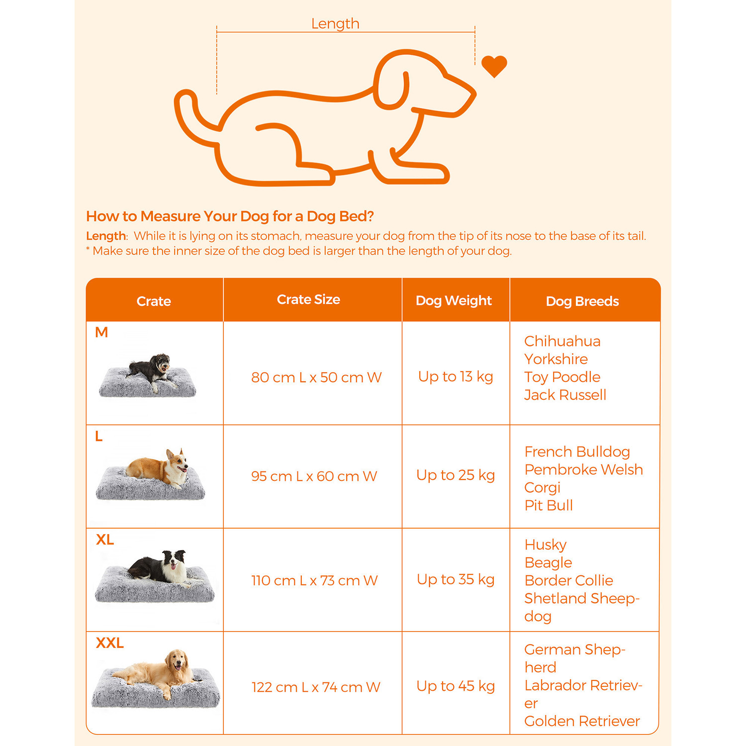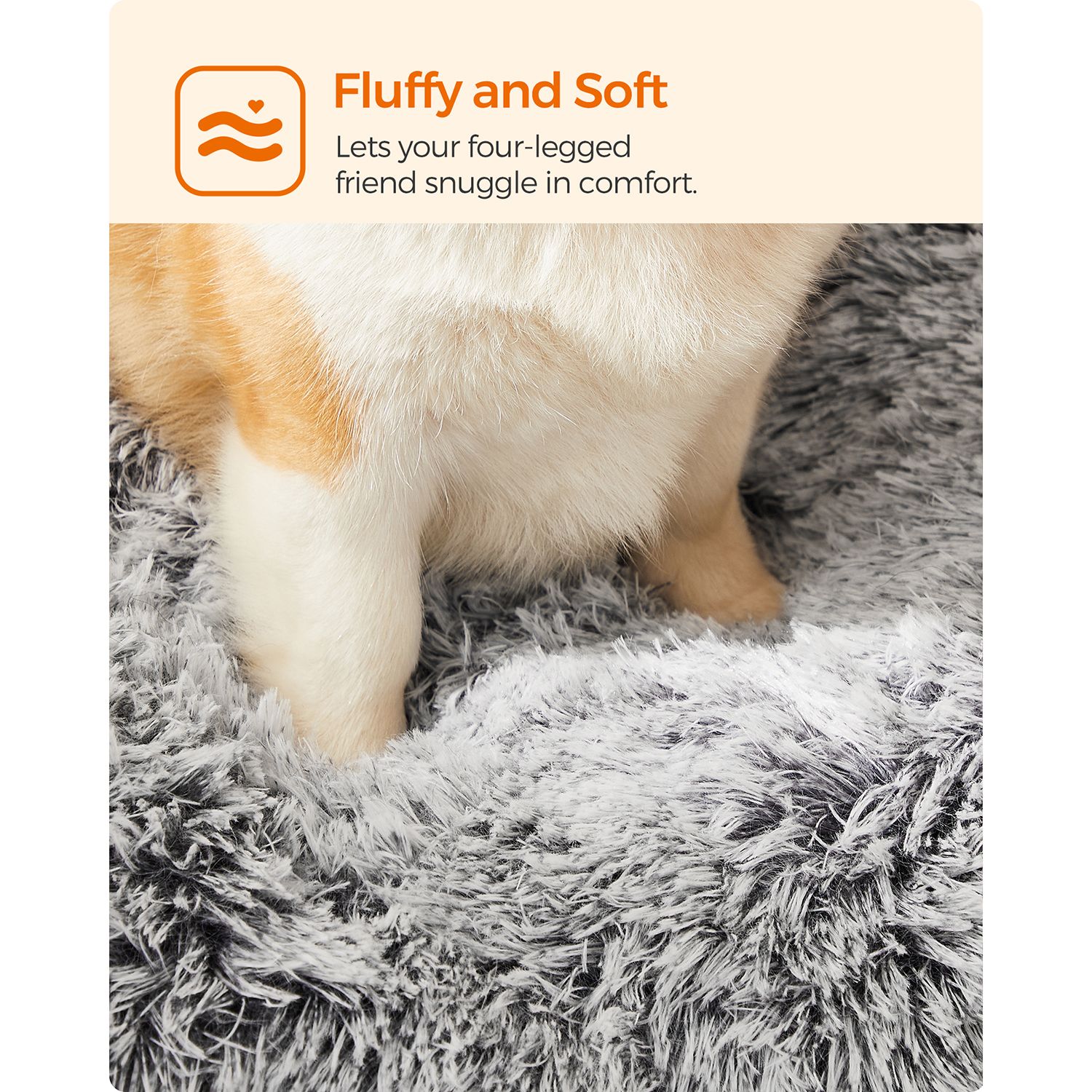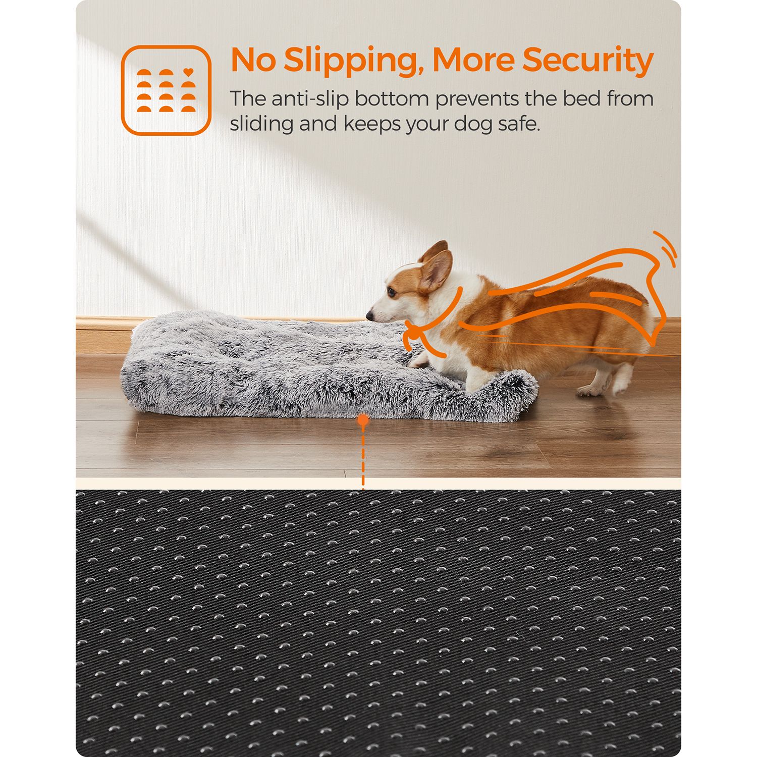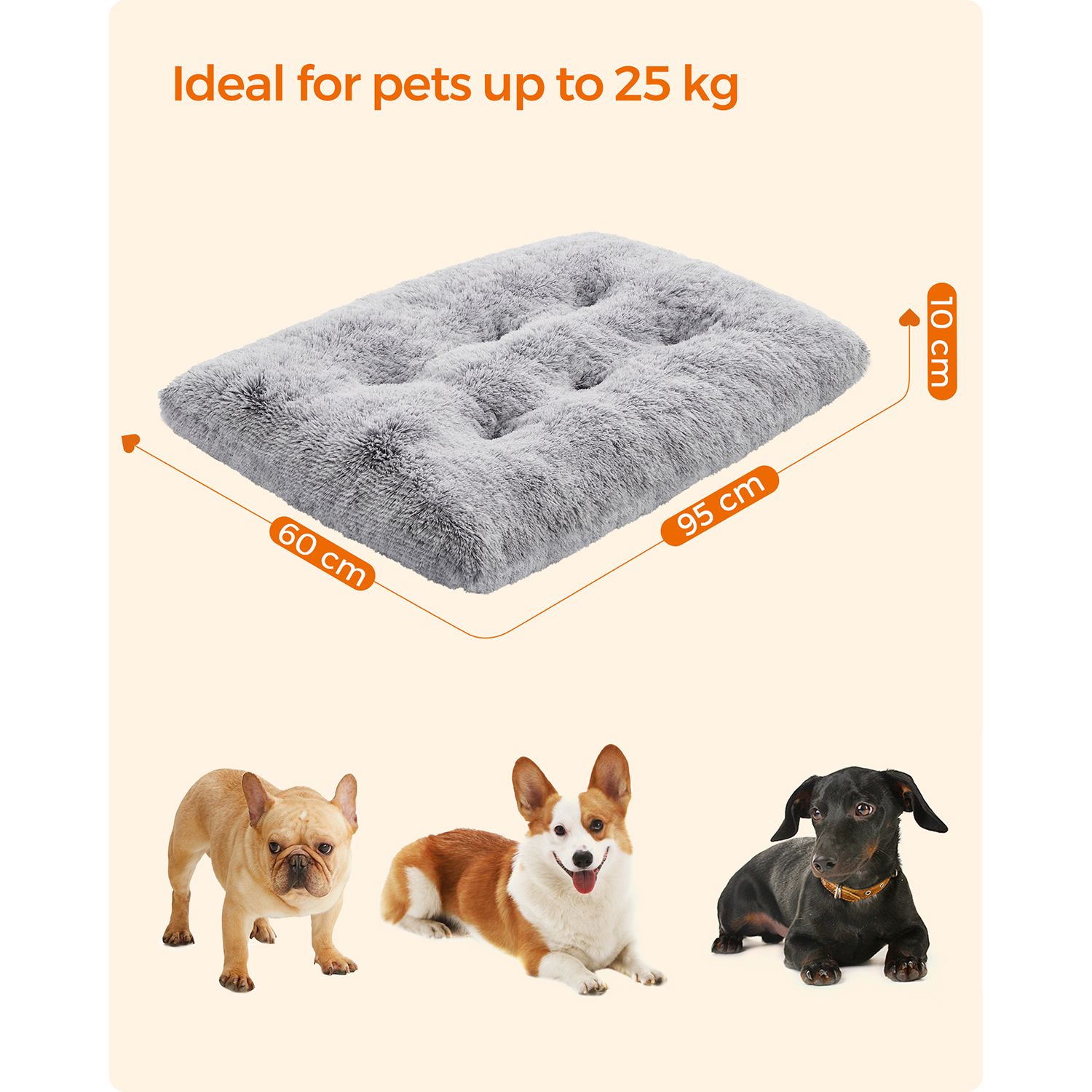 Feandrea hundbädd, hundkudde, fluffig hundmatta, lång plysch, 80 x 50 cm, mjuk stoppning, maskintvättbar, hundkorg, multifunktionell, bärbar, ljusgrå PGW201G01