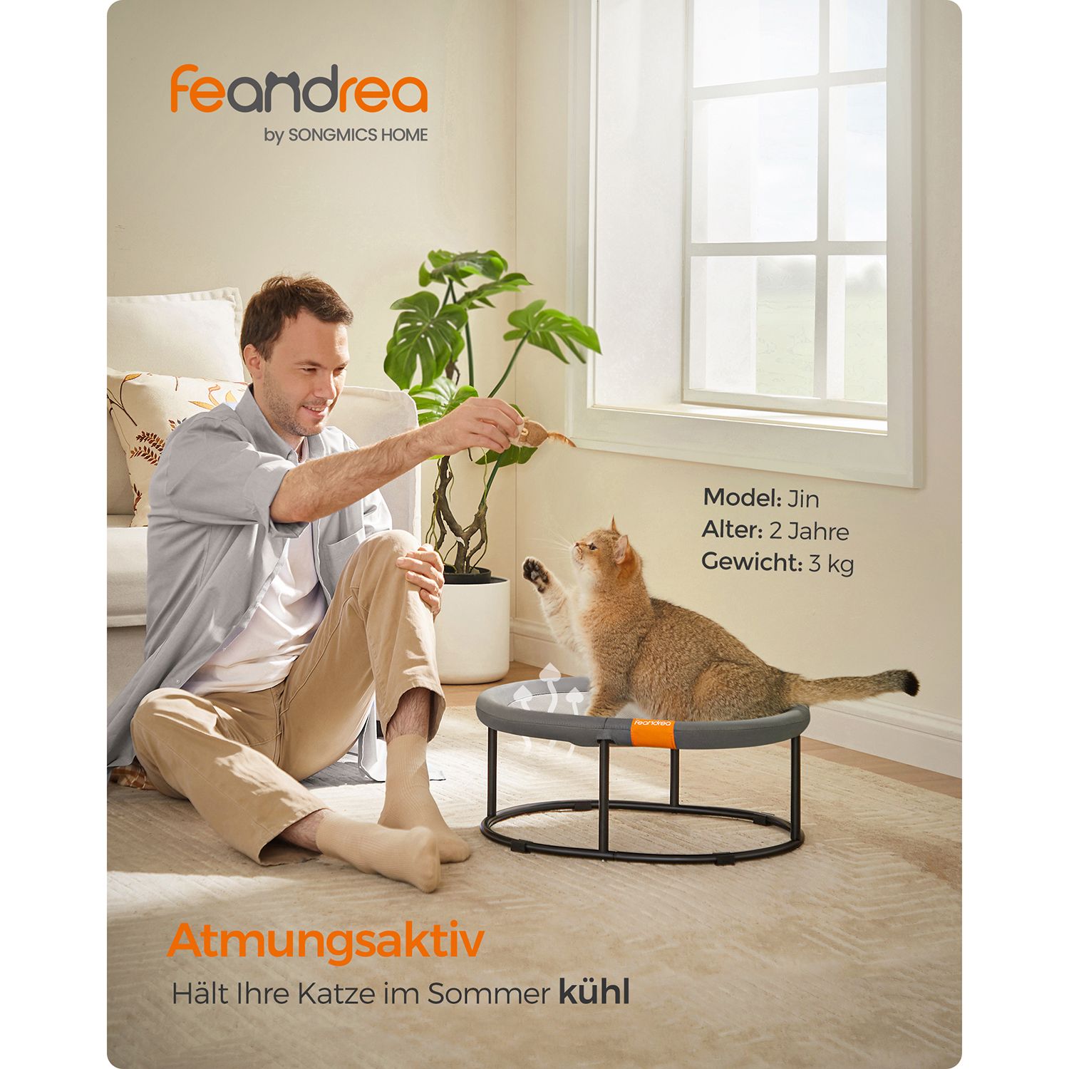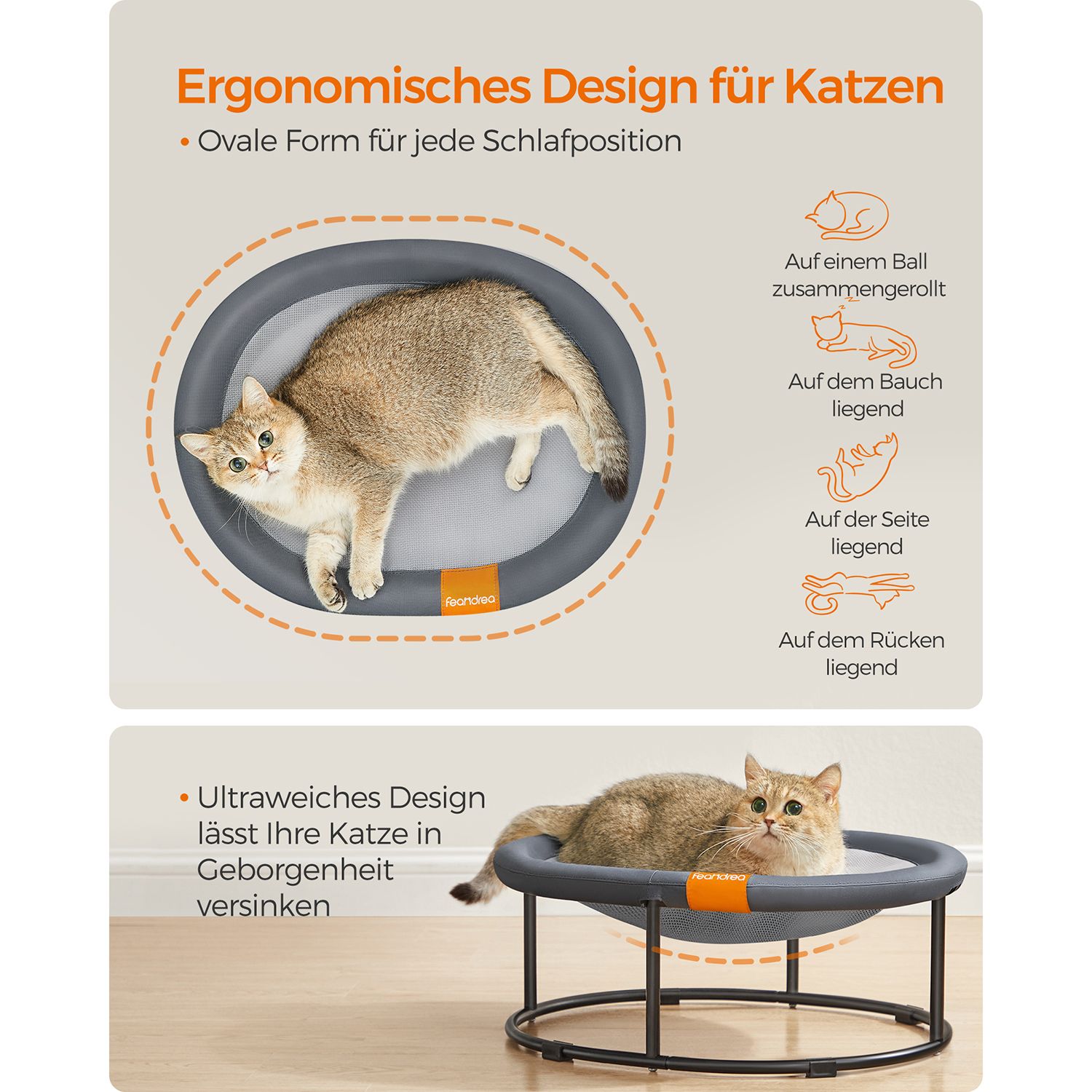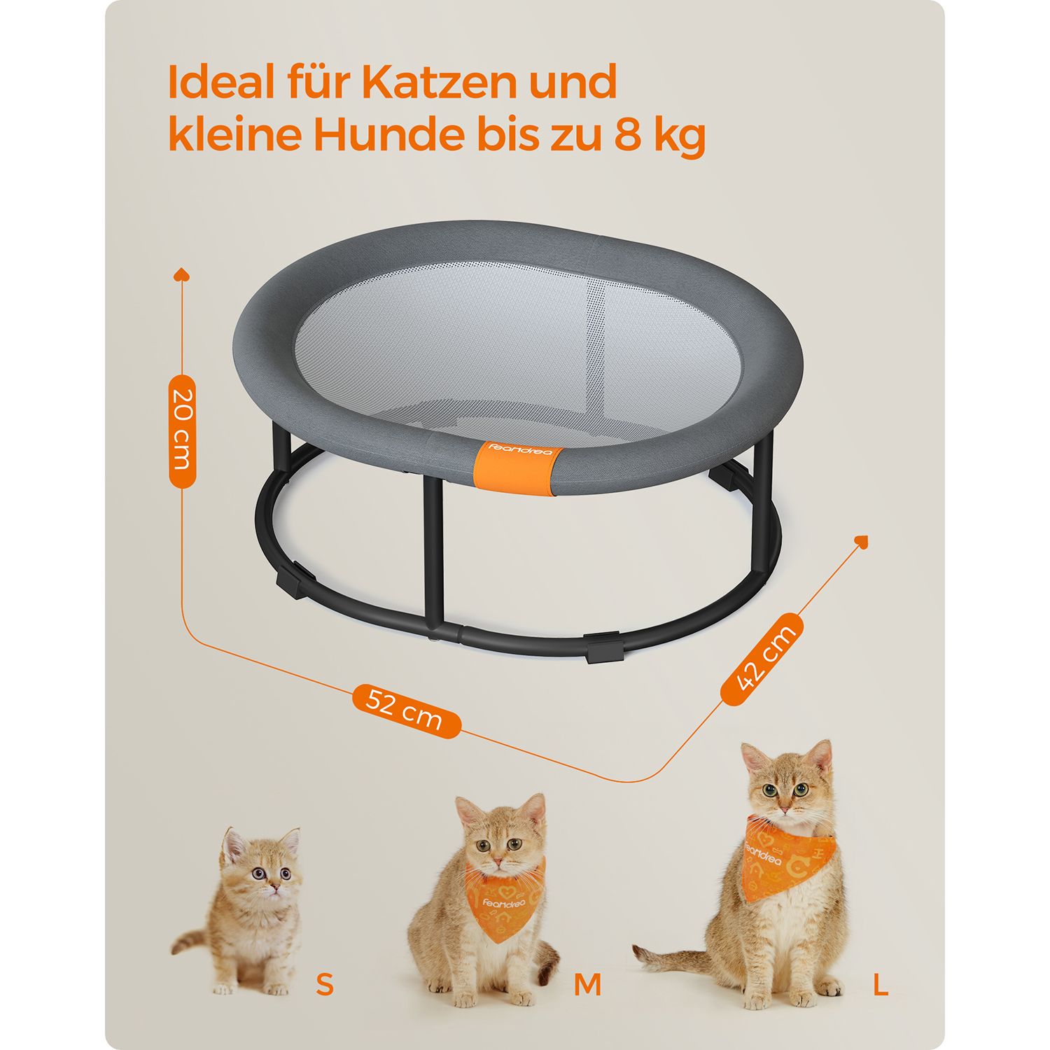 FEANDREA hängmatta för katter, upphöjd kattbädd, liten hundbädd, för husdjur upp till 8 kg, fristående husdjursbädd för sommaren, avtagbart nät, maskintvättbar, oval, grå PCB001G01