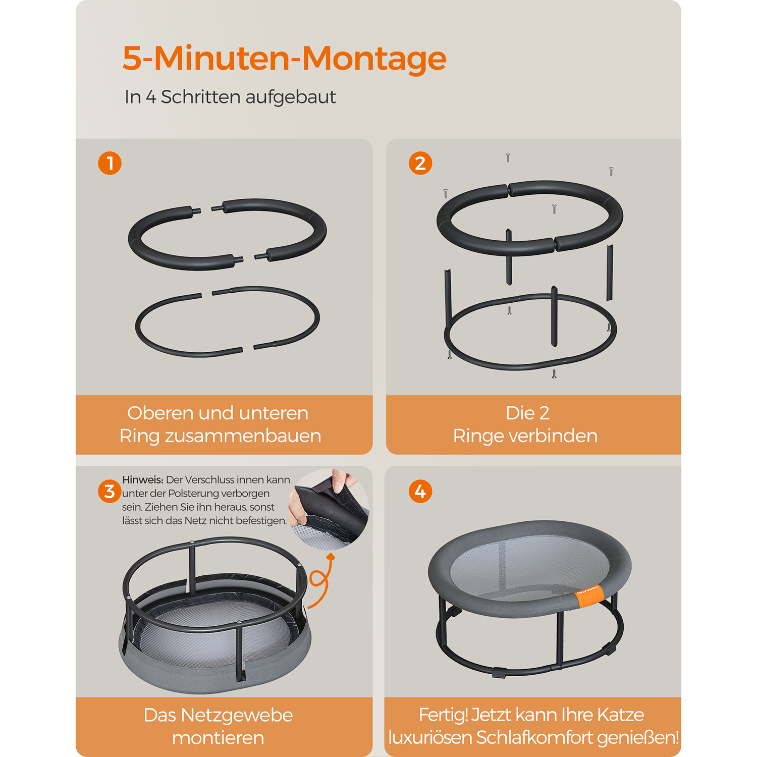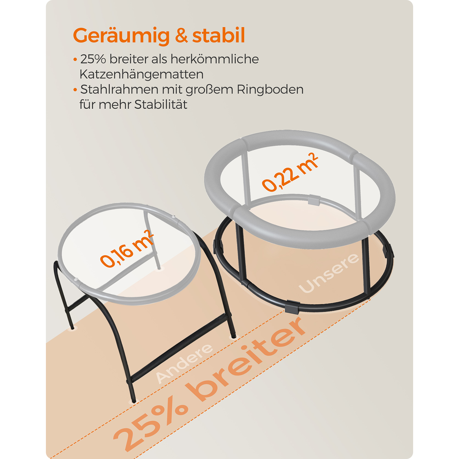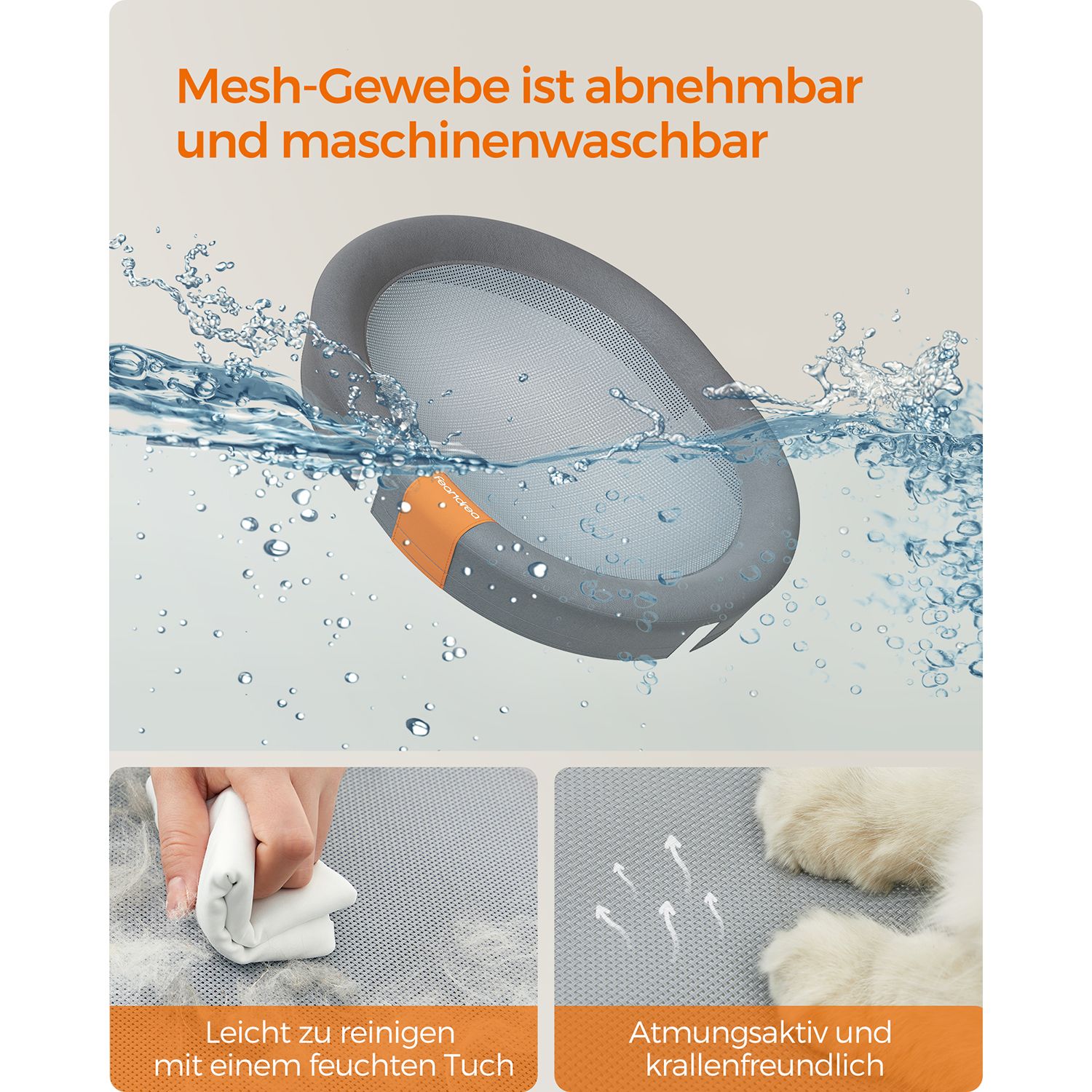 FEANDREA hängmatta för katter, upphöjd kattbädd, liten hundbädd, för husdjur upp till 8 kg, fristående husdjursbädd för sommaren, avtagbart nät, maskintvättbar, oval, grå PCB001G01