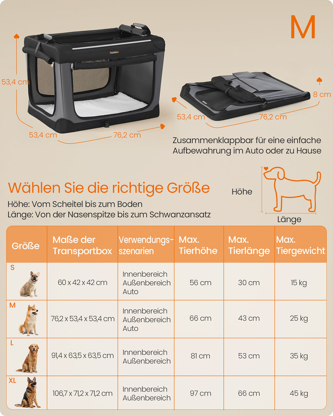 Feandrea hopfällbar hundbur, 60 cm transportbur för små hundar, hundväska, Oxford-tyg, med 4 dörrar av nätmaterial, handtag, fickor för mat och vattenflaska, bläck svart PDC016B01
