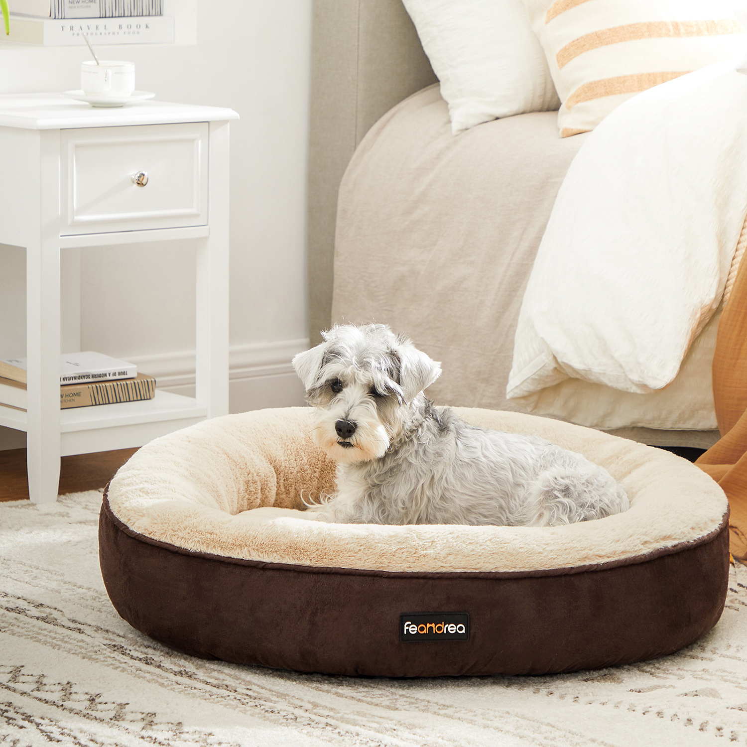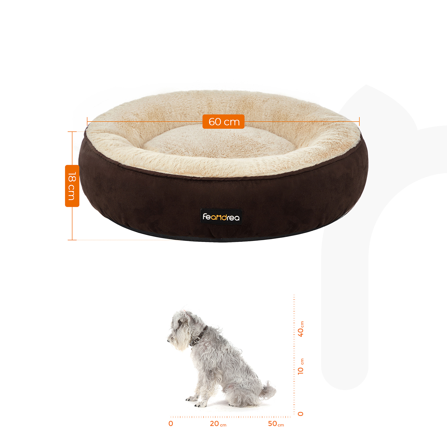 En bekväm plats att rulla ihop sig på: Ligger din hund alltid på din matta för att torka av skorna eller i badrummet? Ge den istället denna bekväma ring som ingen kommer att trampa på. Den är tillräckligt lätt för att kunna flyttas från ett rum till ett annat. Bredvid ditt skrivbord eller bredvid din säng – din hund behöver inte längre rulla ihop sig på golvet, oavsett var du är!God sömn, gott liv: Tillbringar ditt husdjur större delen av sitt liv med att sova? Det gör inget, men då bör det ha en bekväm säng så att det kan få bästa möjliga sömn. Oavsett om det gillar att sova på magen, ryggen eller sidan – din älskling kommer att ha söta drömmar när det rullar ihop sig på sin nya donut. Denna hundbädd hjälper det att slappna av i musklerna. Produktdetaljer: Färg: Brun Material: Imitation av mocka, plysch Storlek: 60 x 18 cm (Ø x H) Vikt: 1,5 kg Leveransomfattning: 1 x hundbädd FEANDREA Anmärkningar: Kontrollera före köpet att produktens storlek passar ditt husdjur.Produkter med sömmar kan avvika 2-3 cm från de mått vi anger. Denna produkt levereras i en vakuumförpackning. Skaka den efter uppackningen så att den når sin fulla storlek. Använd inte denna produkt i närheten av värmekällor över 40 °C. Om du har golvvärme, använd en extra underlägg.