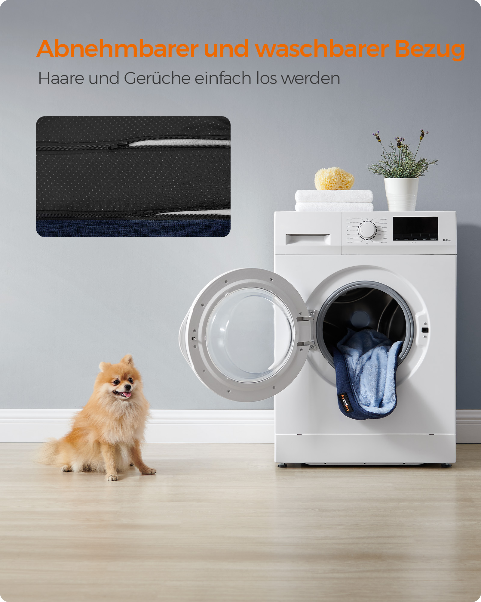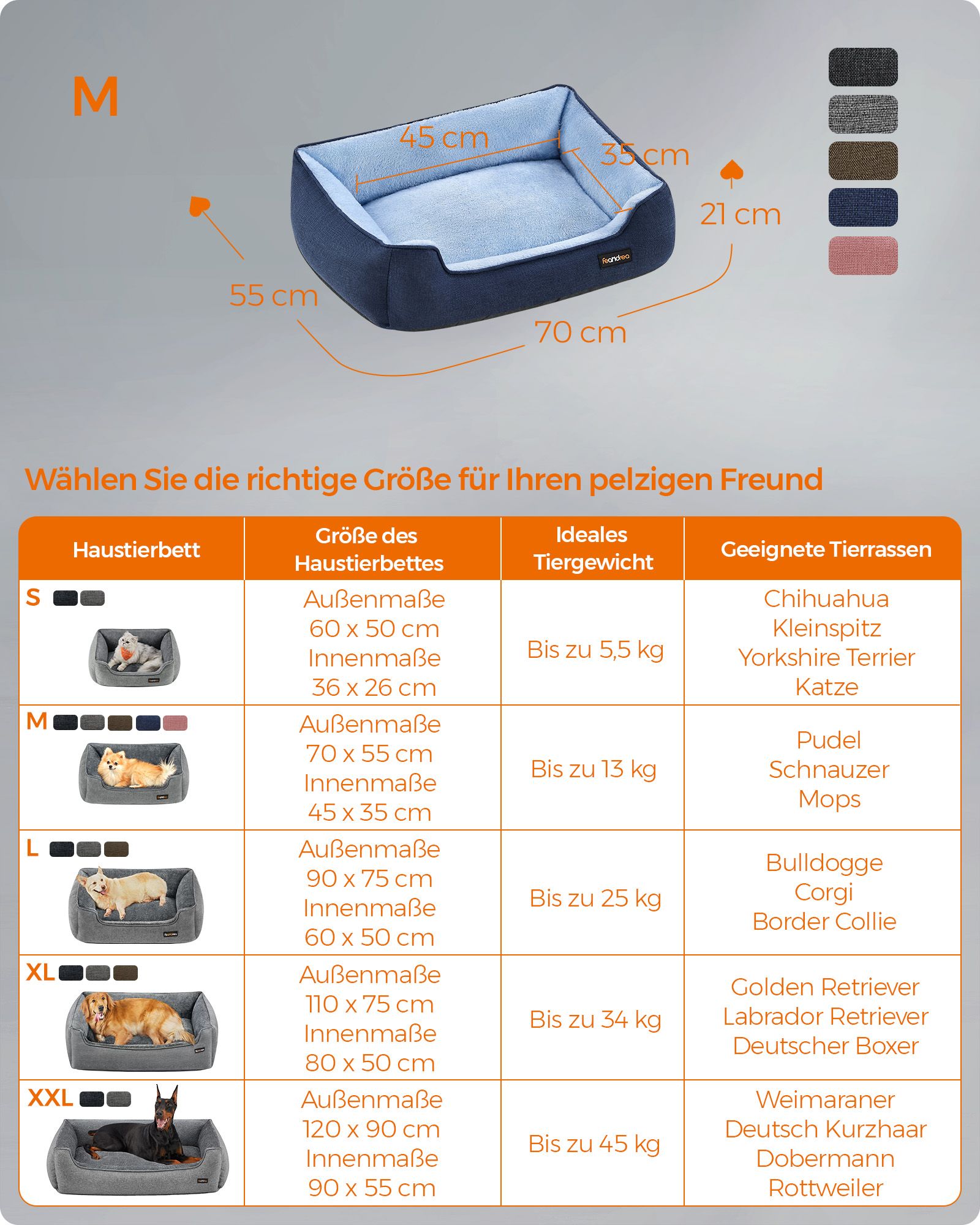 Feandrea hundbädd, avtagbart överdrag, 70 x 55 x 21 cm, mörkgrå PGW010G01