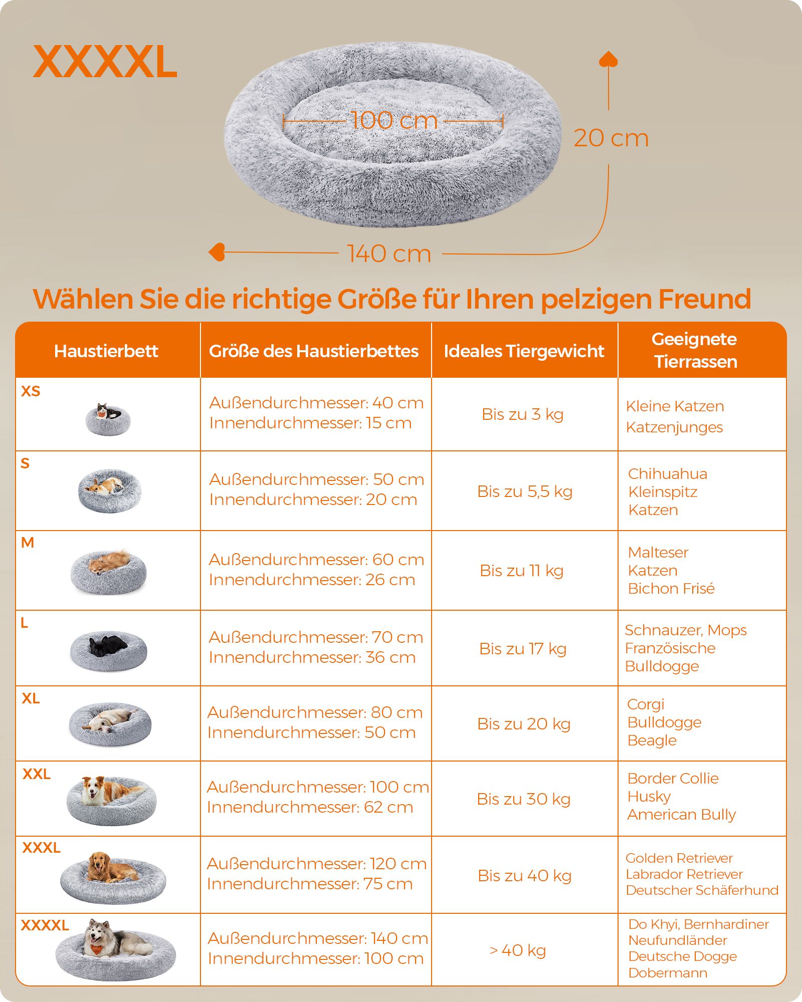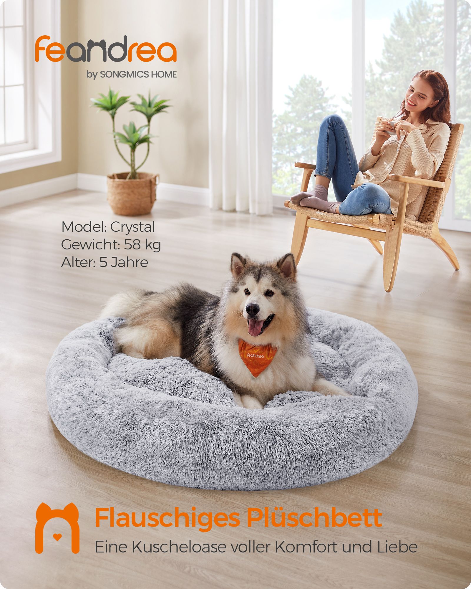 Feandrea hundbädd, kattbädd, mjuk PV-samytta, 50 cm, grå PGW037G01