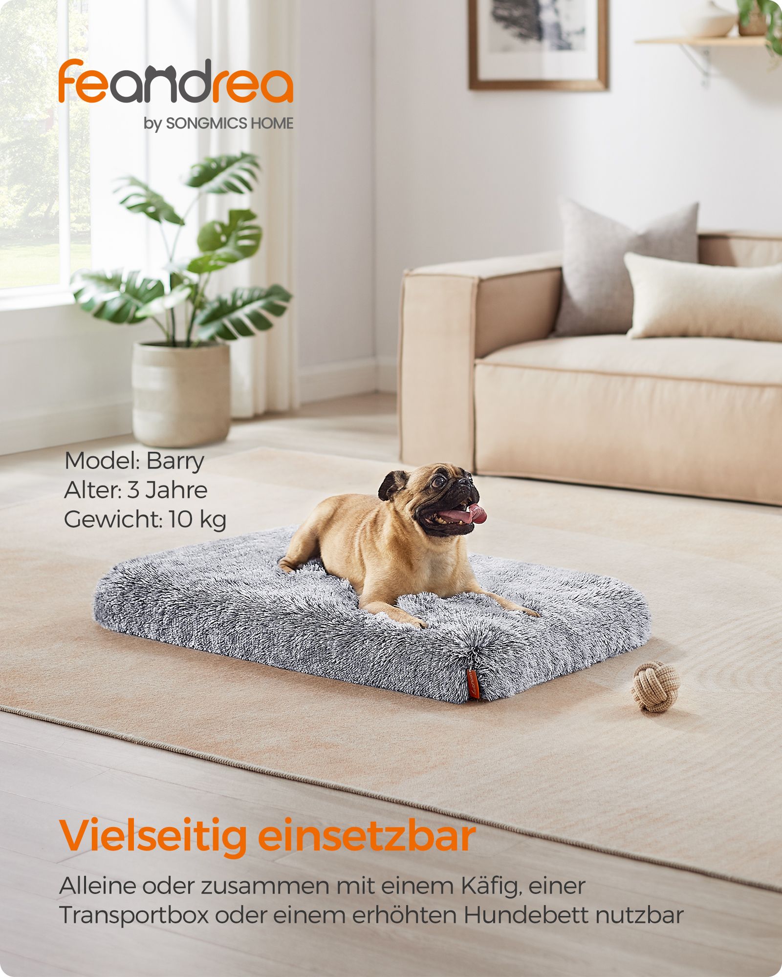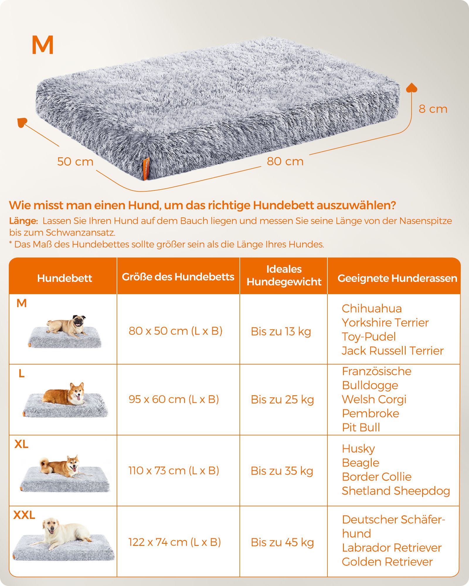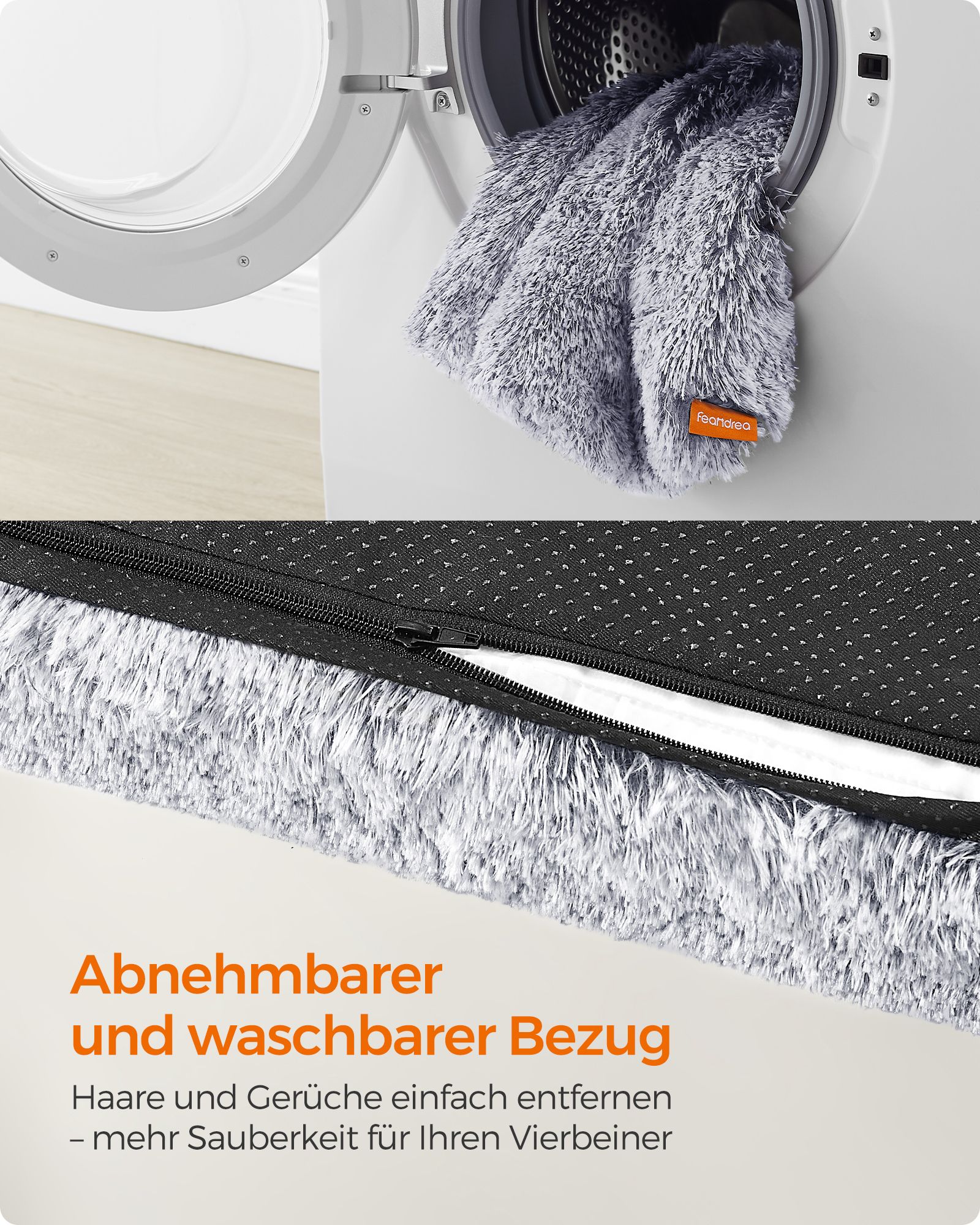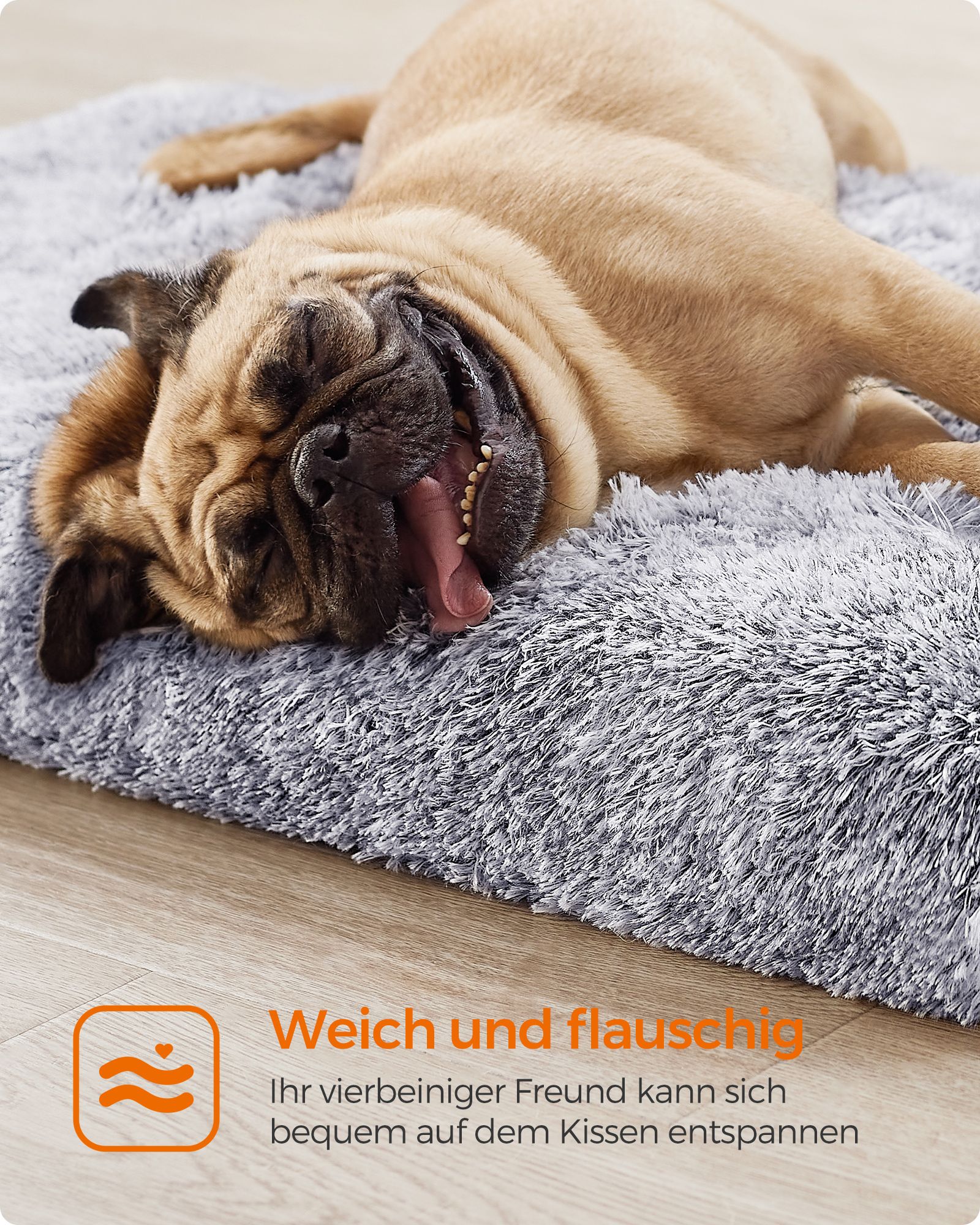 Feandrea hundbädd, hundkudde i plysch, hundmatta, hundsoffa, för husdjur, avtagbart och tvättbart överdrag, storlek XL, för medelstora och stora hundar, 110 x 73 x 10 cm, ombrégrå PGW213G01