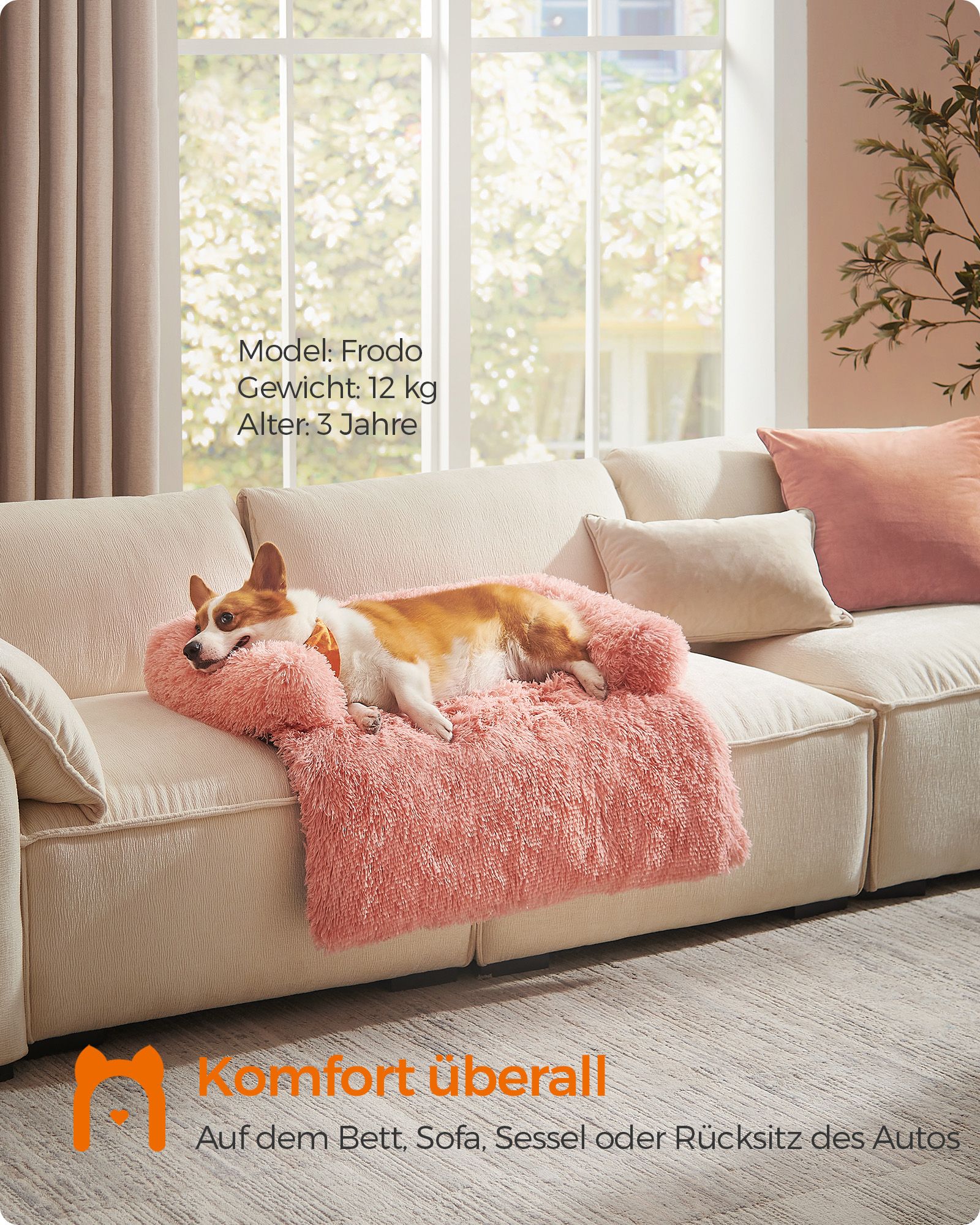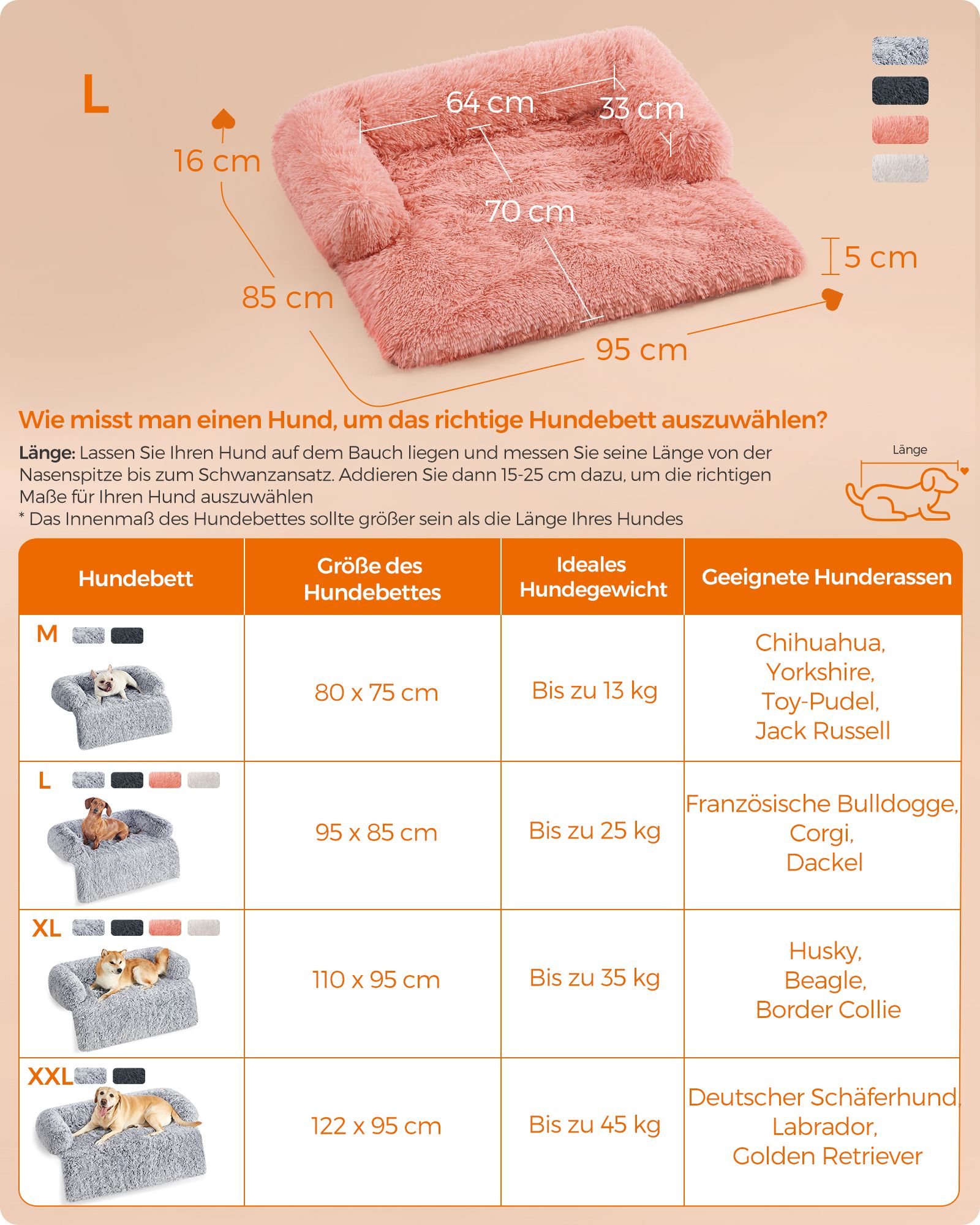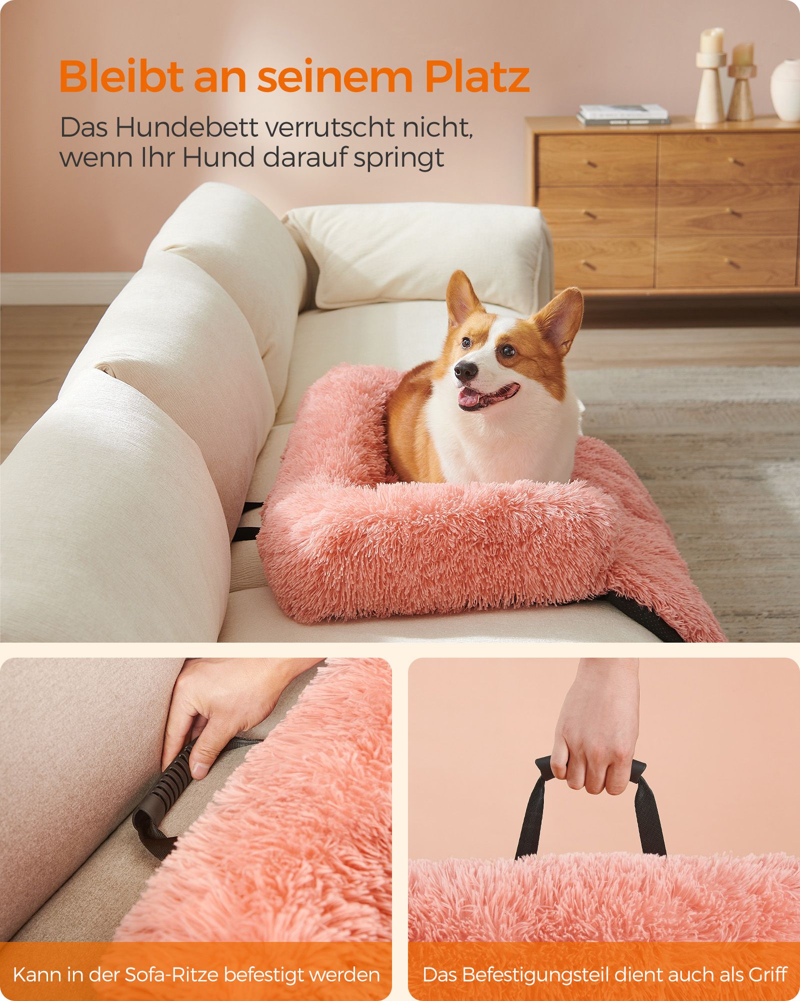 Feandrea FluffyHug hundbädd i plysch, hundfiltsoffa, soffskydd för hundar, hundkudde, storlek XL, för medelstora och stora hundar, 110 x 95 x 18 cm, ombrégrå PGW223G01