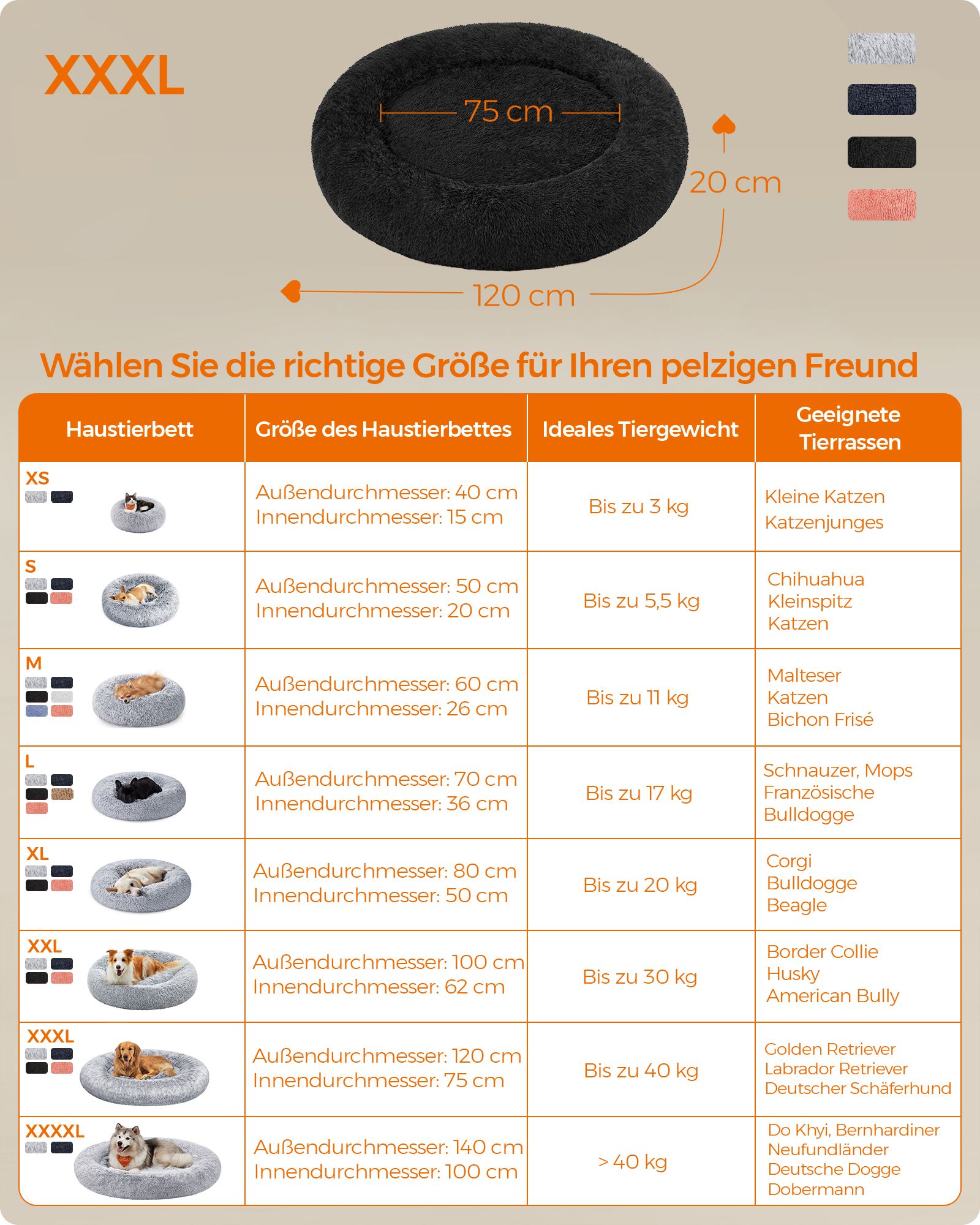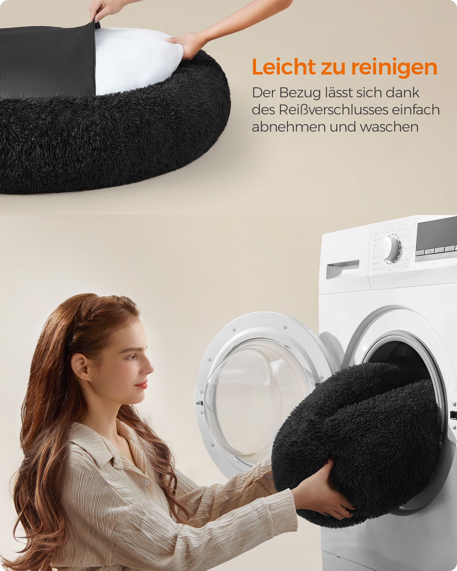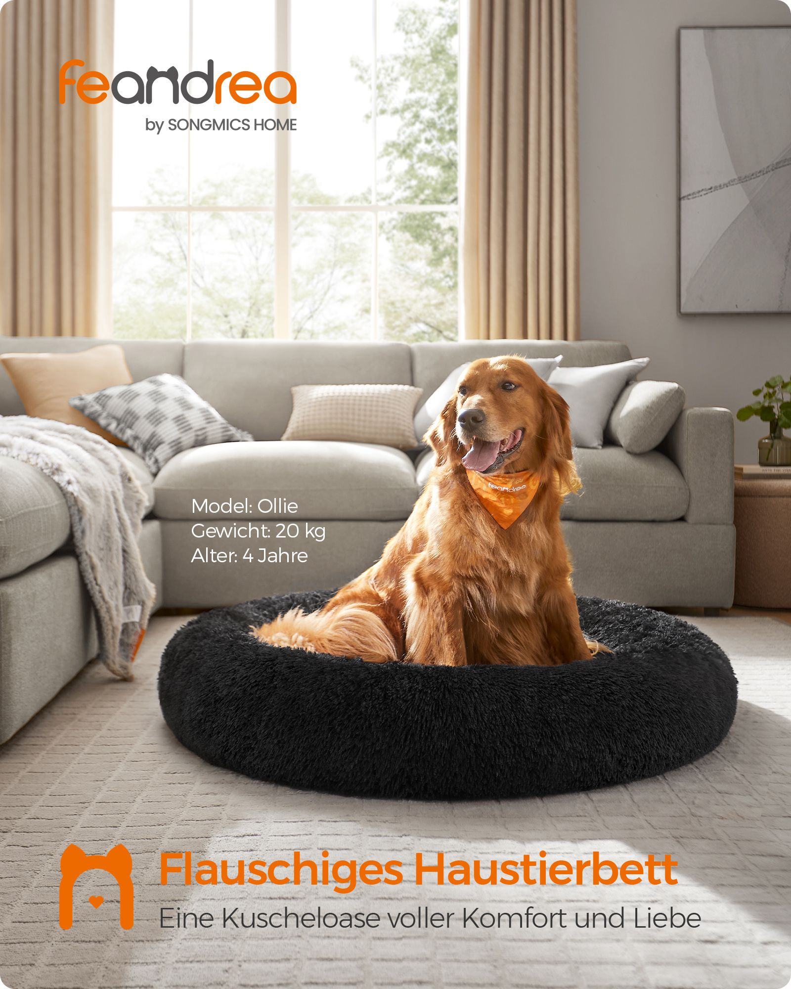 Feandrea hundbädd, kattbädd, mjuk PV-samytta, 50 cm, grå PGW037G01