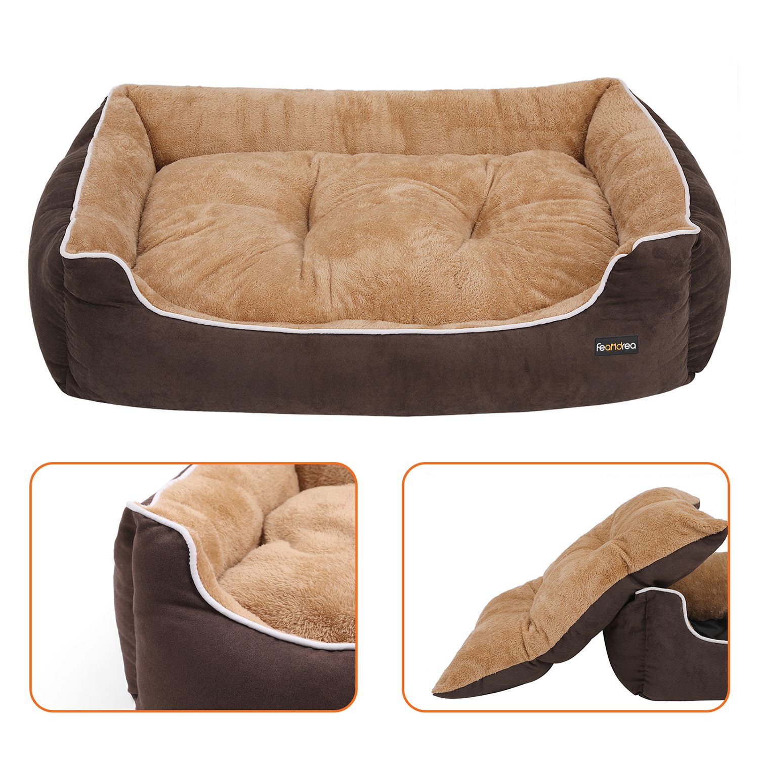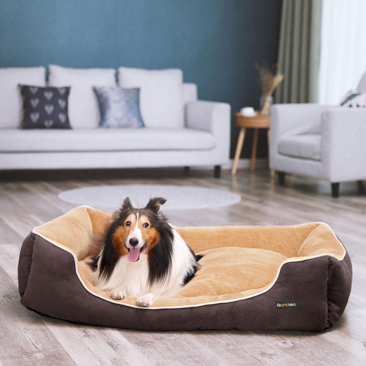 Feandrea Mysigt XXL lyxigt hundbädd med mjukt avtagbart kudde, för stora hundar, 110 x 27 x 75 cm, brun, beige PGW07YC