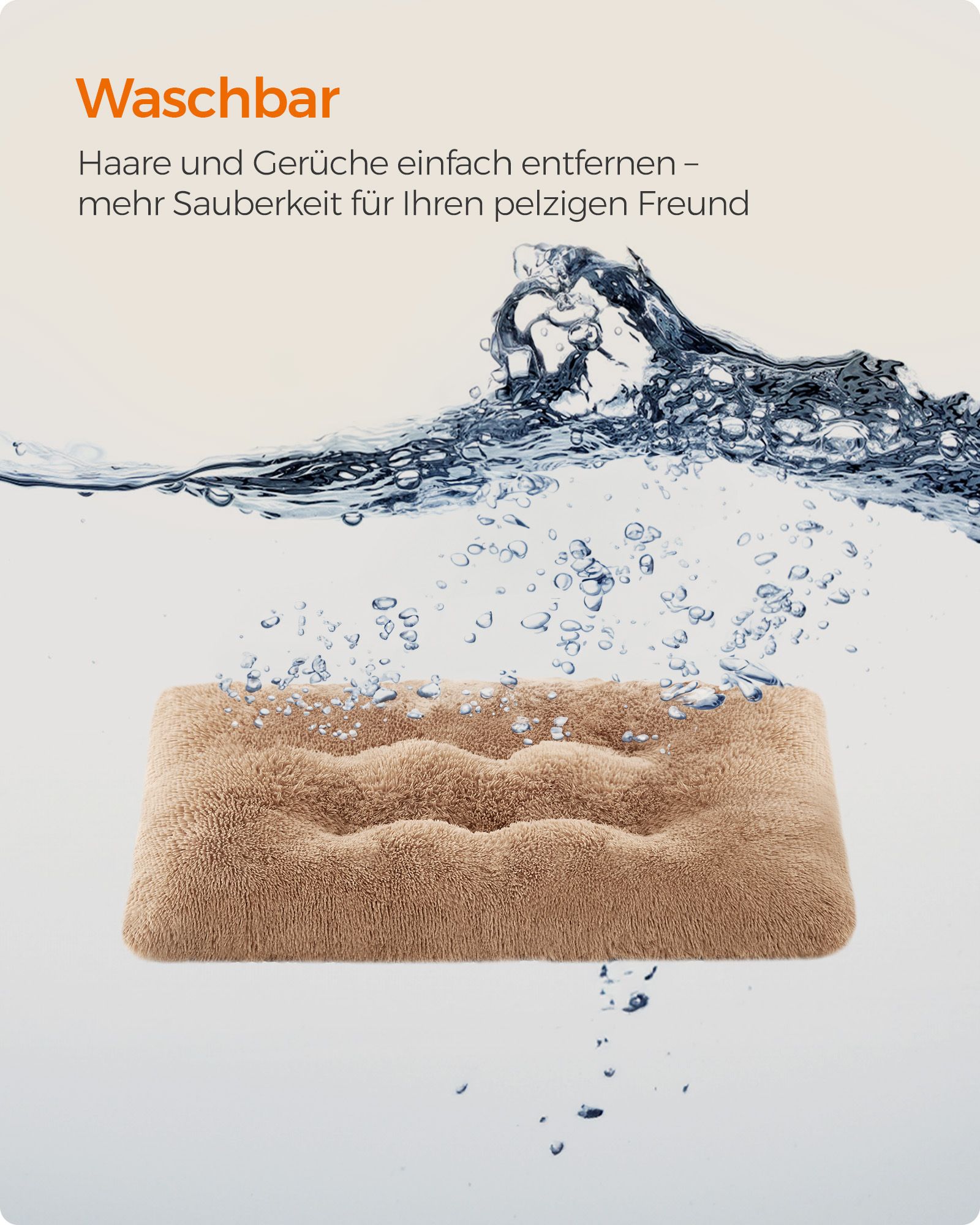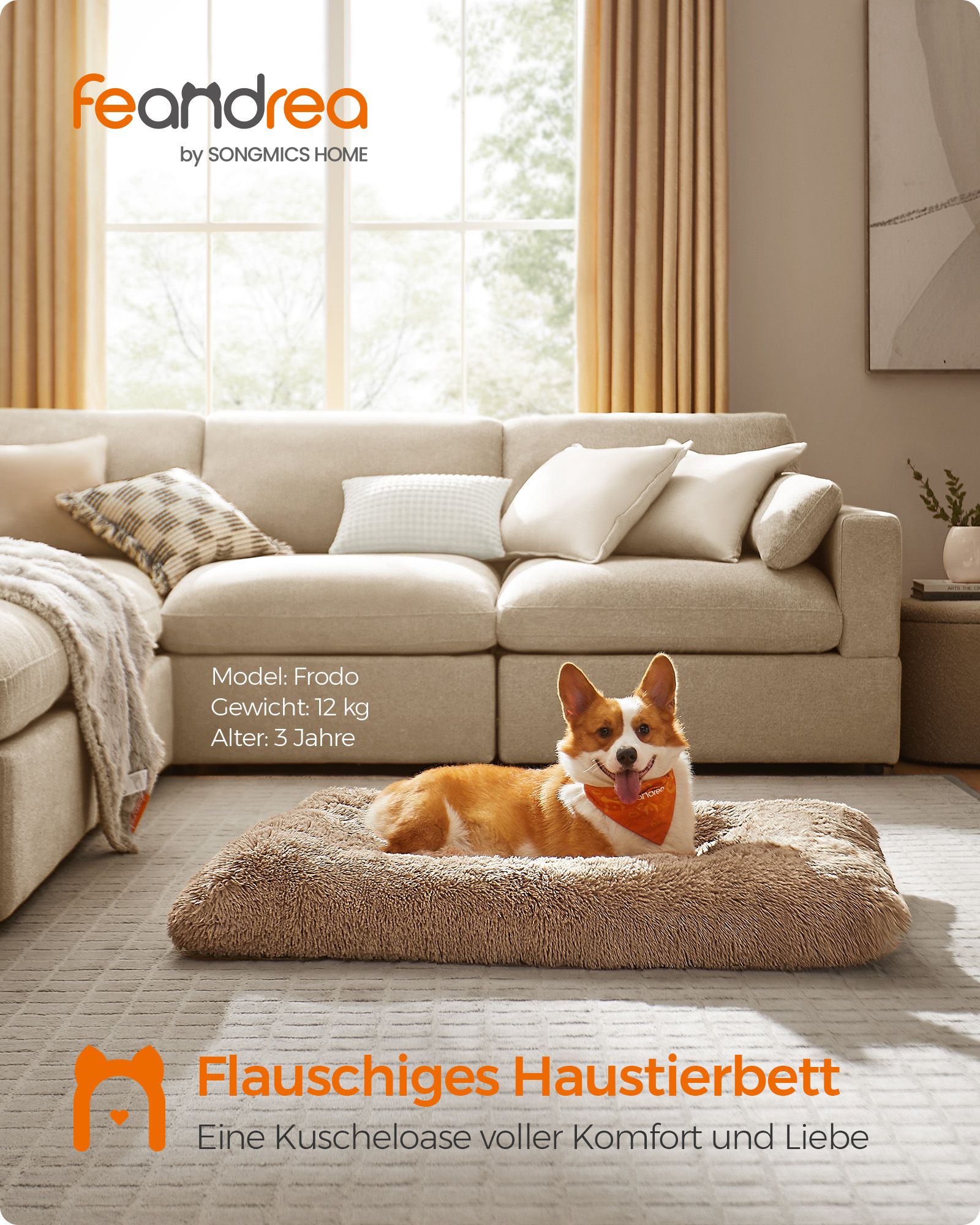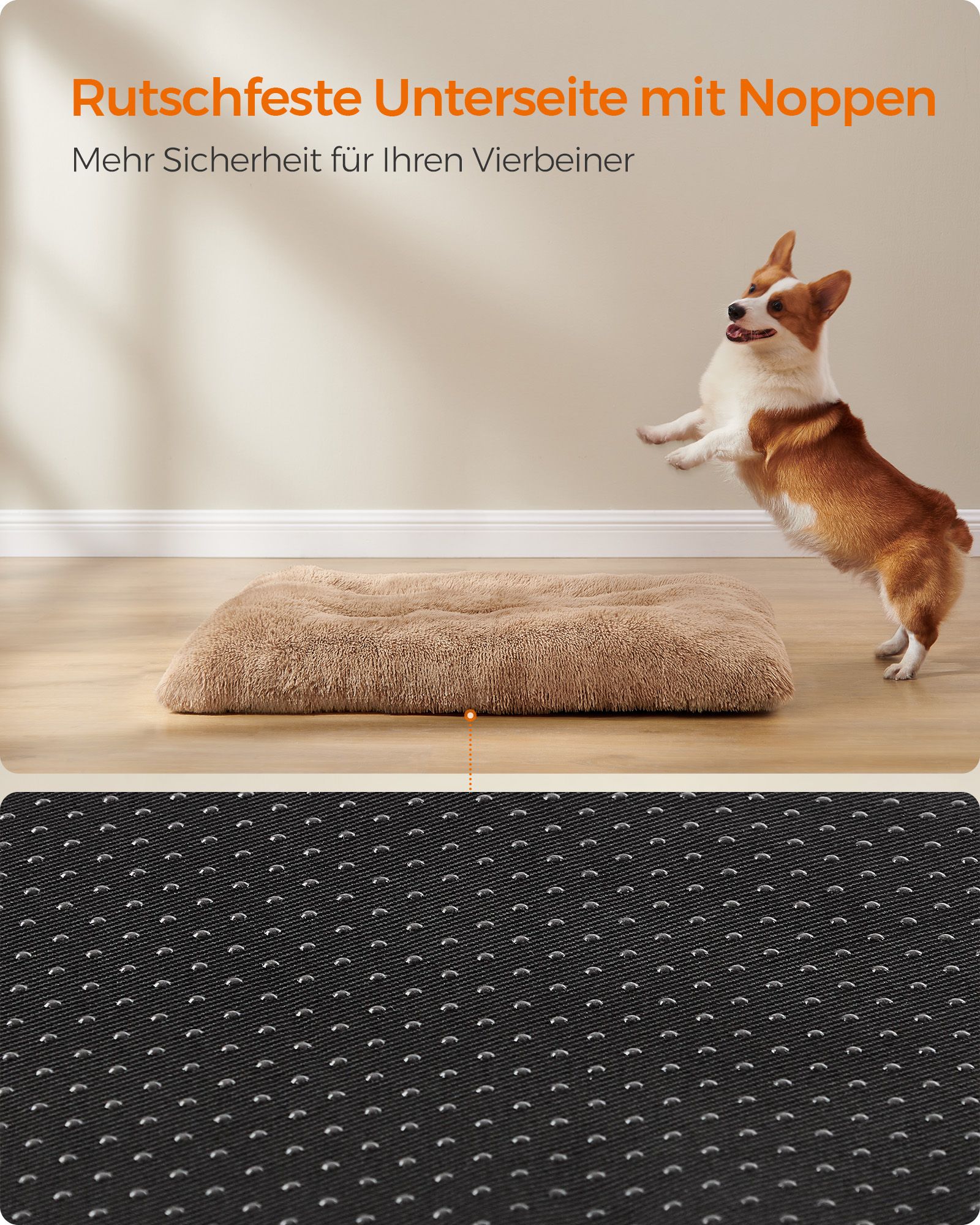 Feandrea hundbädd, hundkudde, fluffig hundmatta, lång plysch, 80 x 50 cm, mjuk stoppning, maskintvättbar, hundkorg, multifunktionell, bärbar, ljusgrå PGW201G01