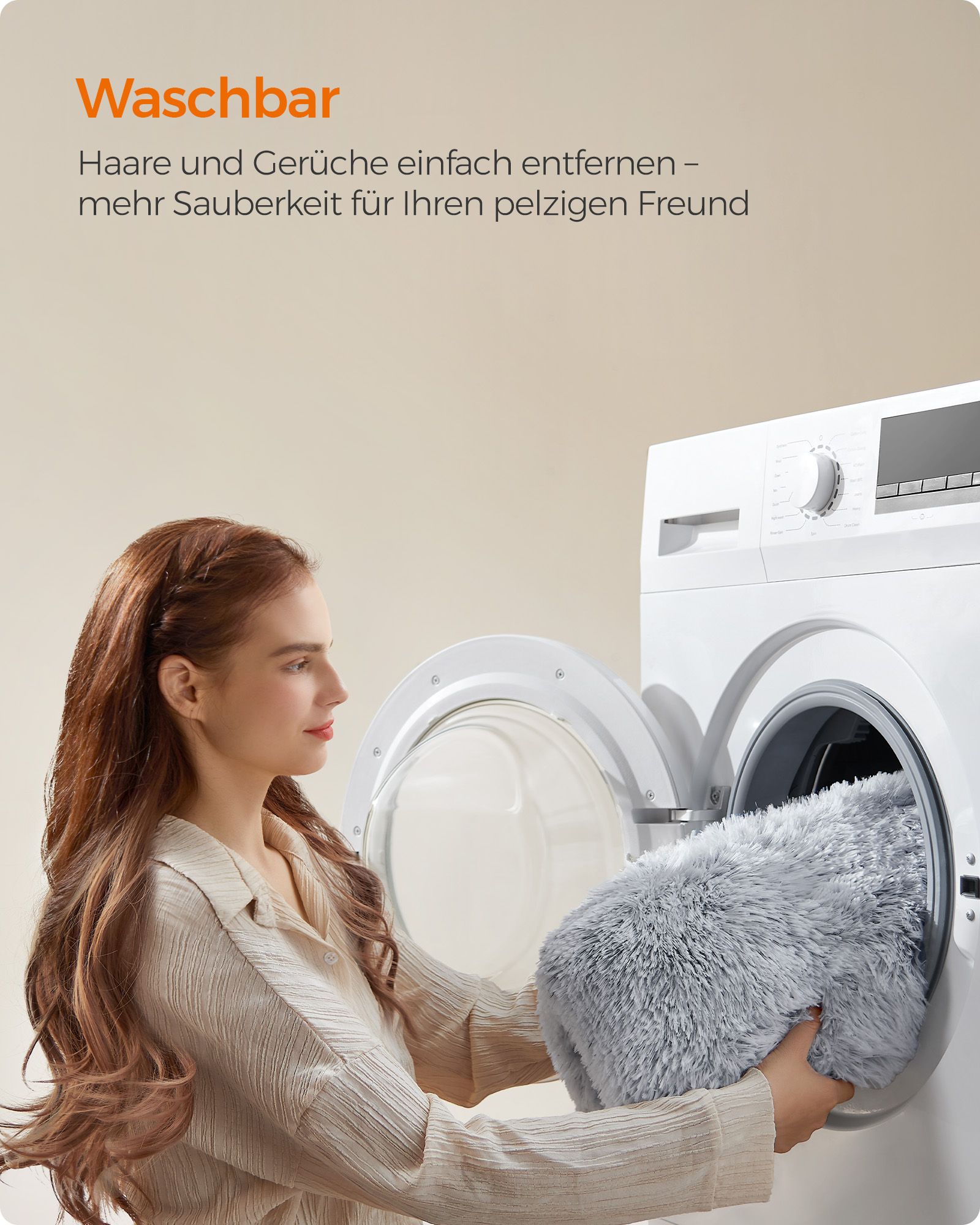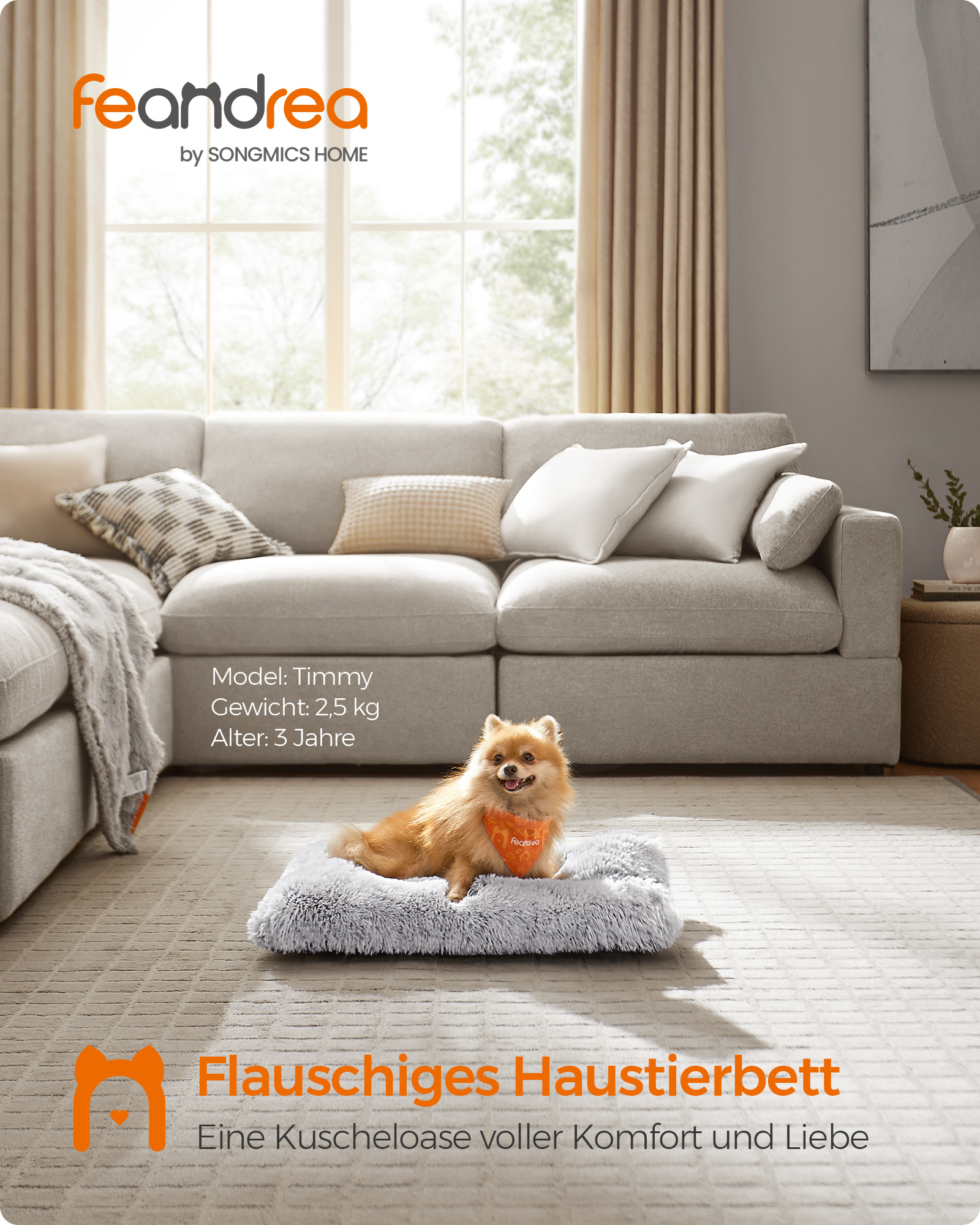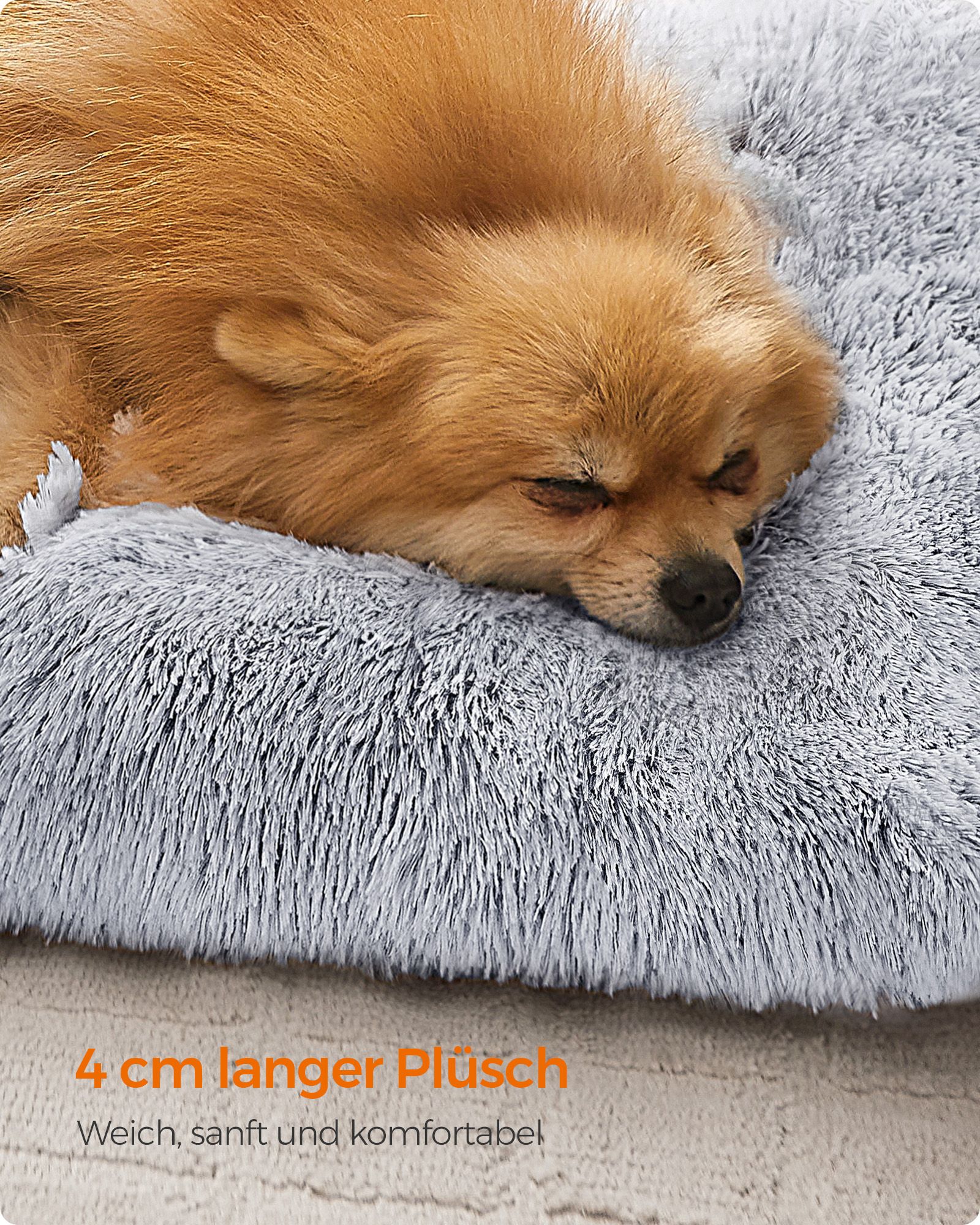 Feandrea hundbädd, hundkudde, fluffig hundmatta, lång plysch, 80 x 50 cm, mjuk stoppning, maskintvättbar, hundkorg, multifunktionell, bärbar, ljusgrå PGW201G01
