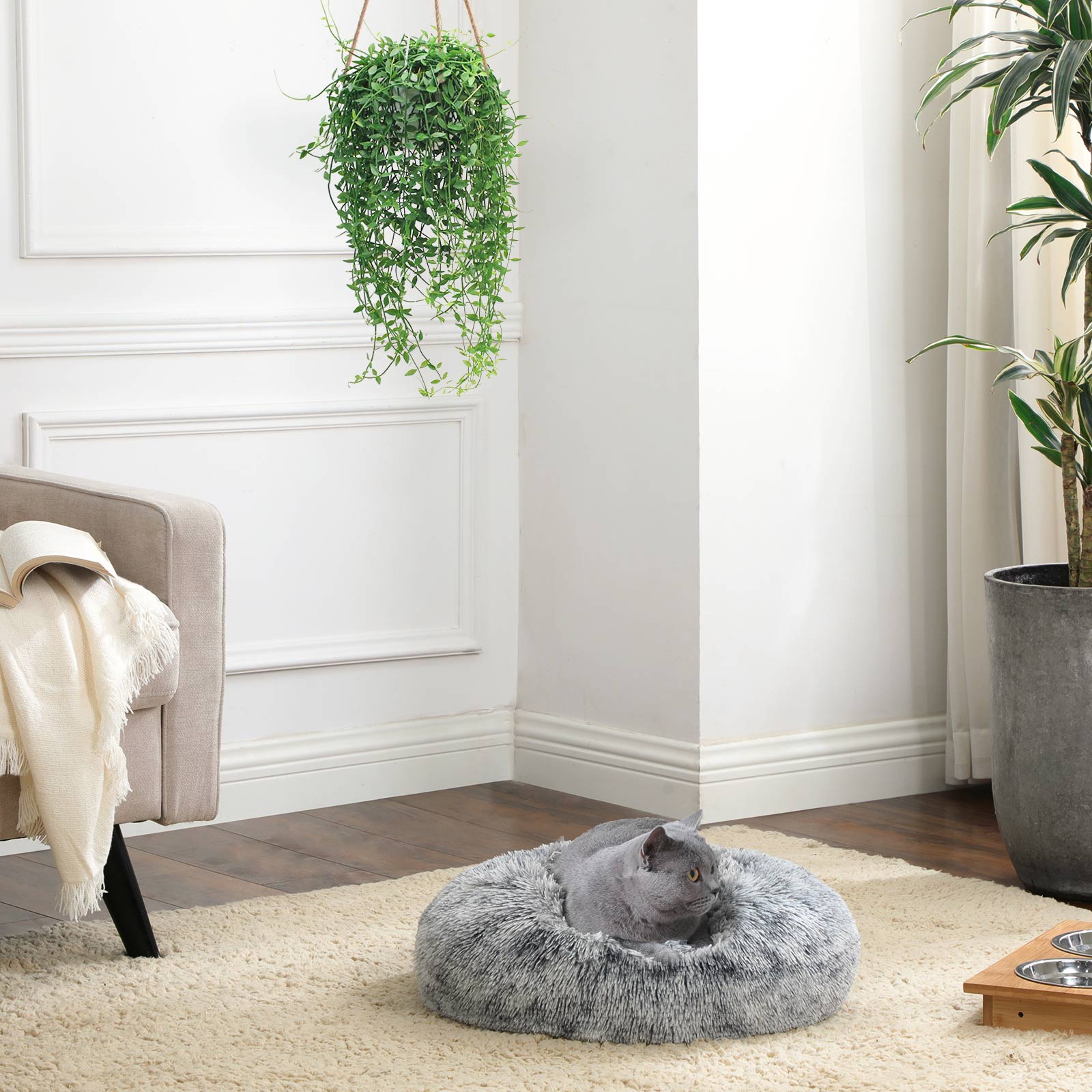 Alltid vid din sida Var sover dina fyrbenta vänner helst, i vardagsrummet eller i sovrummet? Eller vill de bara koppla av bredvid dig? Lägg denna hundkudde, fylld med nya, oanvända minnesskumflisor, bredvid ditt skrivbord så att din älskling kan ligga bekvämt bredvid dig medan du arbetar. Kvalitet eller stil? Denna söta, donutformade hundbädd kompromissar inte med kvaliteten. Högkvalitativ plysch, nya, oanvända minnesskumflingor, PP-stoppning, halkfri undersida, bekväm och hållbar – denna hundsoffa har många fördelar. Den har också en dragkedja på undersidan så att du enkelt kan ta ut stoppningen i mitten av kudden och rengöra resten. Denna säng är lämplig för små hundar eller katter och är en utmärkt present till dina fyrbenta vänner. Produktdetaljer: – Färg: Grå – Material: Plush, PP-stoppning, nya, oanvända minnesskumflingor – Storlek: 50 x 20 cm (Ø x H) – Vikt: 1 kg Leveransomfattning: – 1 x hundbädd FEANDREA Anmärkningar: – Produkter med sömmar kan avvika 2-3 cm från de mått vi anger. Kontrollera också före köpet om produktens storlek är lämplig för ditt husdjur. – Denna produkt levereras i en vakuumförpackning. Skaka den efter uppackningen så att den når sin fulla storlek. – Vi rekommenderar att du tvättar denna produkt för hand eller använder en dammsugare och en fuktig trasa för rengöring. Skaka produkten efter rengöring så att den återgår till sitt ursprungliga skick.