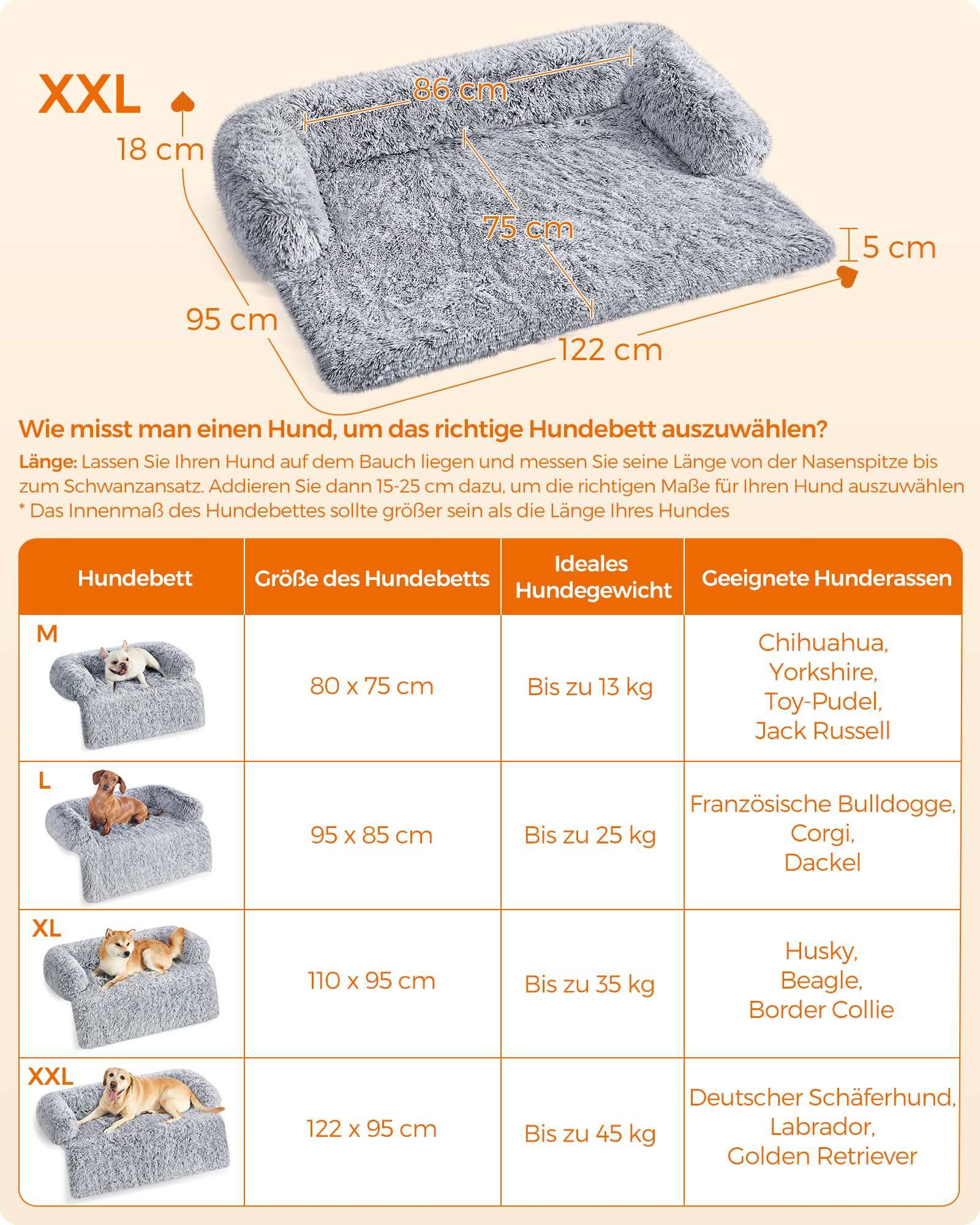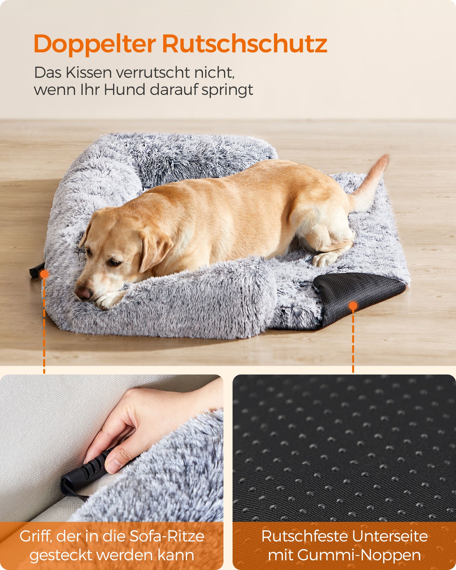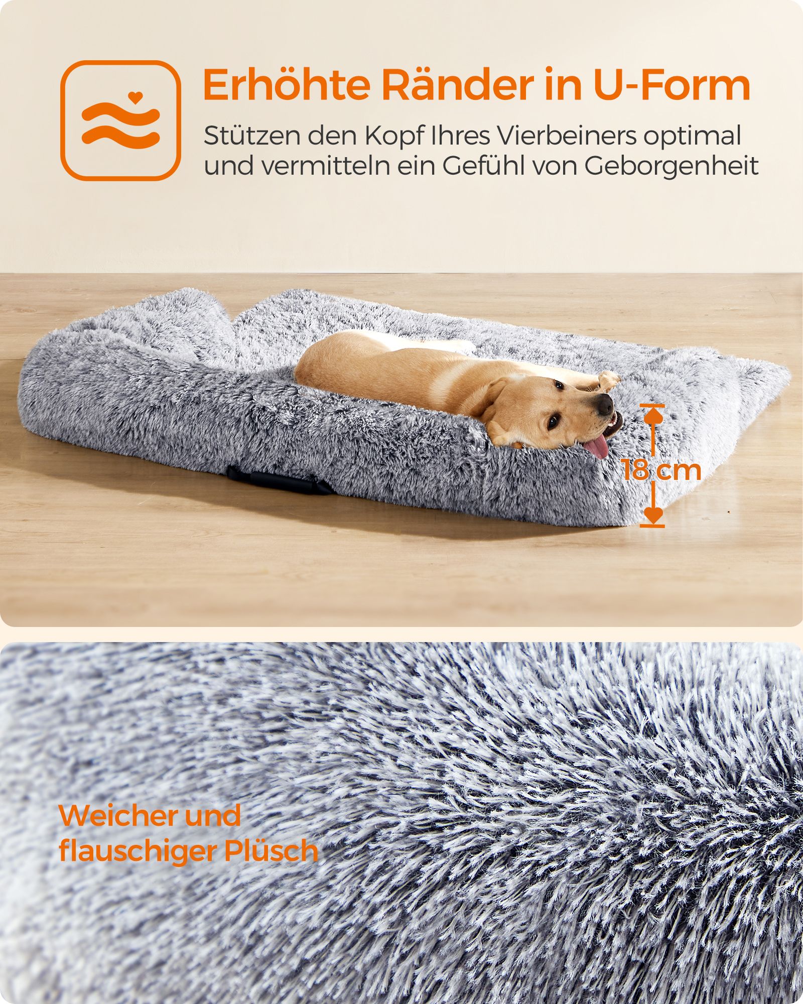 Feandrea FluffyHug hundbädd i plysch, hundfiltsoffa, soffskydd för hundar, hundkudde, storlek XL, för medelstora och stora hundar, 110 x 95 x 18 cm, ombrégrå PGW223G01