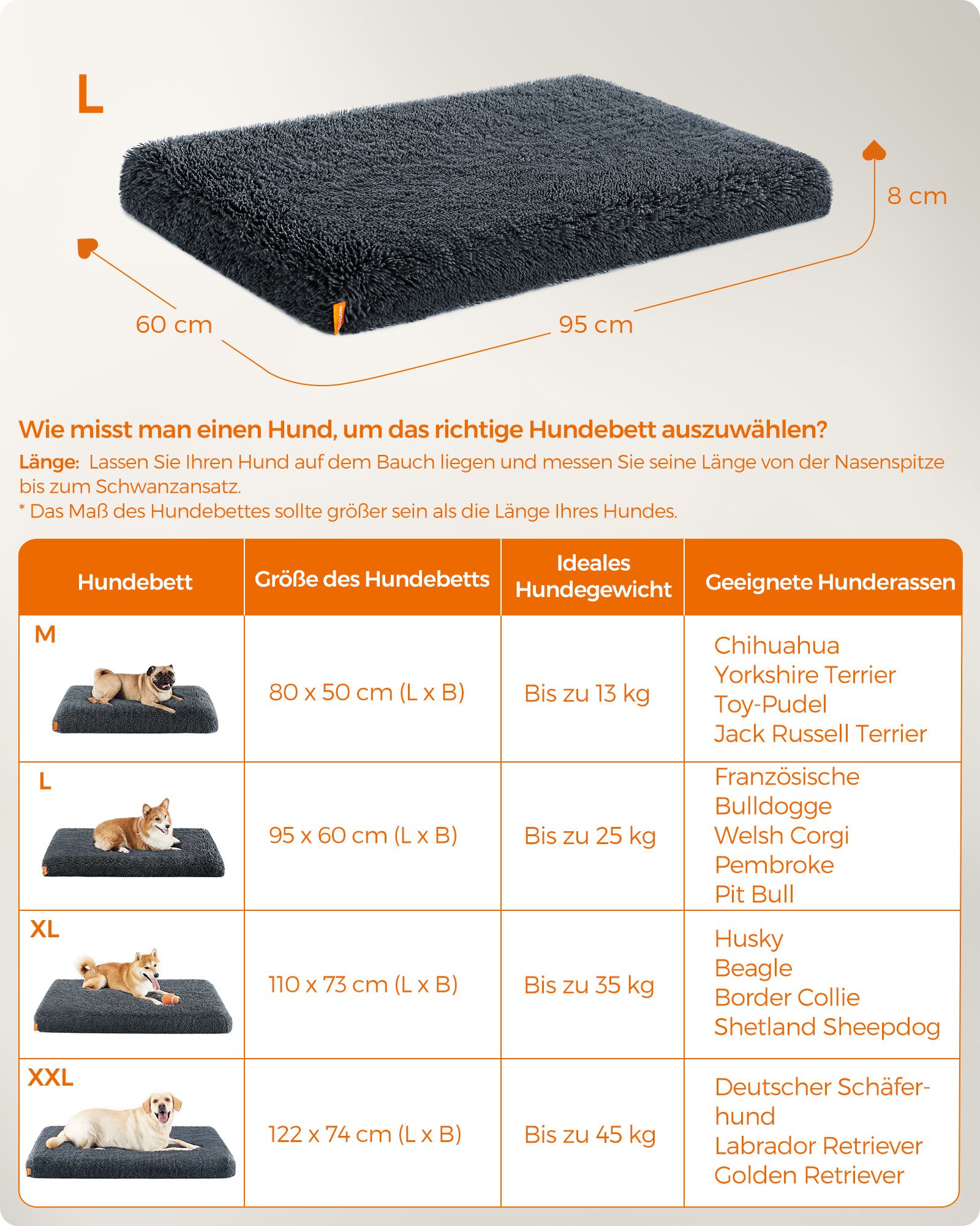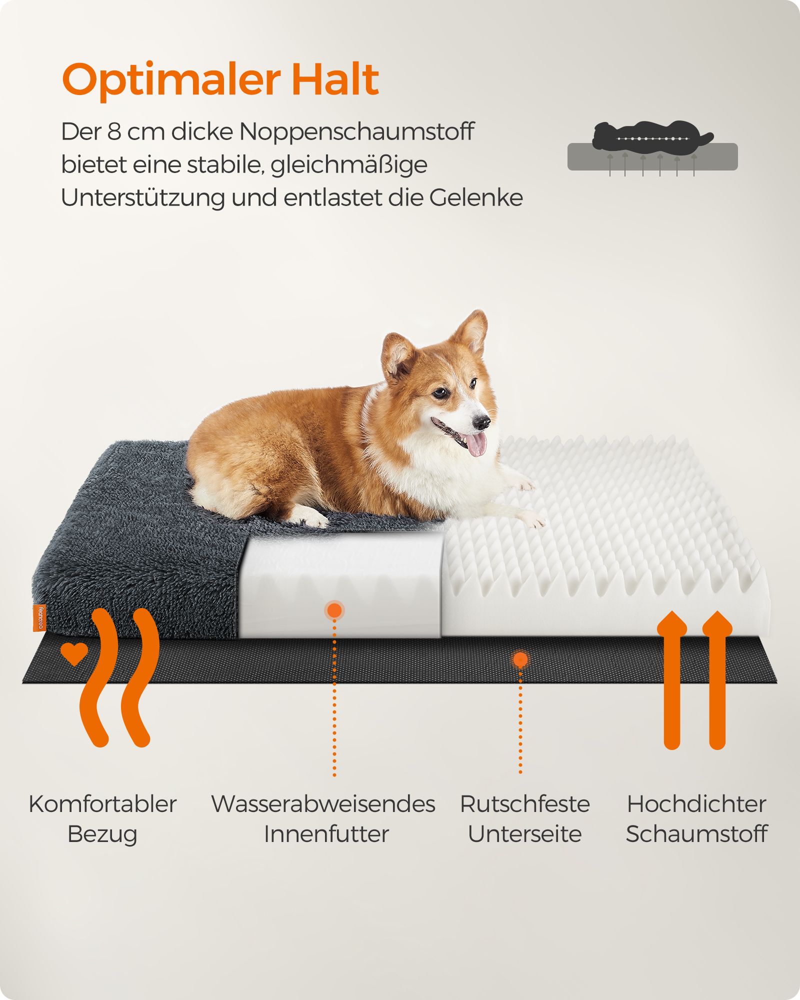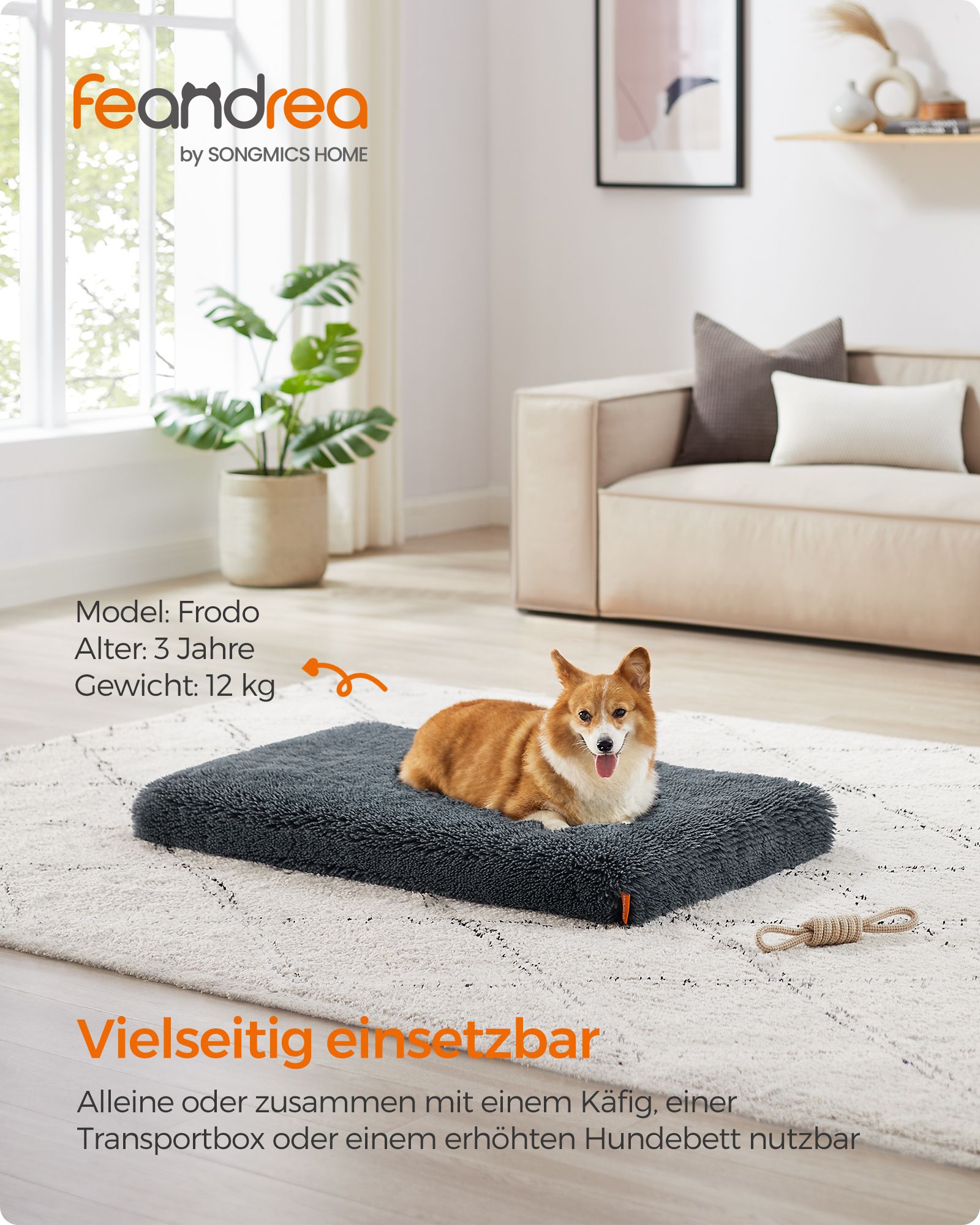 Feandrea hundbädd, hundkudde i plysch, hundmatta, hundsoffa, för husdjur, avtagbart och tvättbart överdrag, storlek XL, för medelstora och stora hundar, 110 x 73 x 10 cm, ombrégrå PGW213G01