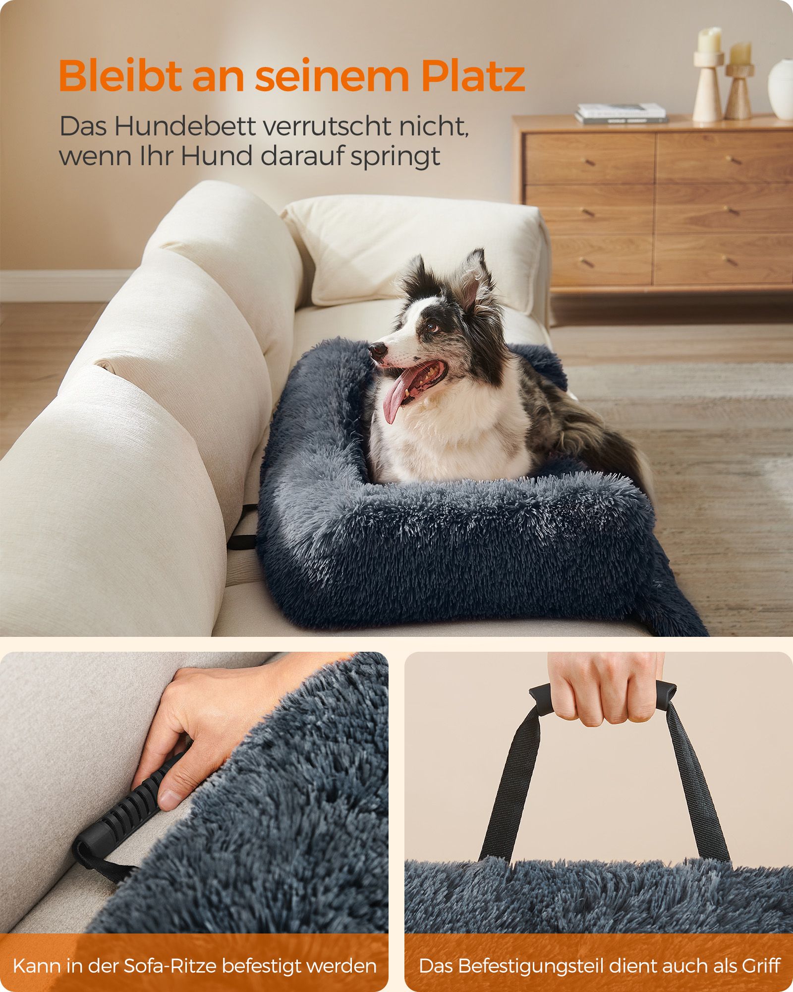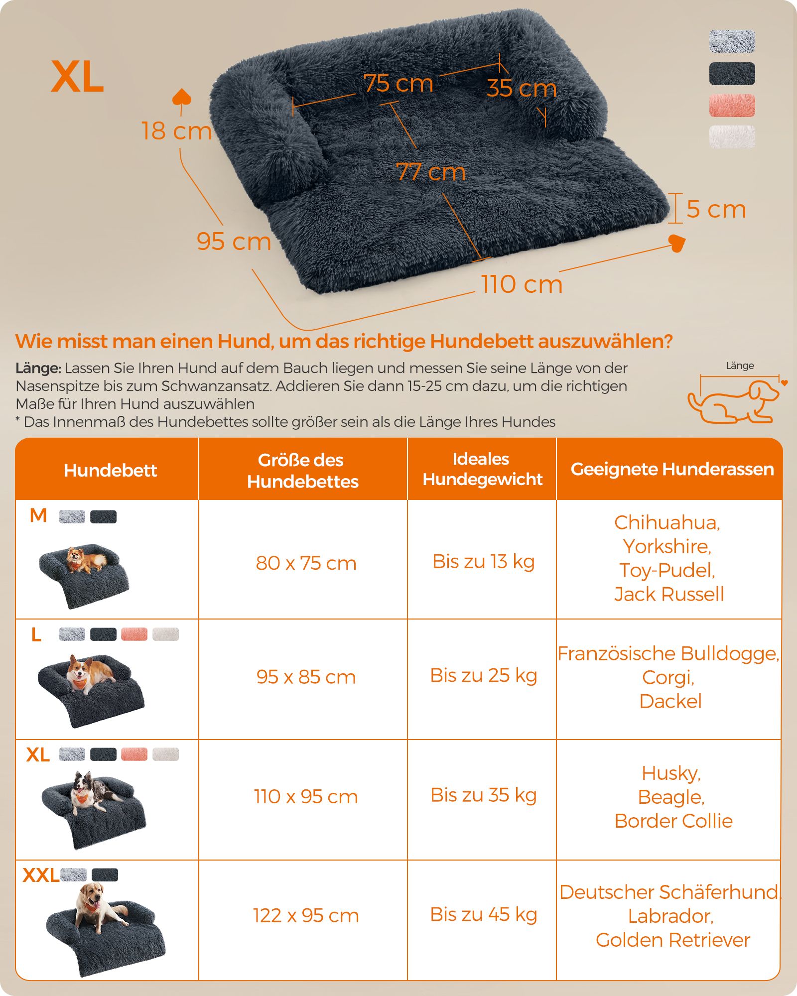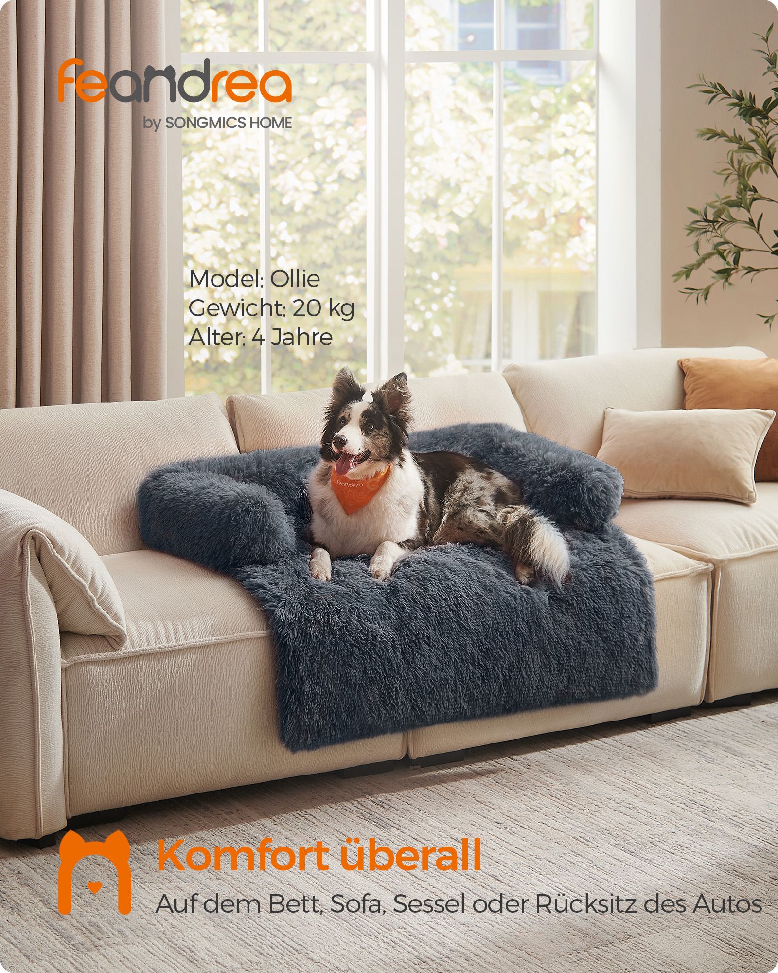 Feandrea FluffyHug hundbädd i plysch, hundfiltsoffa, soffskydd för hundar, hundkudde, storlek XL, för medelstora och stora hundar, 110 x 95 x 18 cm, ombrégrå PGW223G01