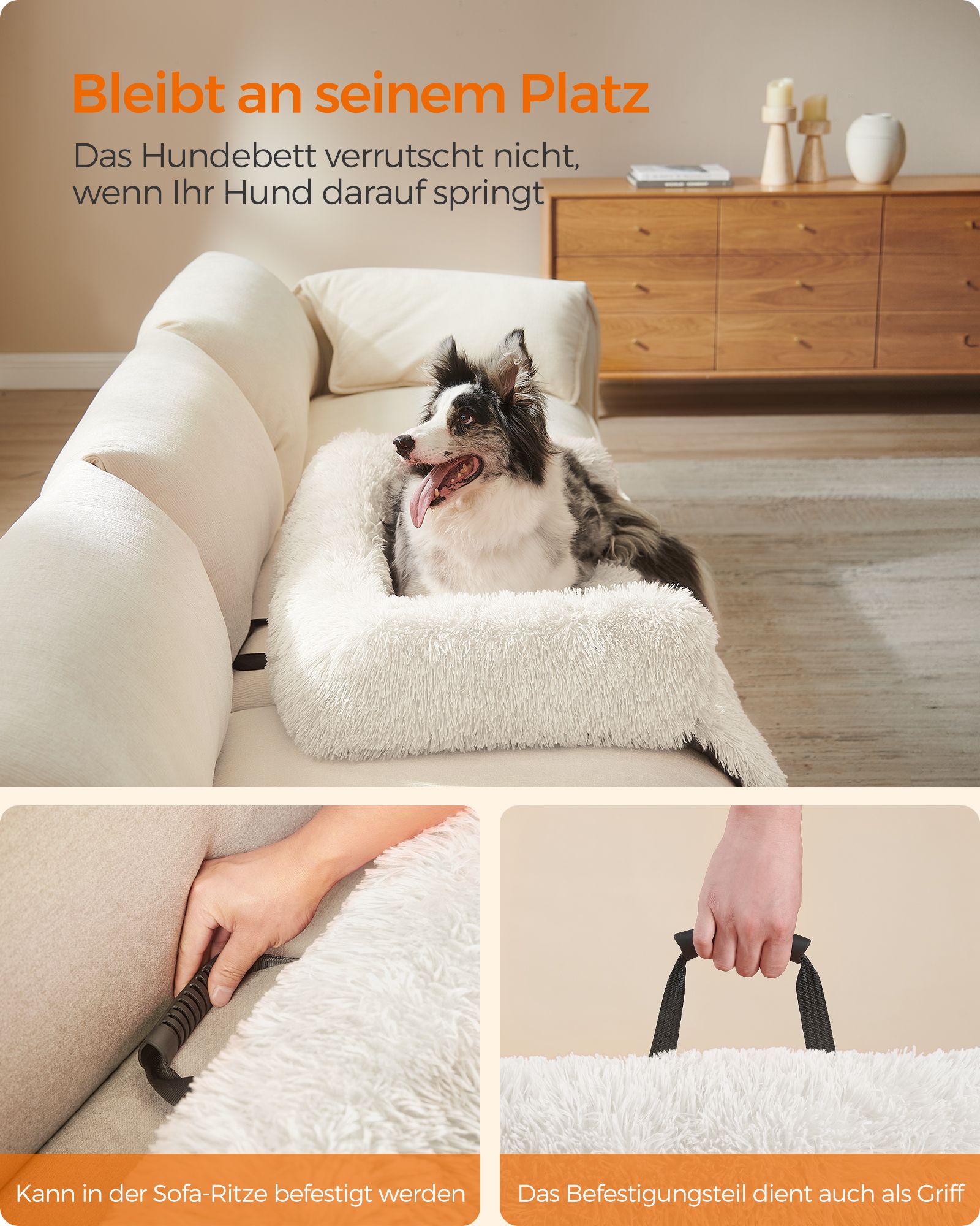 Feandrea FluffyHug hundbädd i plysch, hundfiltsoffa, soffskydd för hundar, hundkudde, storlek XL, för medelstora och stora hundar, 110 x 95 x 18 cm, ombrégrå PGW223G01