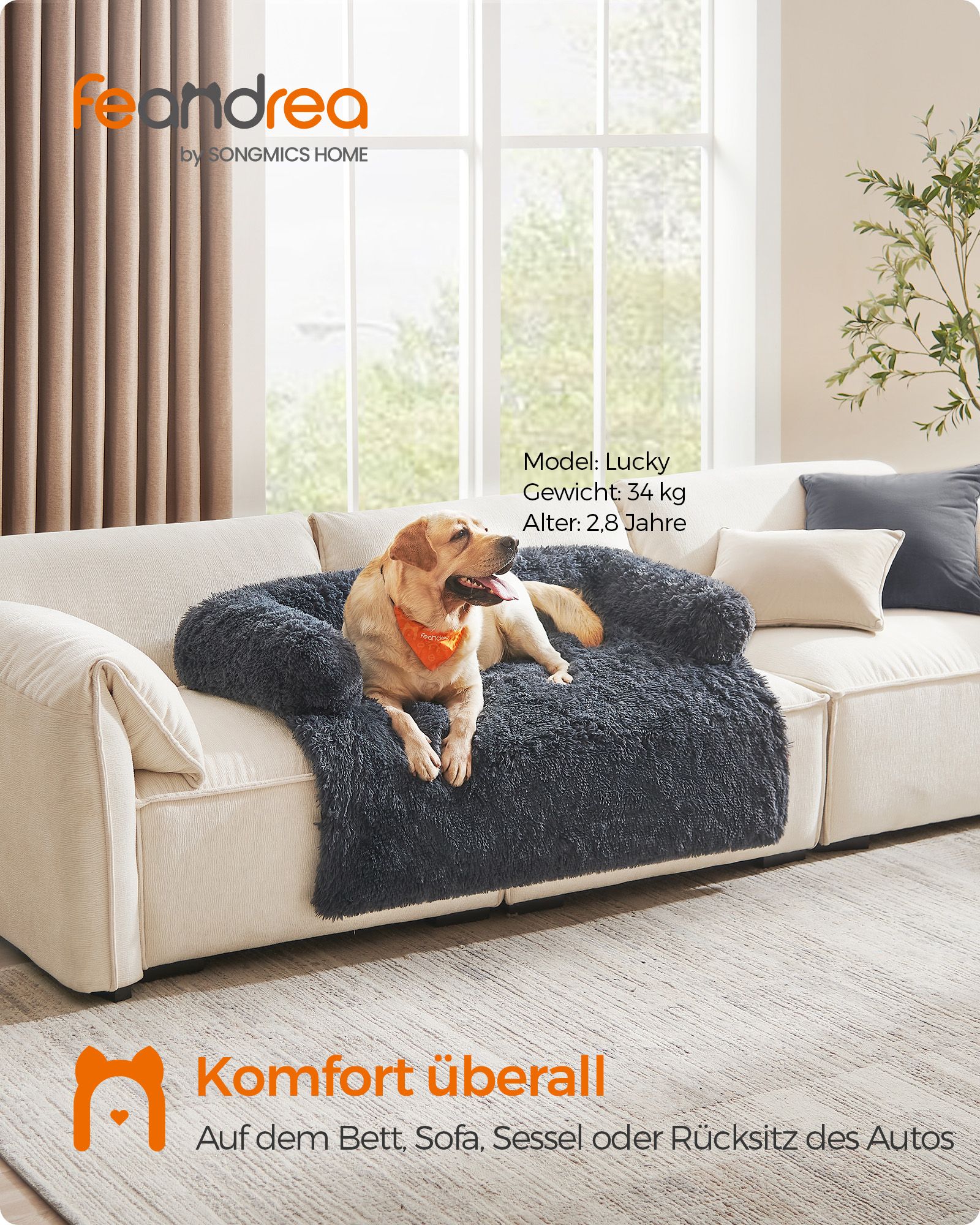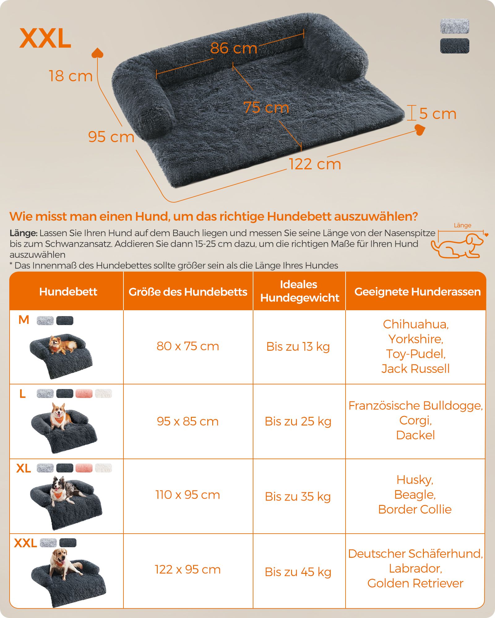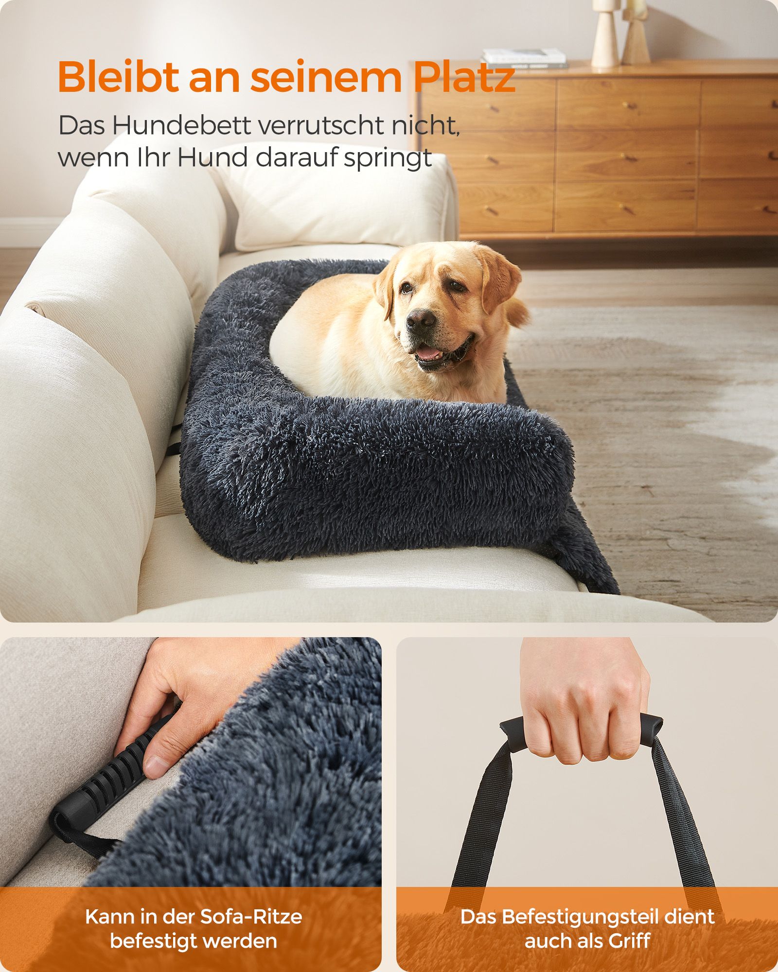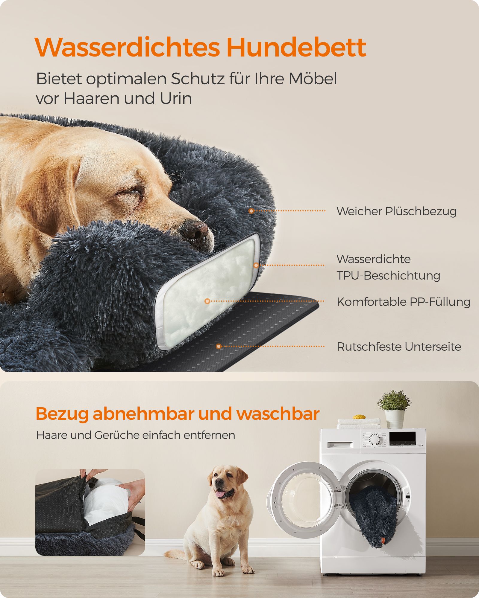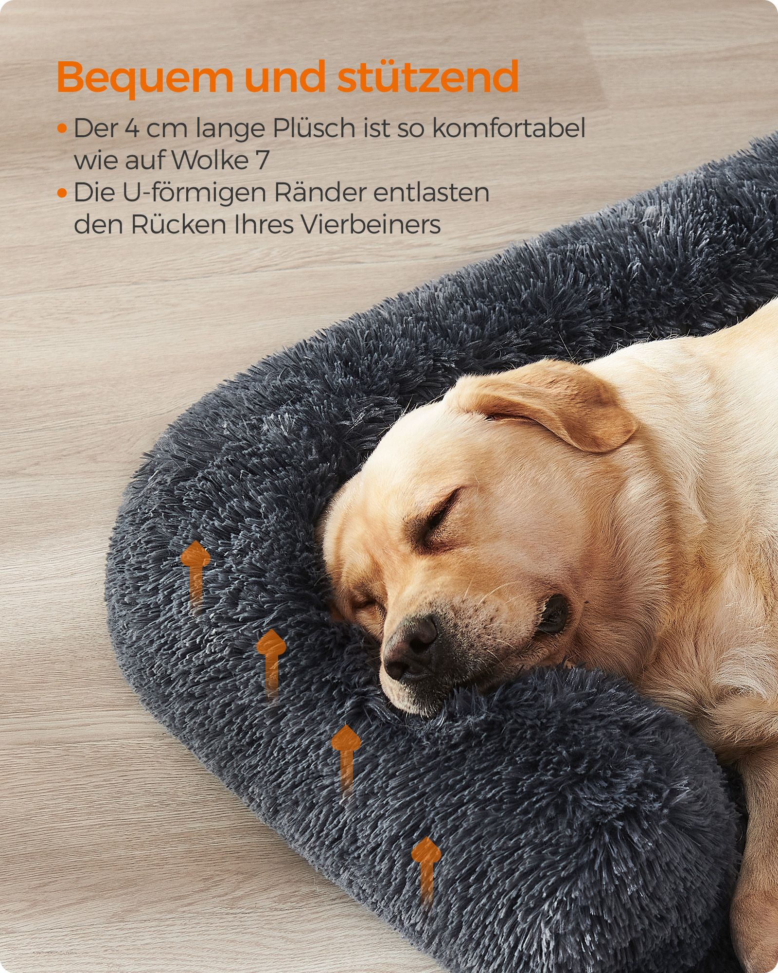 Feandrea FluffyHug hundbädd i plysch, hundfiltsoffa, soffskydd för hundar, hundkudde, storlek XL, för medelstora och stora hundar, 110 x 95 x 18 cm, ombrégrå PGW223G01