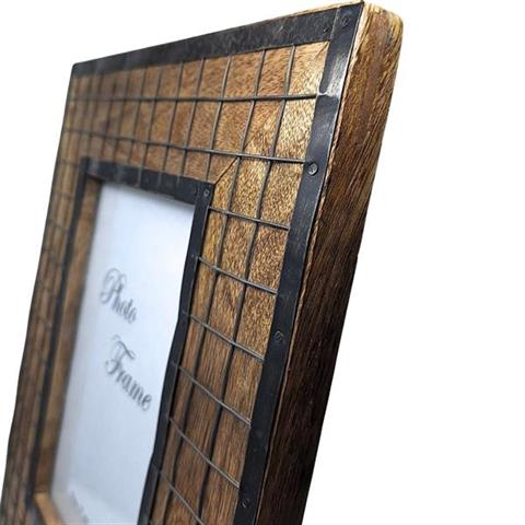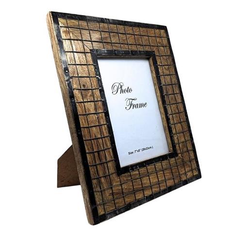 Fotoram i trä, fotostorlek 13 x 18 cm | A-1639 Material: Mangoträ med metalldetaljer Mått: 28 x 22,5 cm Fotohål för fotostorlek 13 x 18 cm Denna fotoram ser verkligen spännande ut och blir en perfekt dekoration i ditt vardagsrum eller på kontoret.