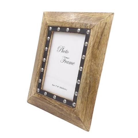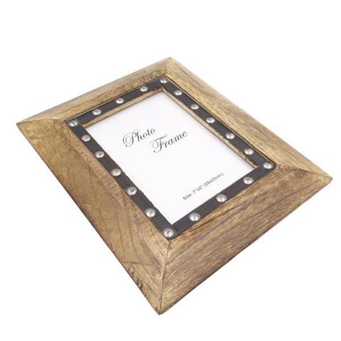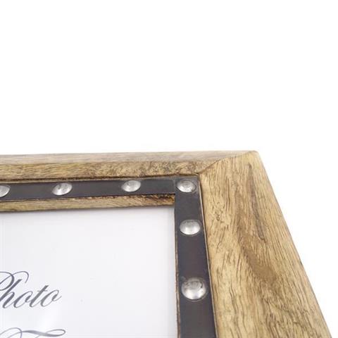 Fotoram i trä Fotostorlek 18×13 cm | 30066 Material: Mangoträ med metallelement Färg: Trä med svart inramning och silverfärgade dekorativa element Fantastiskt dekorativt element som är perfekt för att förvara bilder av dina favoritminnen Mått: Ram 28 x 22,5 cm Fotostorlek 18 x 13 cm