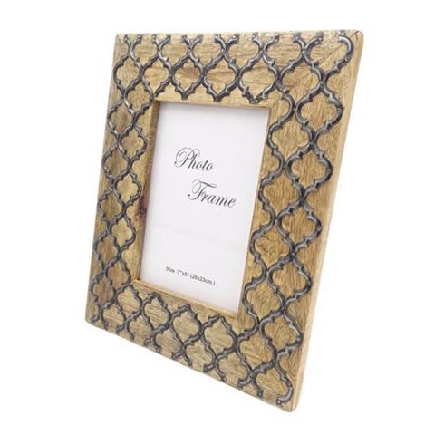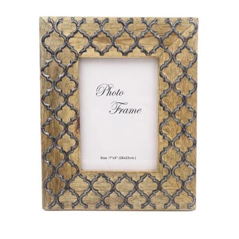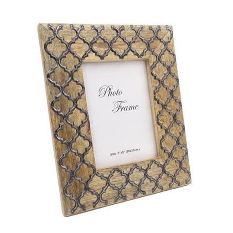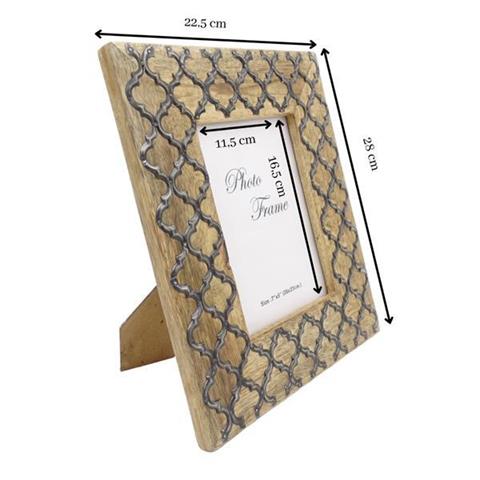 Träram för foto, marockansk klöver, fotostorlek 13 x 18 cm | A-1155 Material: Mangoträ med metallelementMönster: Marockansk klöverFärg: Naturligt mangoträ med svarta metallelementElegant, stilren ram perfekt för unika bilder. Utmärkt dekorativt element Mått: Ram 28 x 22,5 cm Fotostorlek 13 x 18 cm