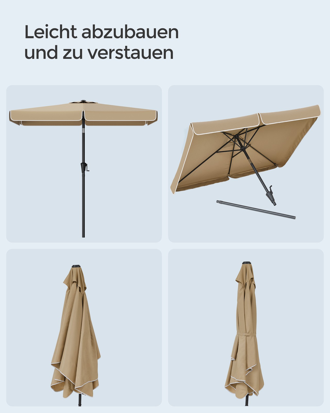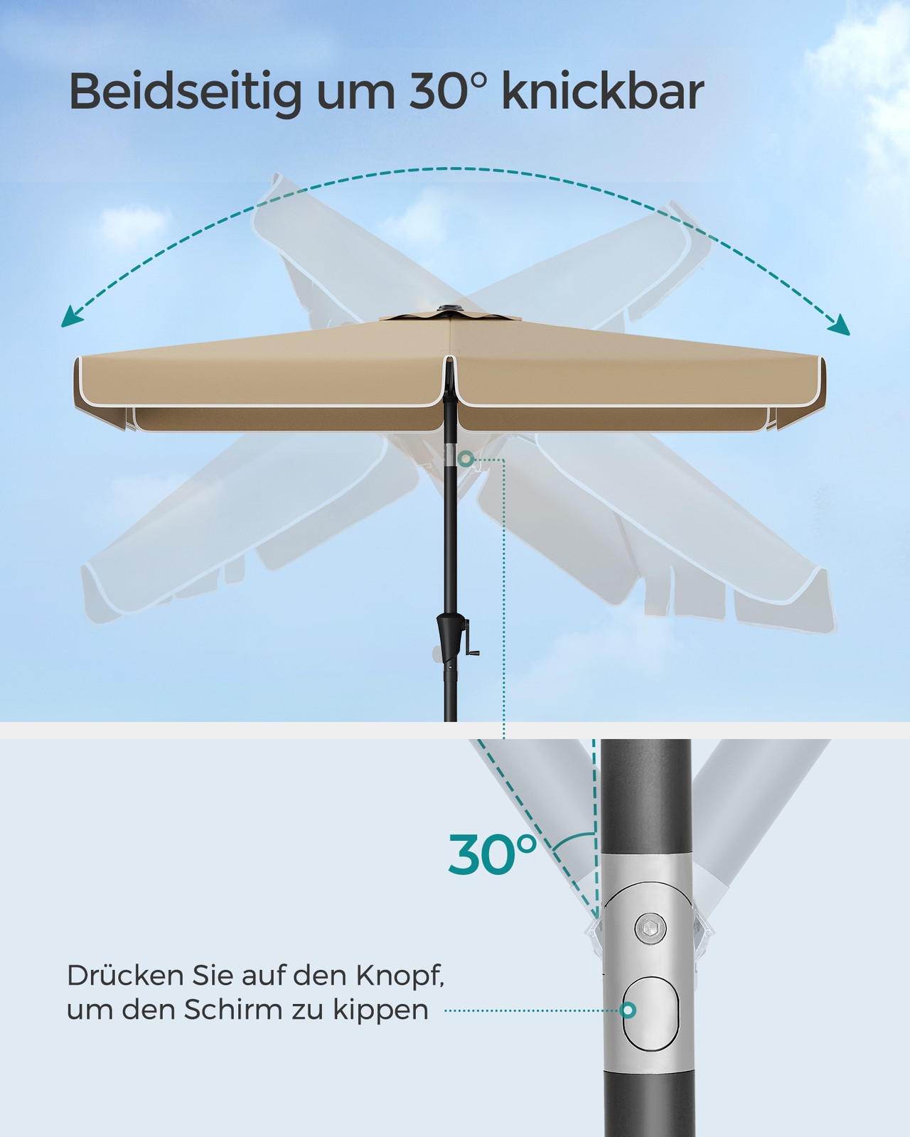 SONGMICS parasoll 200 x 150 cm, rektangulärt balkongparasoll, solskydd UPF 50+, kan böjas 30° på båda sidor, för trädgård, terrass, utan stativ, grå GPU048G01