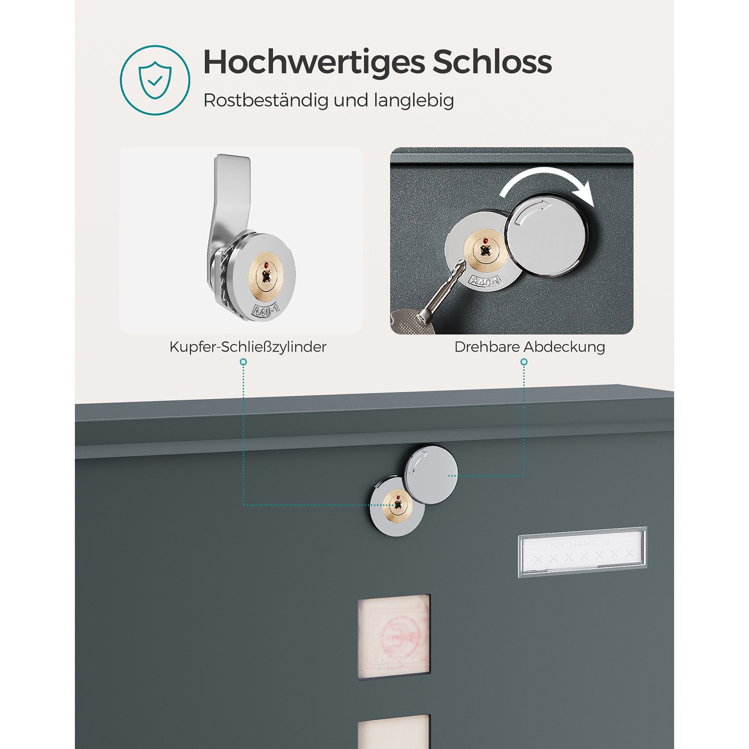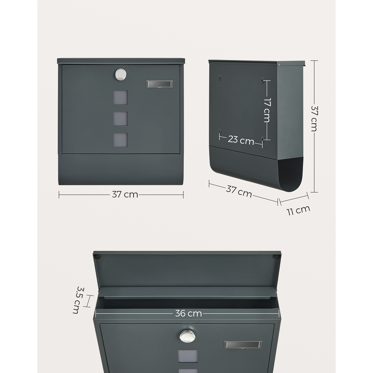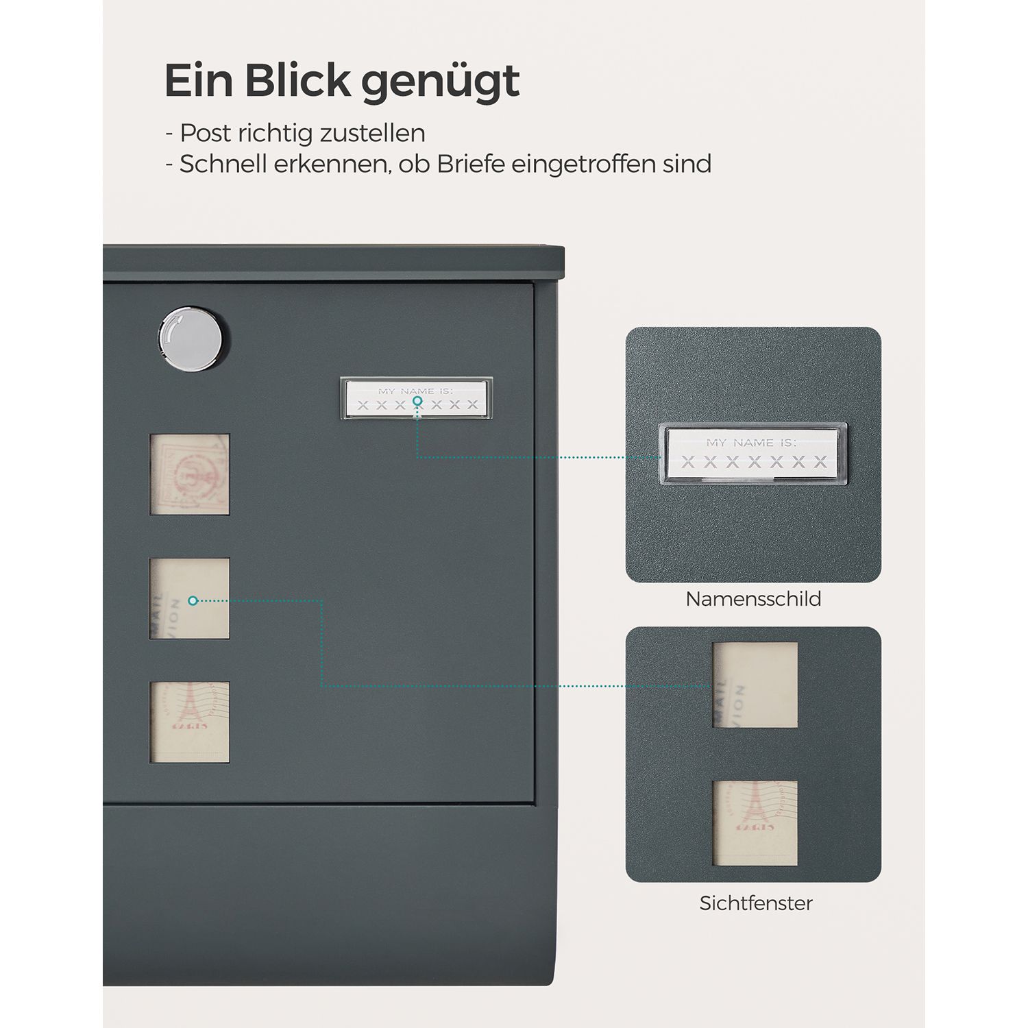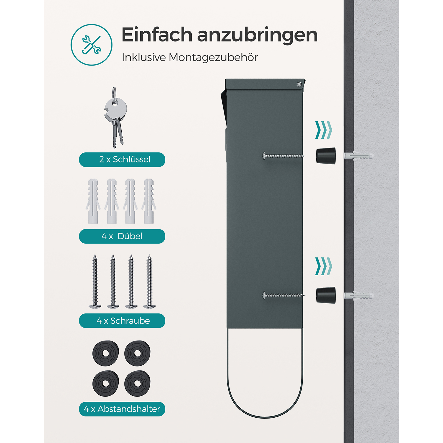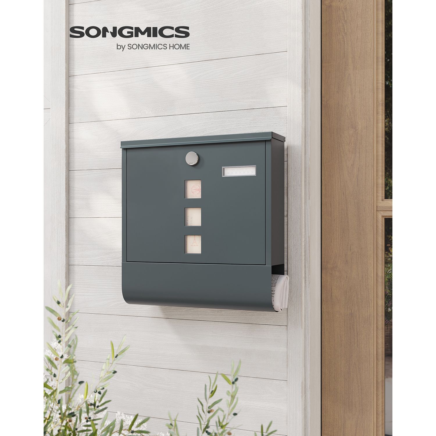 SONGMICS brevlåda, väggbrevlåda, lås med kopparcylinder och vridbar lucka, tidningsfack, fönster, namnskyltfäste, låsbar, enkel montering, antracit GMB20AG