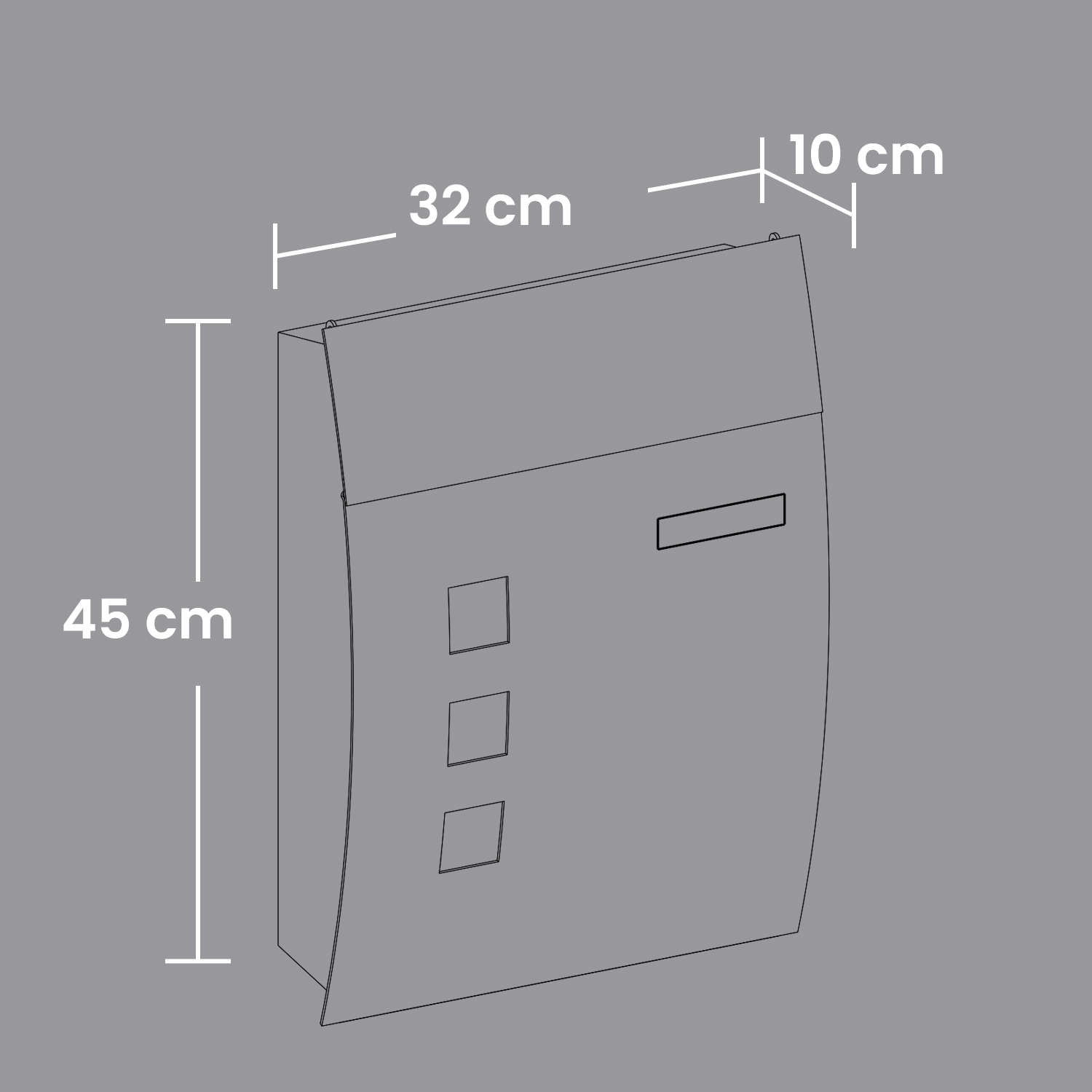 En fristad för dina brev: Lägger brevbäraren alltid dina brev på marken framför din dörr? Detta är särskilt irriterande på regniga dagar. Dessutom kan din post helt enkelt försvinna. Denna brevlåda från SONGMICS kommer till din hjälp och erbjuder dina brev ett litet skydd. Den är tillverkad av pulverlackerat metall, skyddar trycksakerna från väder och vind och har dessutom en lång livslängd.Detaljerna gör skillnaden: Följande genomtänkta detaljer gör att denna brevlåda sticker ut från mängden: Locket på brevlådan skyddar låset från regnvatten; fönstret visar när dina brev har kommit; hållaren för namnskyltar säkerställer att dina brev når rätt adress; de medföljande monteringsdetaljerna gör det enkelt att montera. Produktdetaljer:Färg: AntracitMaterial: Pulverlackerat stålStorlek: 32 x 10 x 45 cm (L x B x H)Vikt: 2,3 kgLeveransomfattning:1 x brevlåda1 x tillbehörspåseSONGMICS Anmärkningar:Det rekommenderas att placera brevlådan på en väderskyddad plats för att säkerställa en längre livslängd.