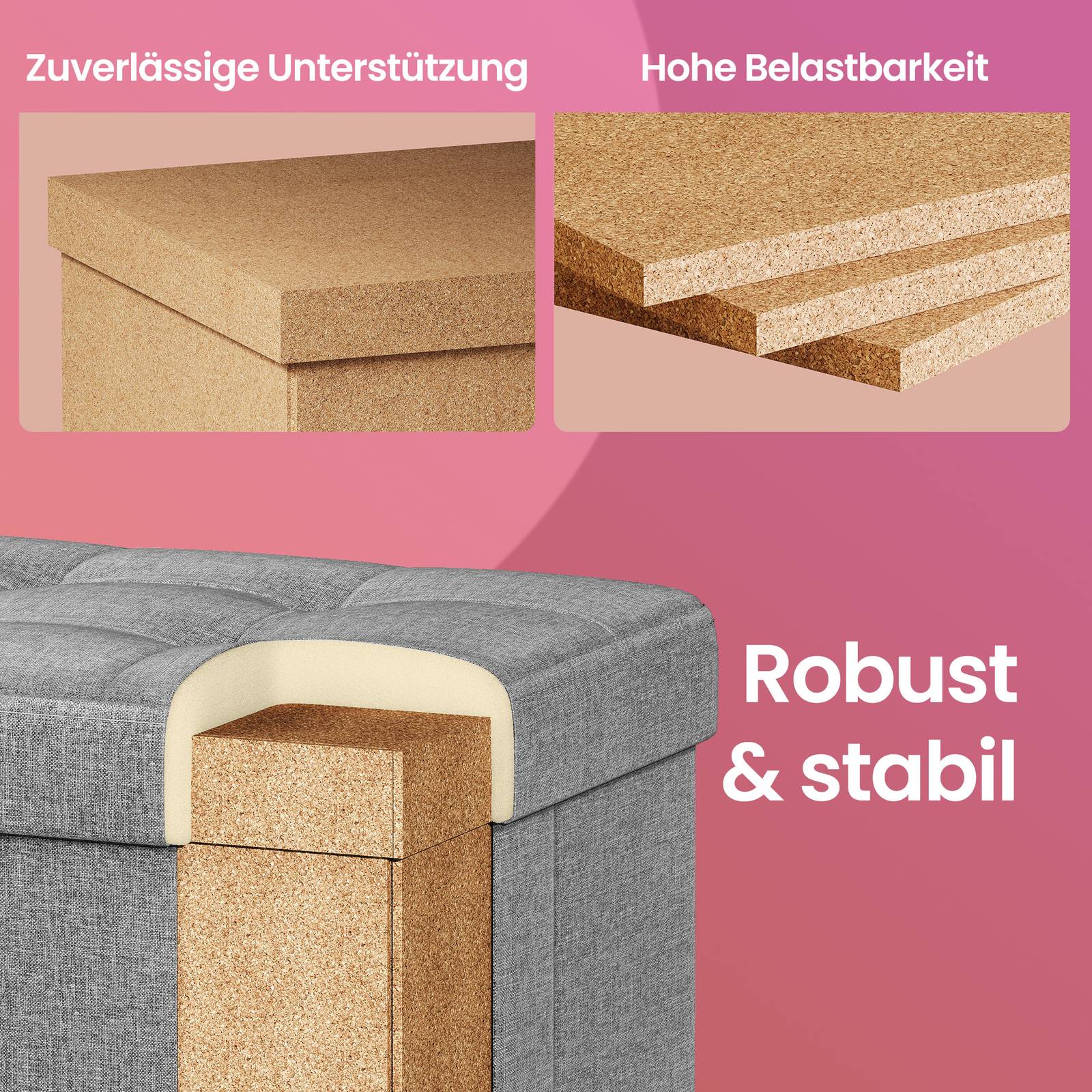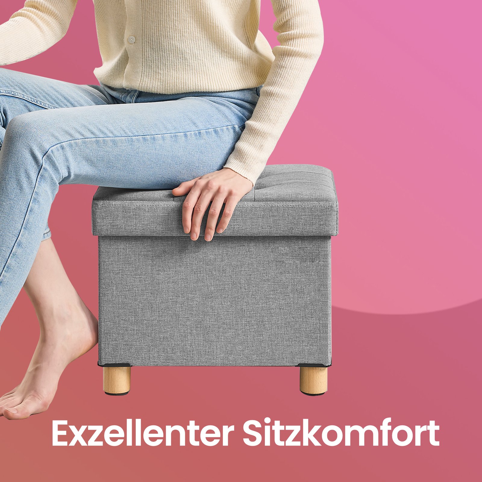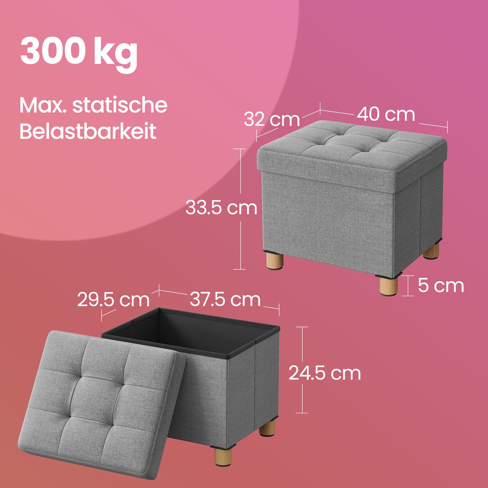 Pall med förvaringsutrymme, liten hopfällbar bänk, 38 x 38 x 40 cm, belastningskapacitet upp till 300 kg, förvaringsbox, vardagsrum, sovrum, skiffergrå