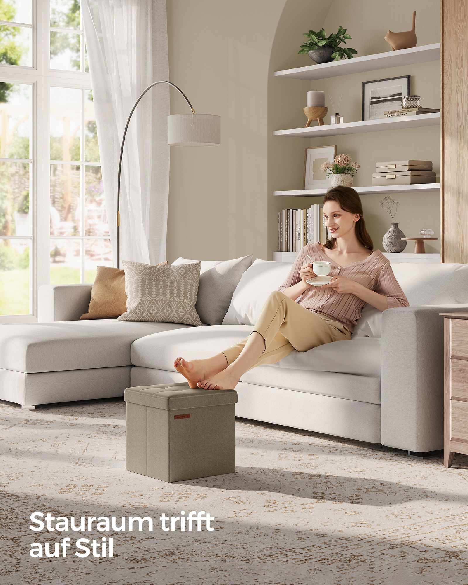 SONGMICS sittpall med förvaringsutrymme, hopfällbar pall, fotpall, hopfällbar pall, sittkub för vardagsrum, sovrum, 30 x 30 x 30 cm, mörkgrå LSF028G01
