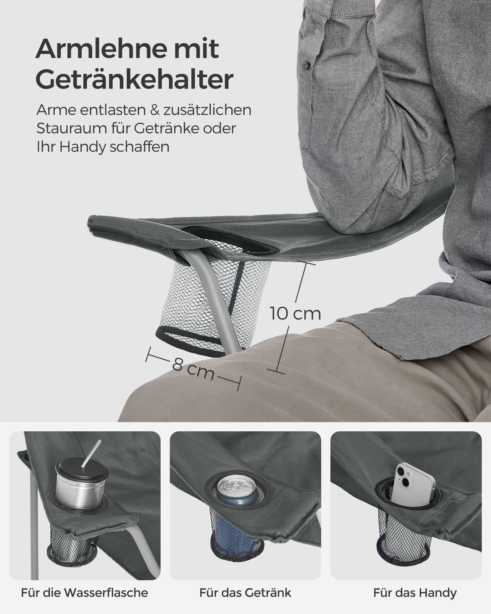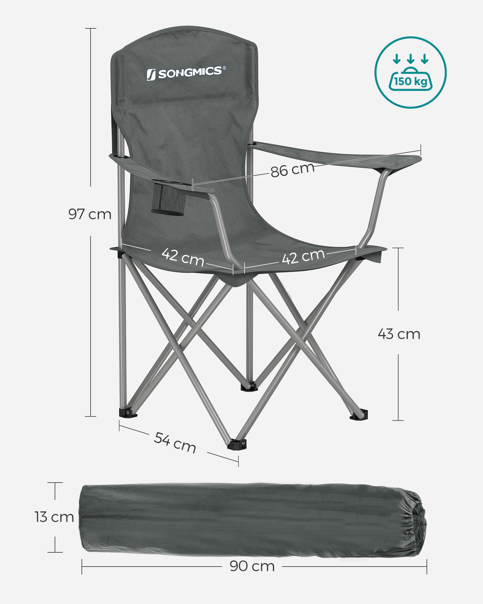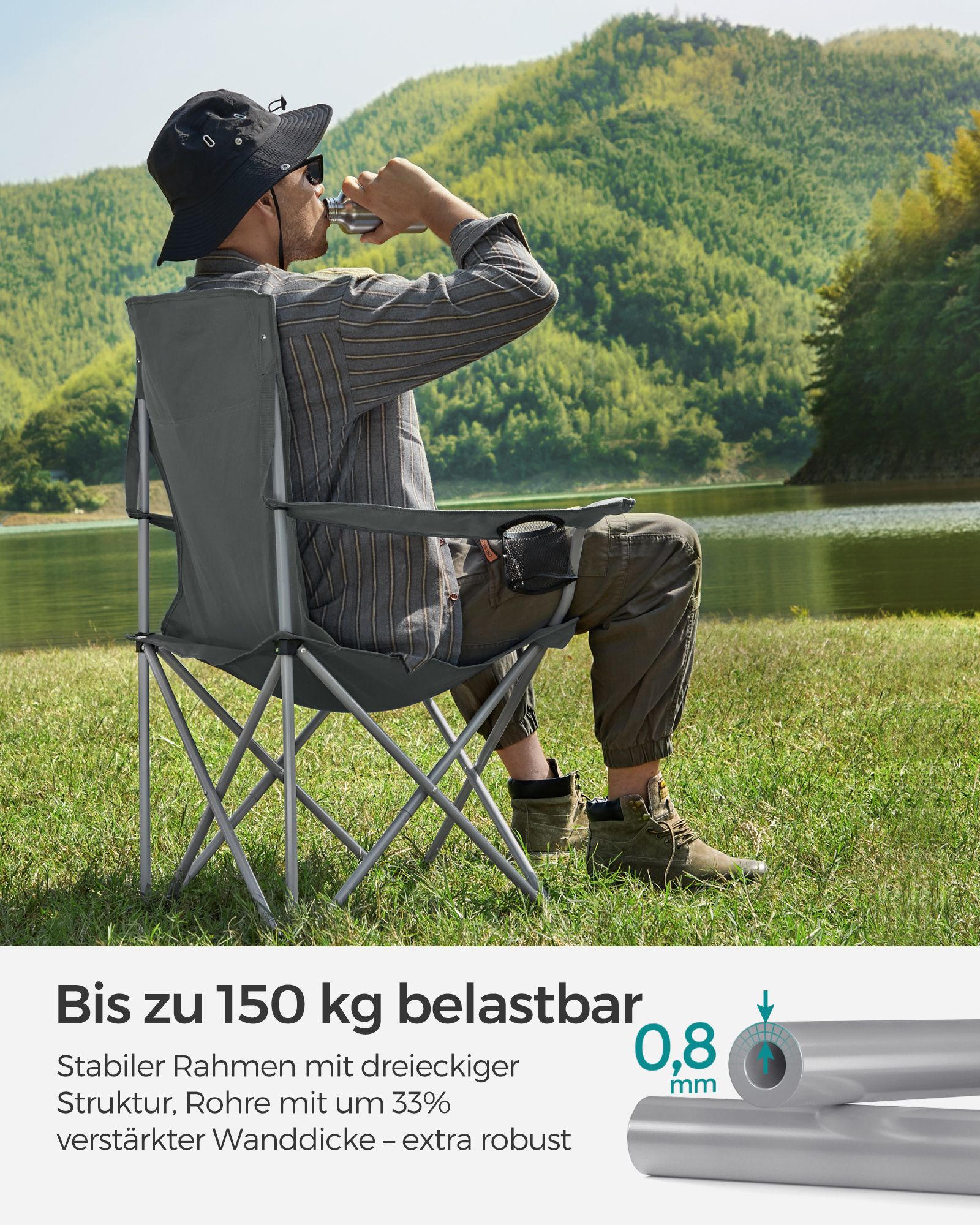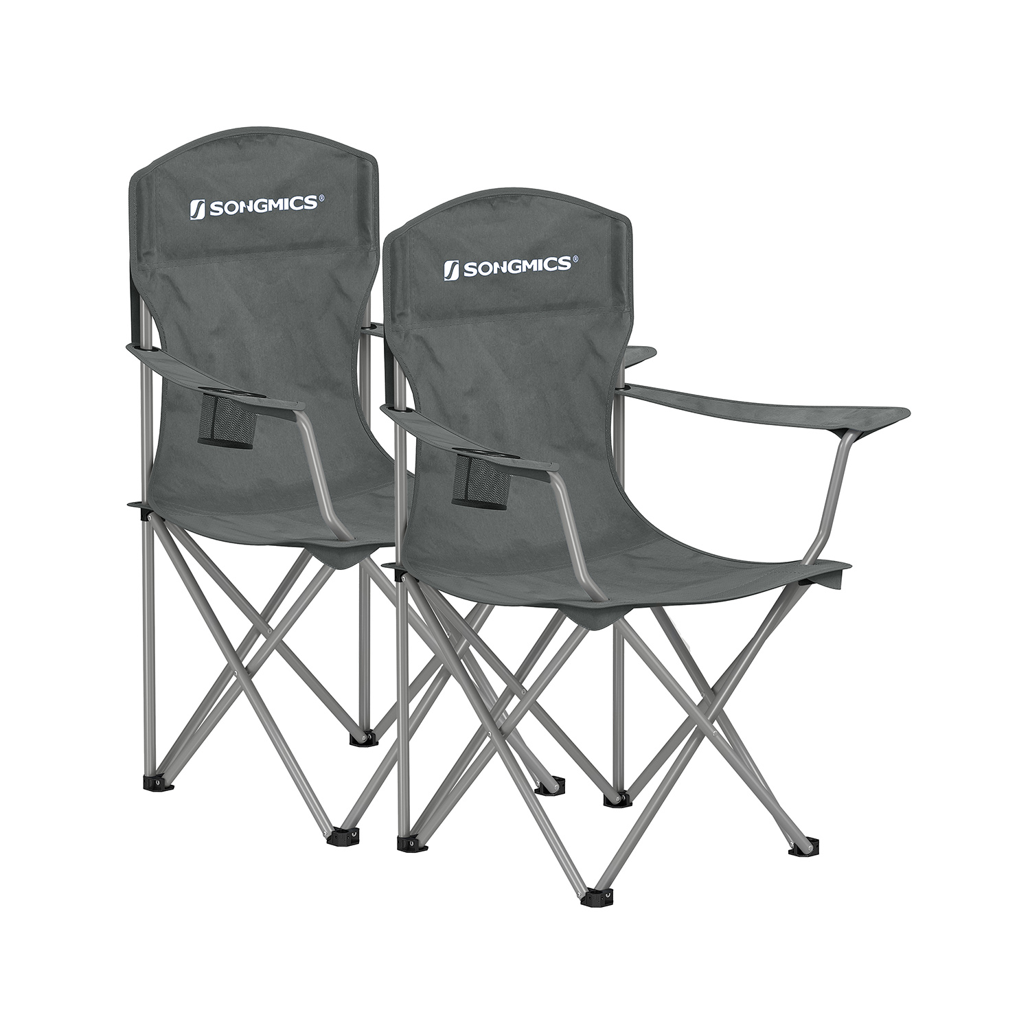 SONGMICS 2-pack fällbara campingstolar Fällbara stolar Bekväm konstruktion för tung belastning Max. bärkraft 150 kg med dryckeshållare Utomhusstol