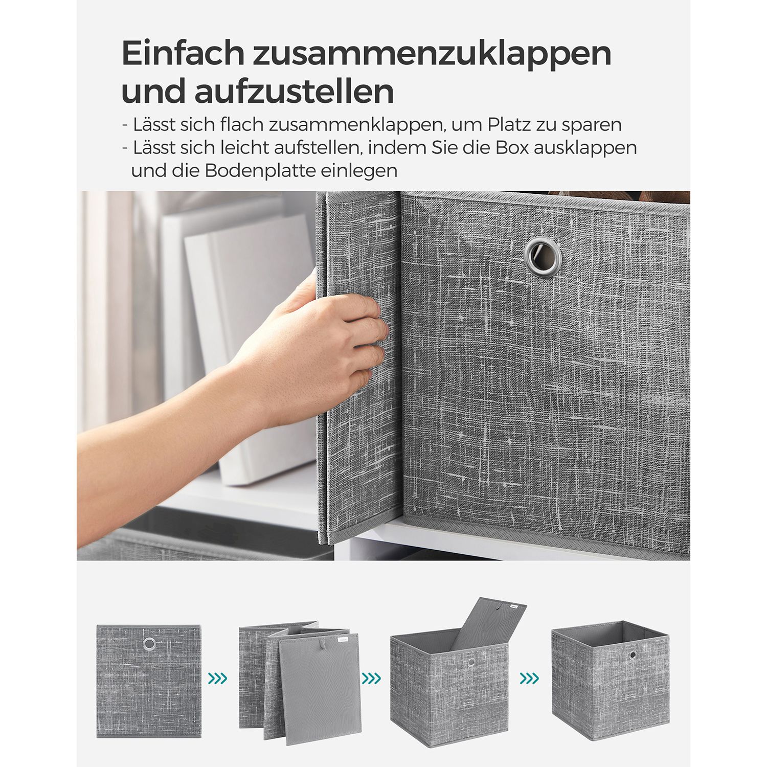 SONGMICS förvaringsbox, 6-pack, förvaringsboxar av non-woven-tyg med handtag, förvaringsboxar, 26 x 26 x 28 cm, organiseringsbox, för kubhyllor, vikbar box, klädförvaring, svart melerad RFB026B01