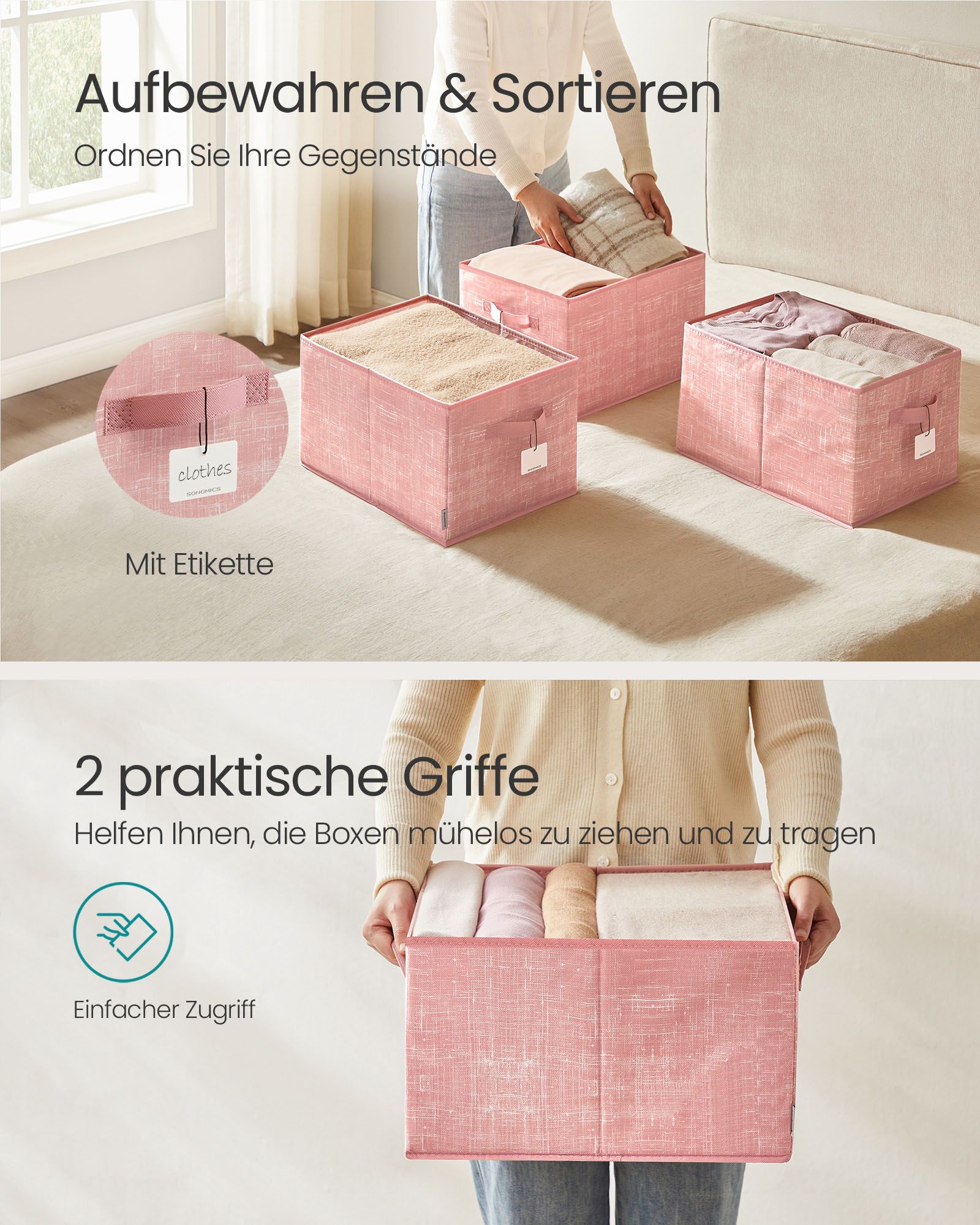SONGMICS förvaringsbox 3-pack, hopfällbar, tygboxar för förvaring, 30 x 20 x 15 cm, för garderob, 2 handtag, etikett, för sovrum och vardagsrum, bläck svart ROB415B01