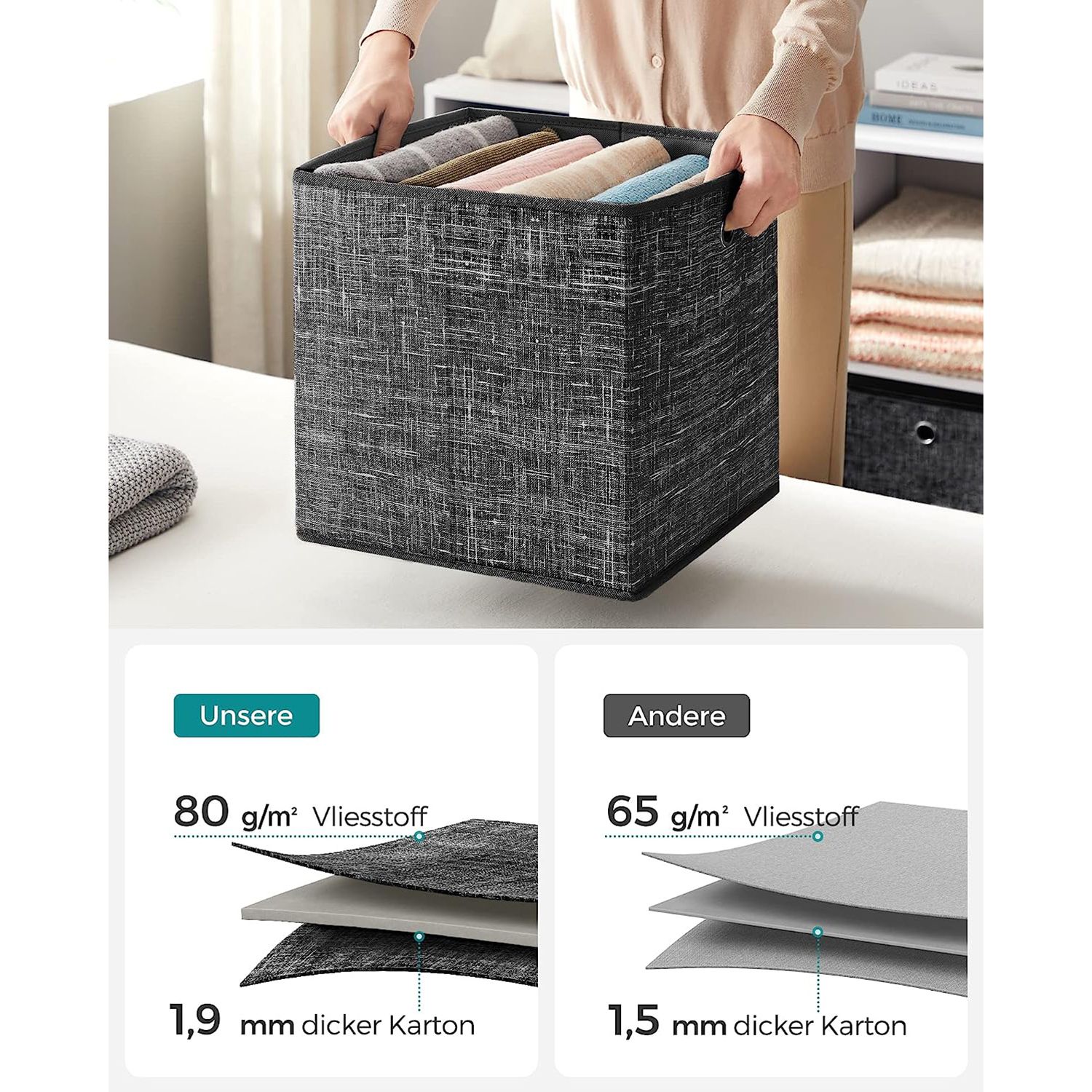 Storlek per låda: 33 x 33 x 33 cm (L x B x H)
