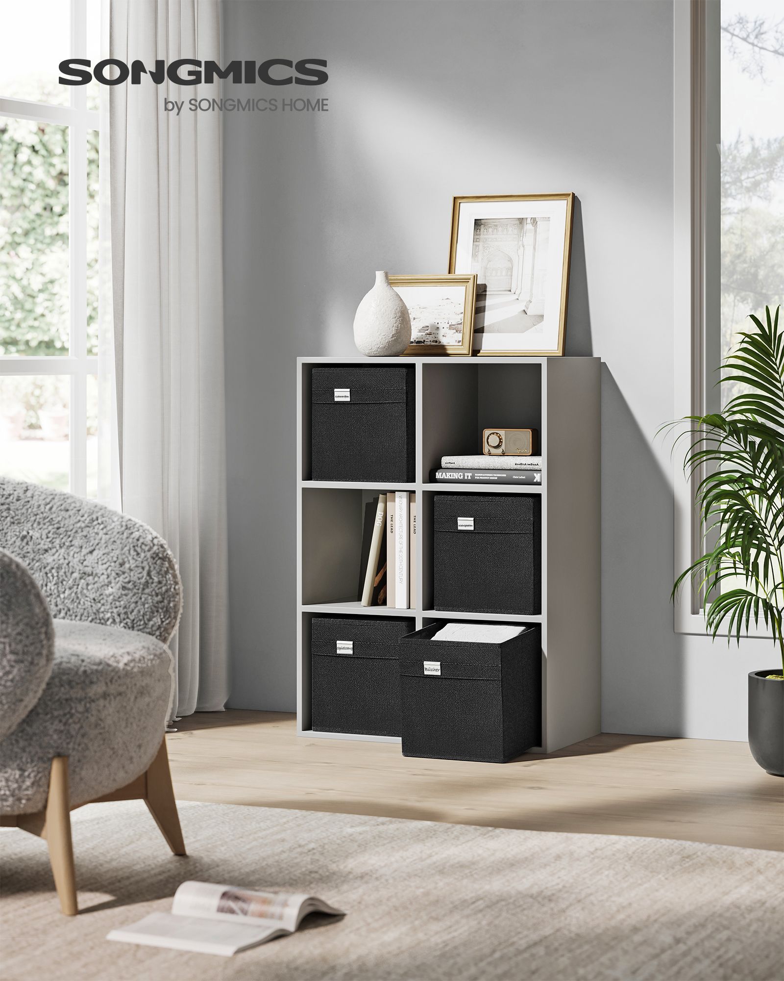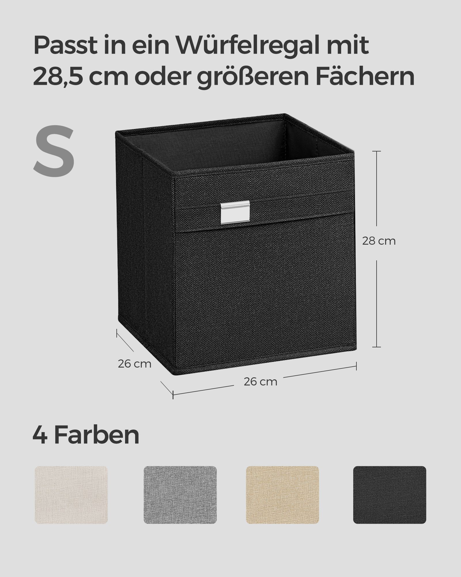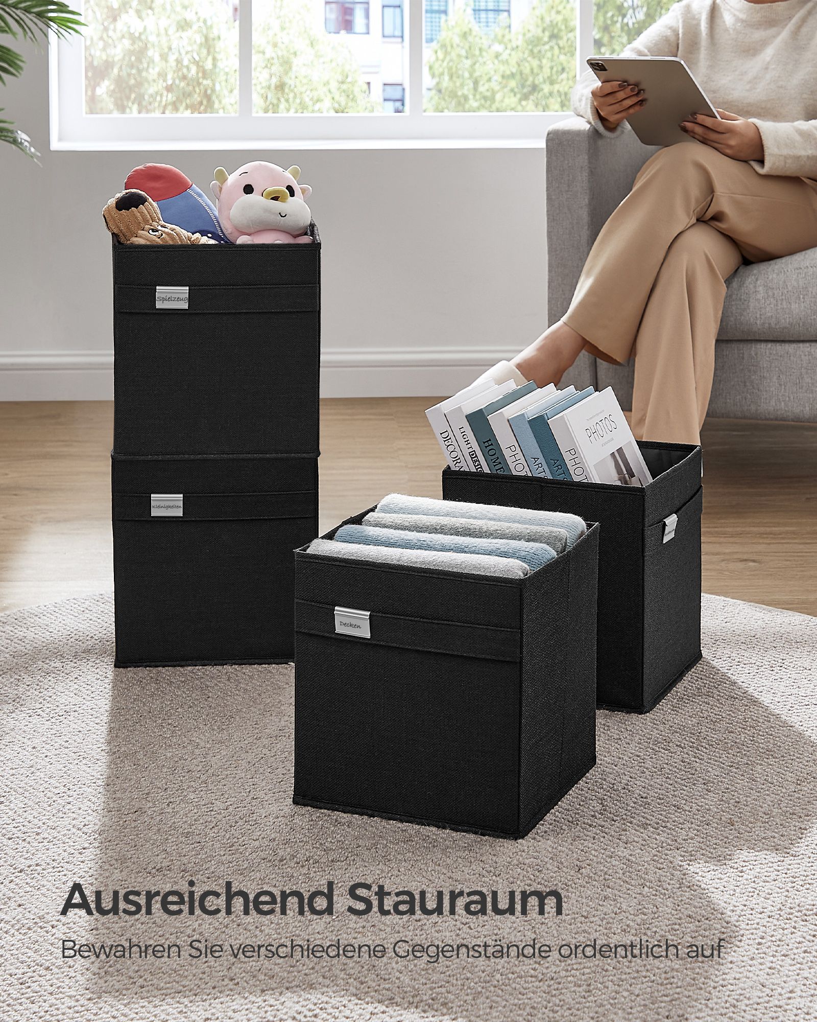 SONGMICS förvaringsbox, 4-pack, ordningsboxar, 33 x 33 x 33 cm, 2 handtag, hopfällbar, Oxford-tyg, imiterat linne, lättskött, metalletikettfäste, för kubhyllor