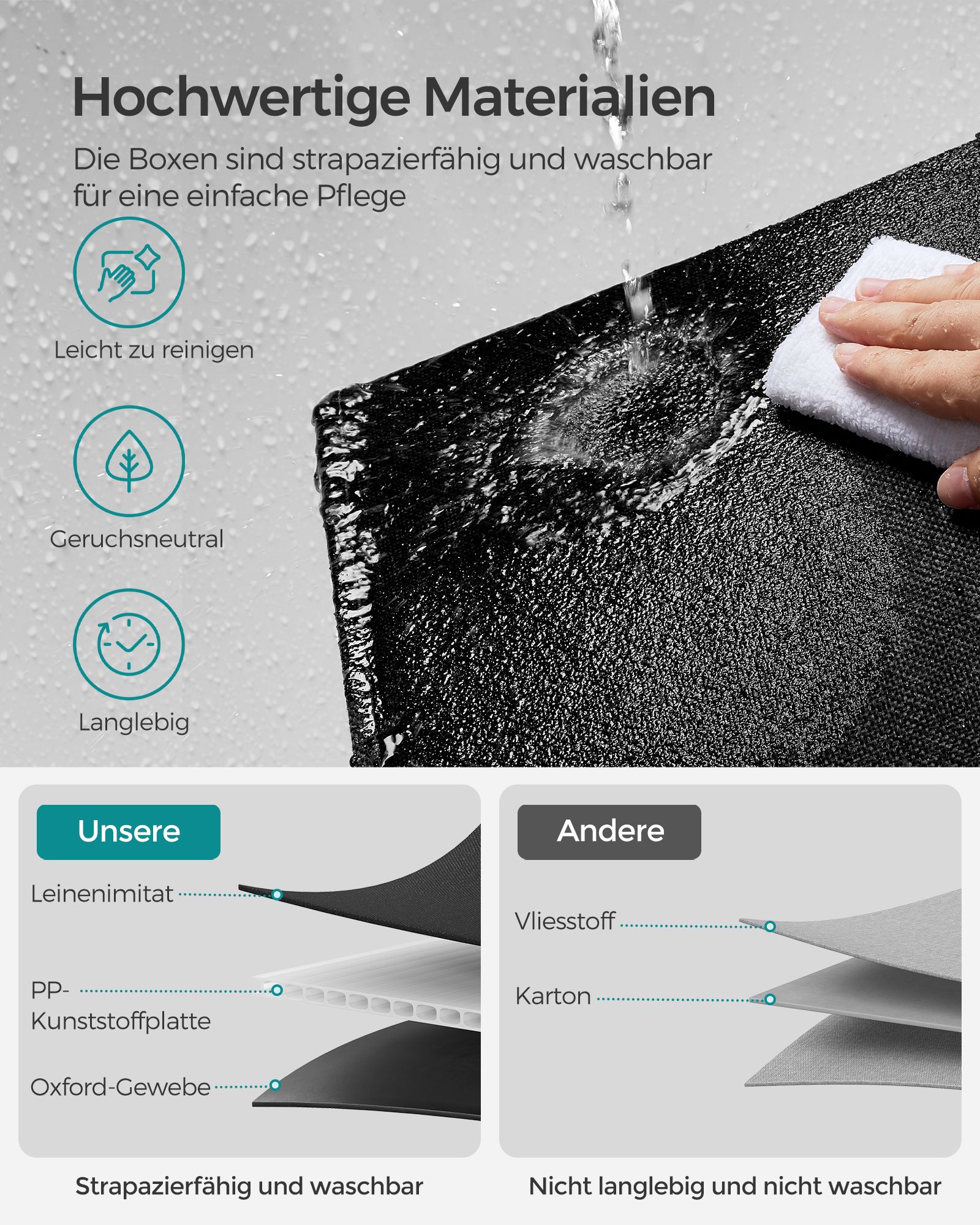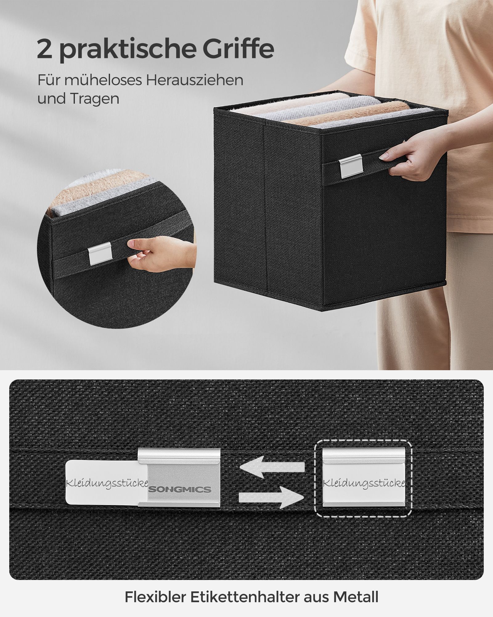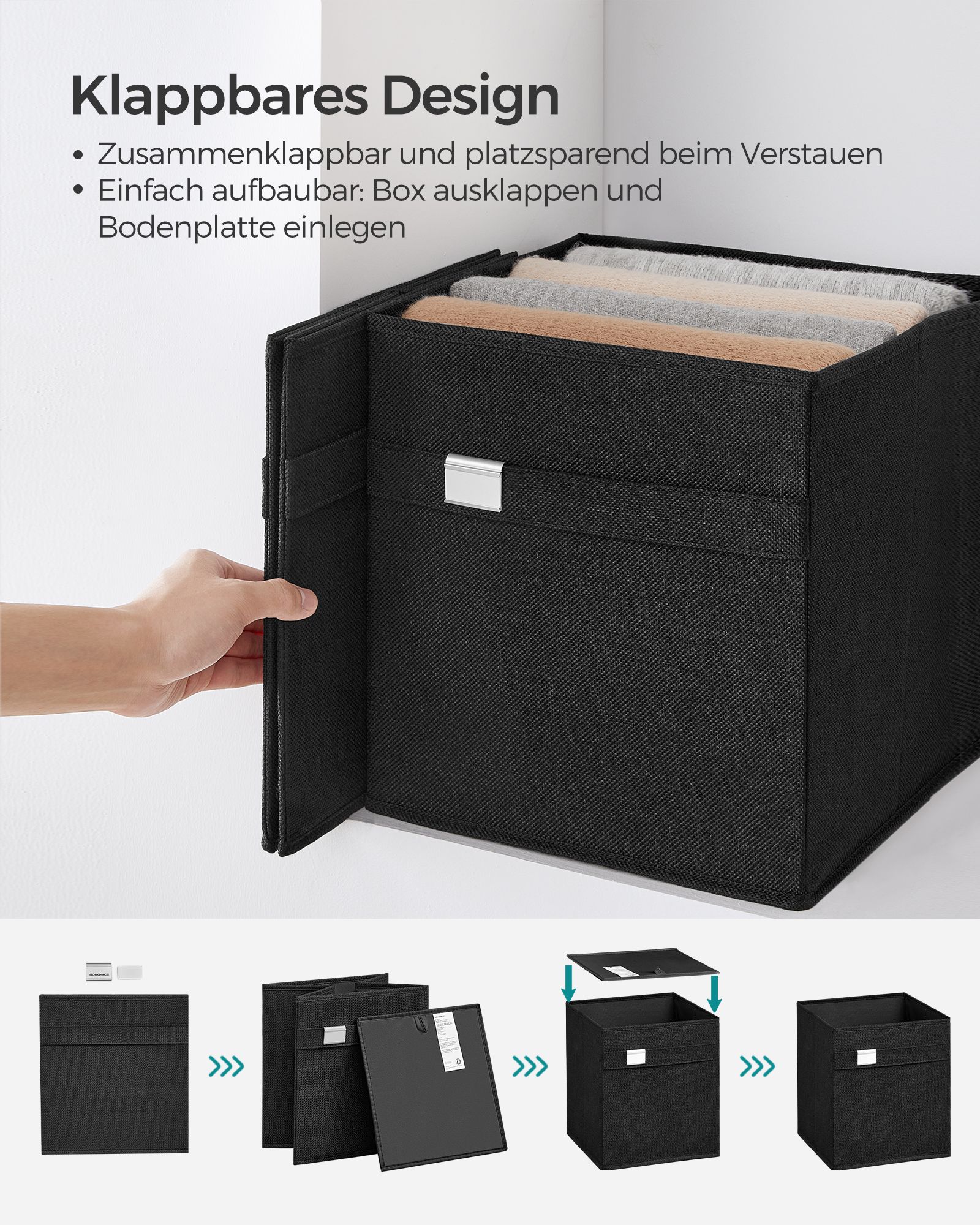 SONGMICS förvaringsbox, 4-pack, ordningsboxar, 33 x 33 x 33 cm, 2 handtag, hopfällbar, Oxford-tyg, imiterat linne, lättskött, metalletikettfäste, för kubhyllor