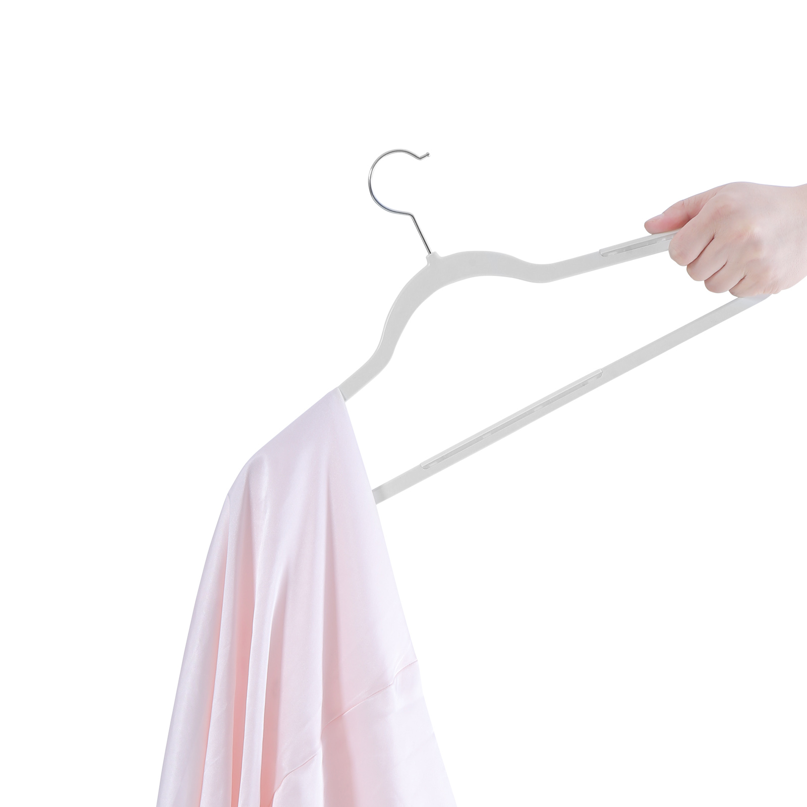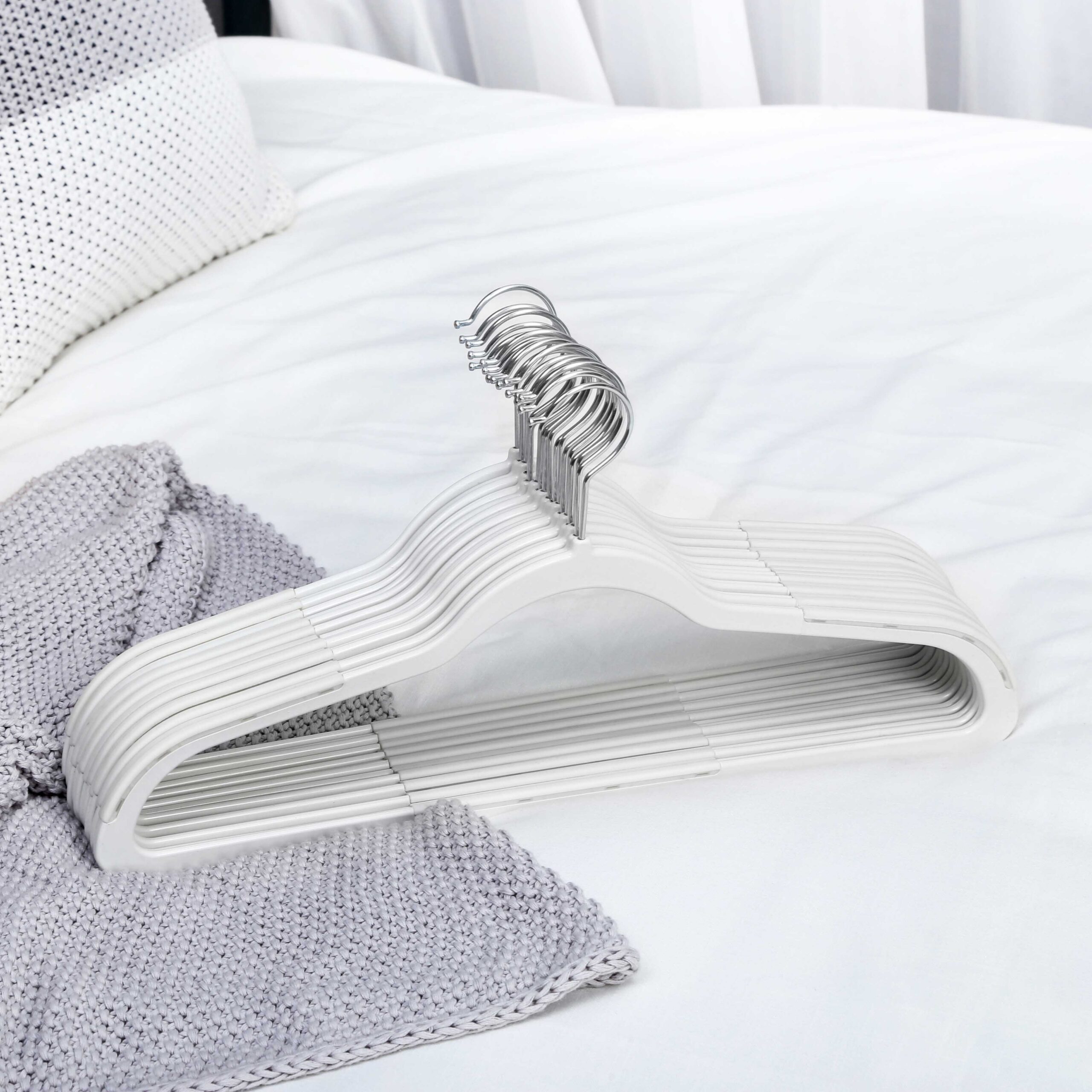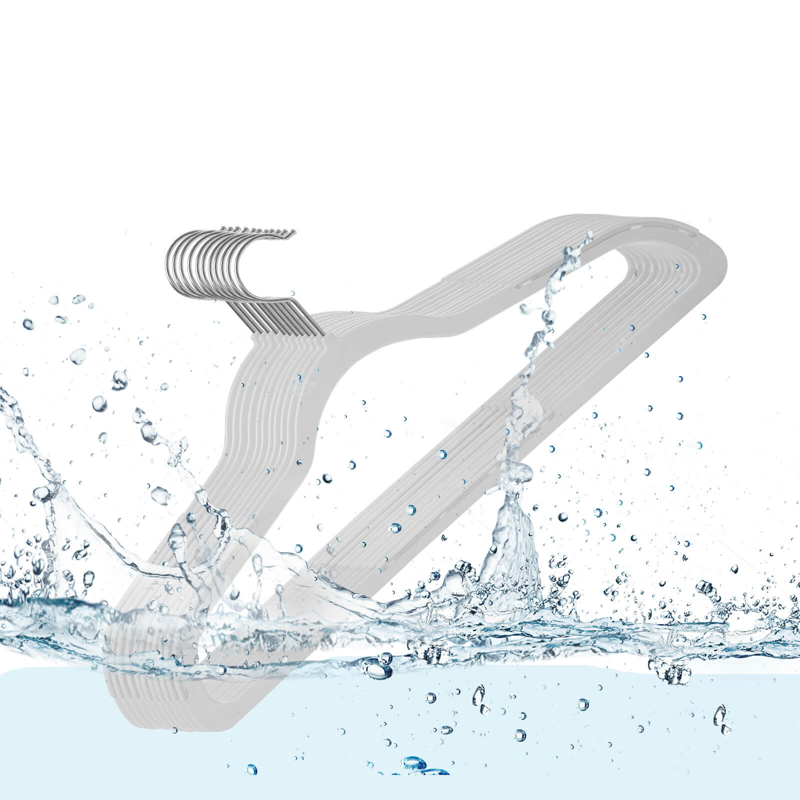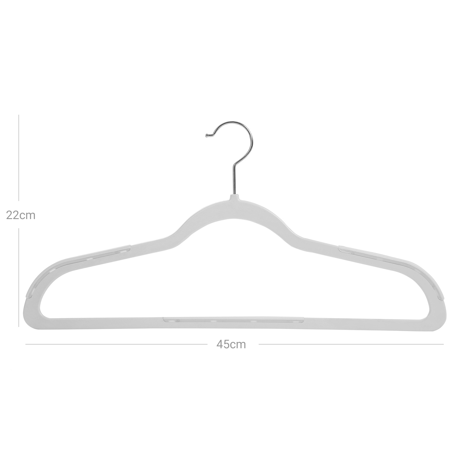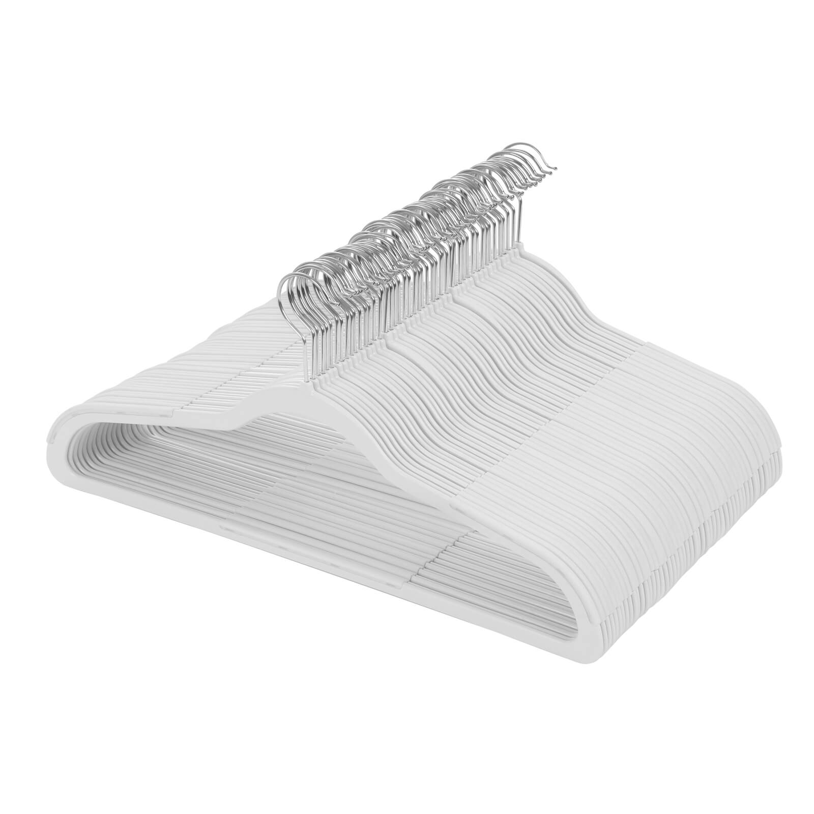 För torkning av tvätt utomhus och för organisering av garderoben. Dessa klädhängare är tillverkade av ABS-plast och är perfekta för att hänga upp våta kläder. Du kan också använda klädhängarna i din garderob för att skapa en ordnad och överskådlig helhetsbild.Produktdetaljer: Färg: Vit Material: ABS-plast Mått per klädhängare: 45 x 22 x 0,5 (B x H x D) Vikt per klädhängare: 83 g Max. belastningskapacitet per klädhängare: 5 kg Leveransomfång: 50 x klädhängare