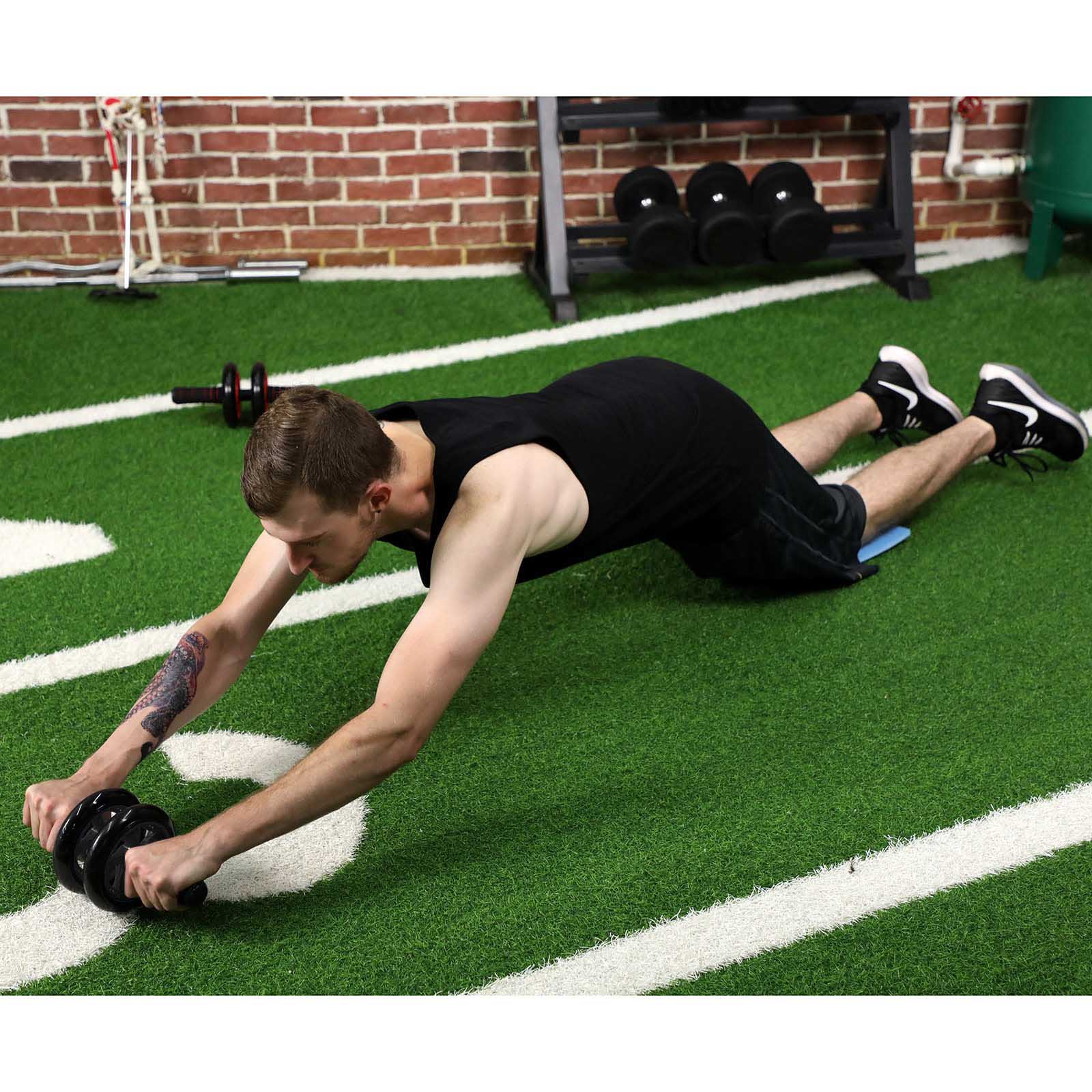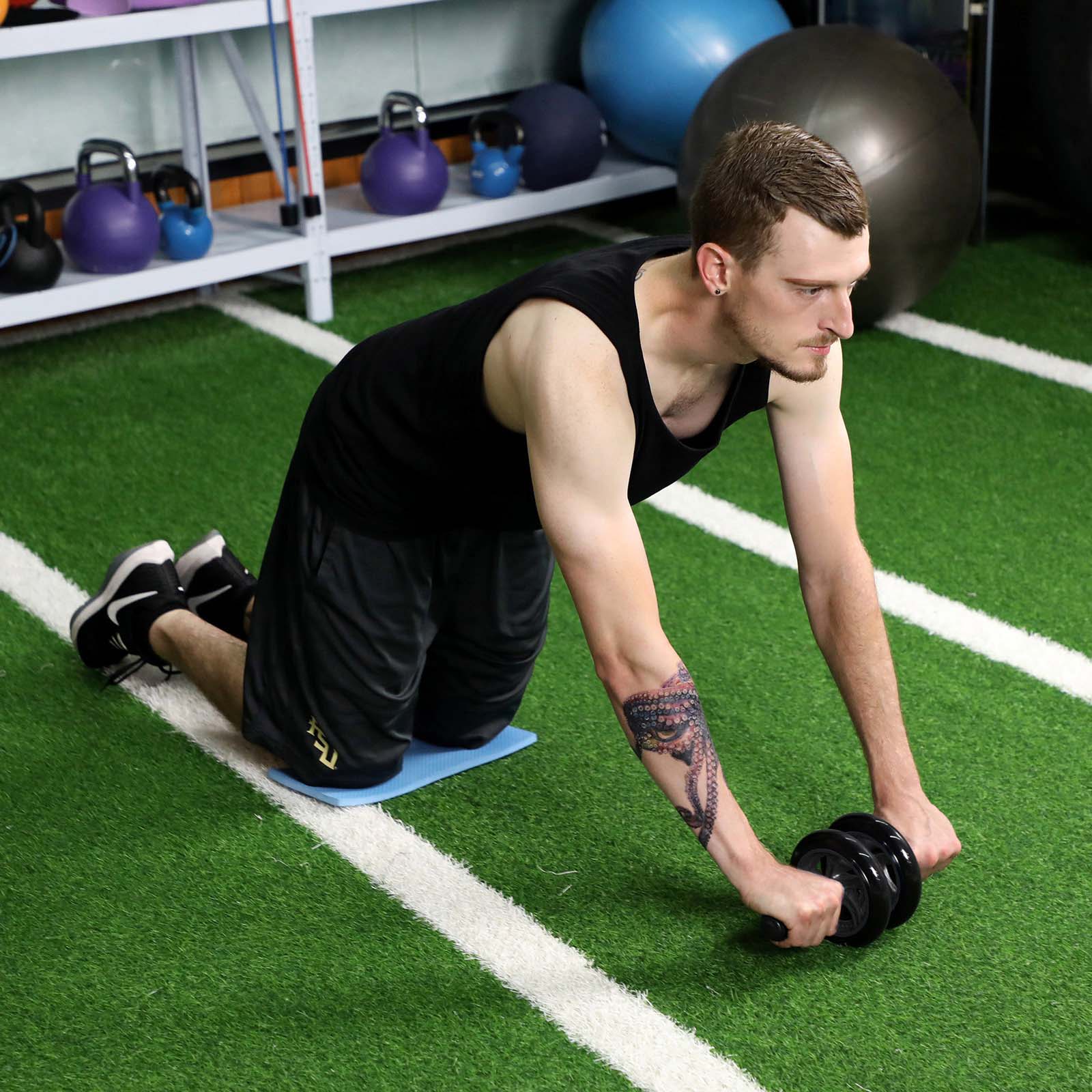 Har du drömt om en smalare mage? Eller om en sixpack? Magtränaren från SONGMICS är ett perfekt sätt att träna dina muskler hemma så att du kan hålla dig i form och bränna kalorier även på vintern. Träna effektivt dina mag-, arm-, axel- och ryggmuskler med denna unika fitnessrulle. De två skumplastklädda handtagen är ergonomiskt formade och ligger bra i handen under träningen, vilket garanterar ett halkfritt grepp även med svettiga händer. Stålröret har en väggtjocklek på 2 mm, vilket gör det extremt stabilt och tål en belastning på upp till 130 kg.Ab Wheel är mycket lätt att montera, den är demonterbar och kan förvaras på ett utrymmesbesparande sätt och även tas med på semestern. Det är ett perfekt alternativ för att bygga upp och förbättra styrka och muskler i armar, rygg, axlar och mage! Dessutom är det en perfekt present till din familj eller vänner, så att ni kan träna tillsammans. Produktdetaljer: – Färg: Svart – Material: plast (miljövänlig PVC), skumplast, galvaniserat stålrör – Storlek: 32 x 14,5 cm (L x H) – Stålrörets tjocklek: 2 mm – Stålrörets längd: 24,5 cm – Hjulets diameter: 14,5 cm – Avstånd mellan de två hjulen: 3 cm – Vikt: 0,8 kg – Max. belastningskapacitet: 130 kg Leveransomfattning: – 1 x magtränare – 1 x knämatta
