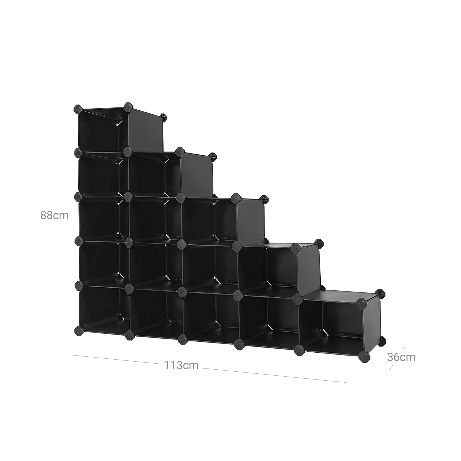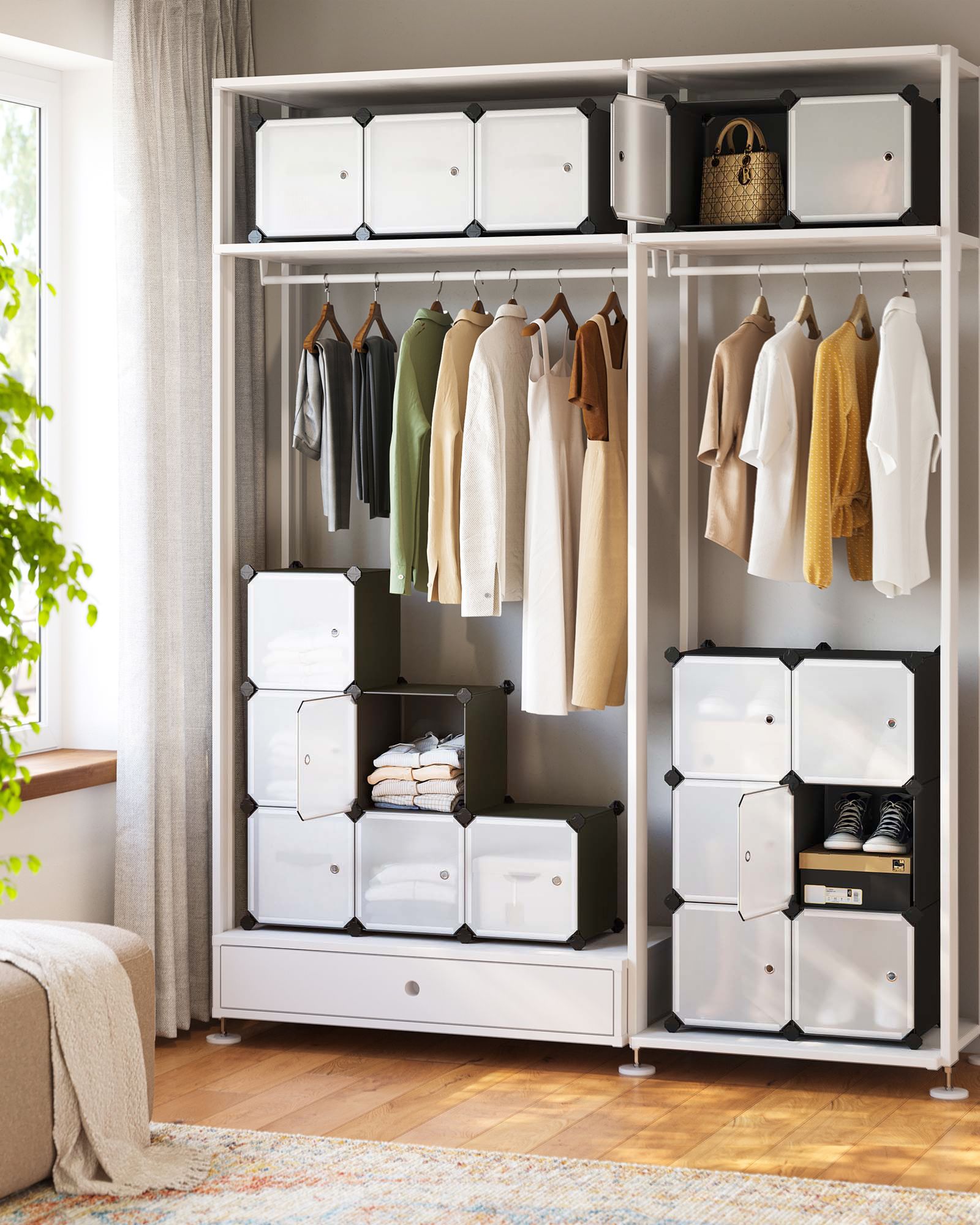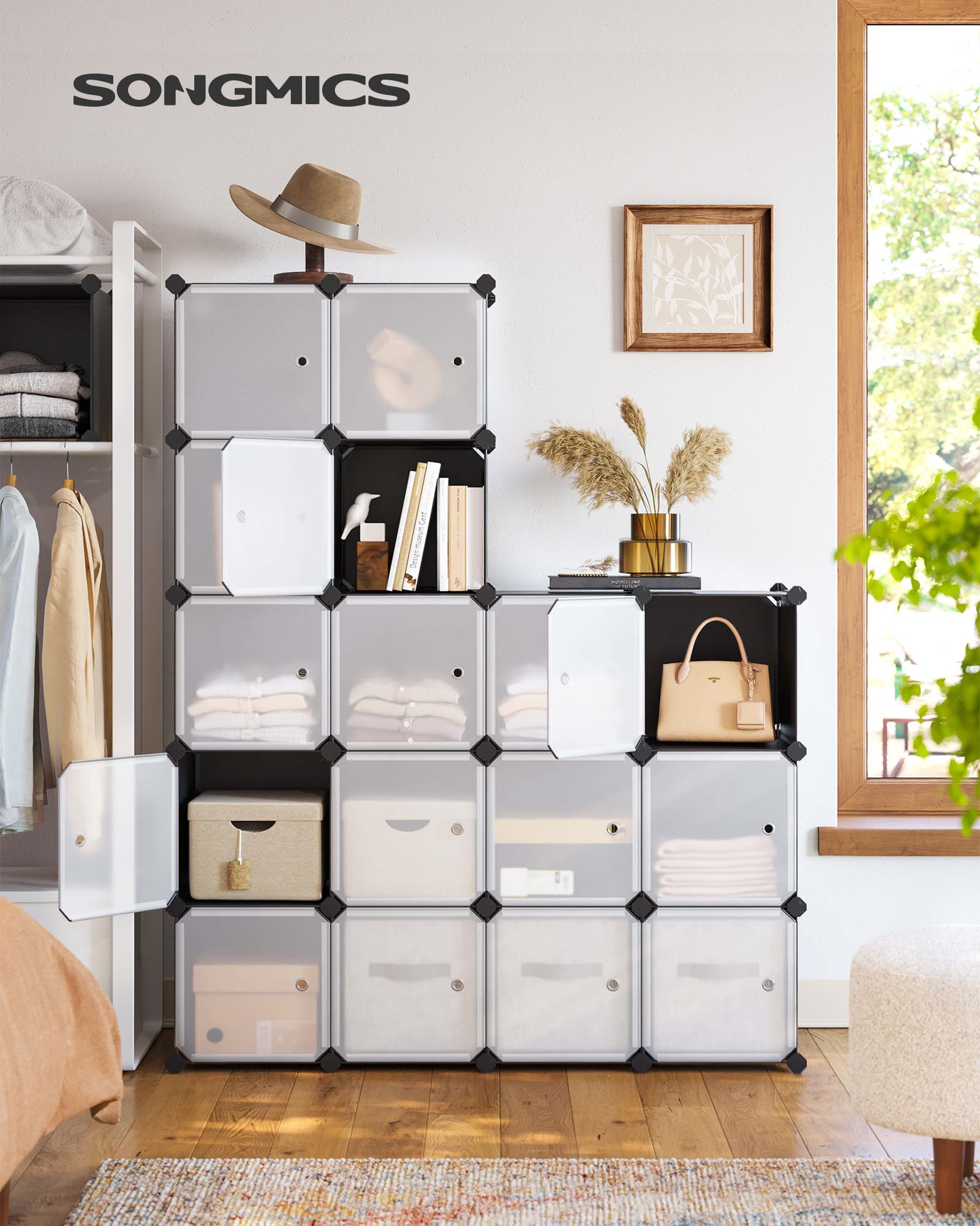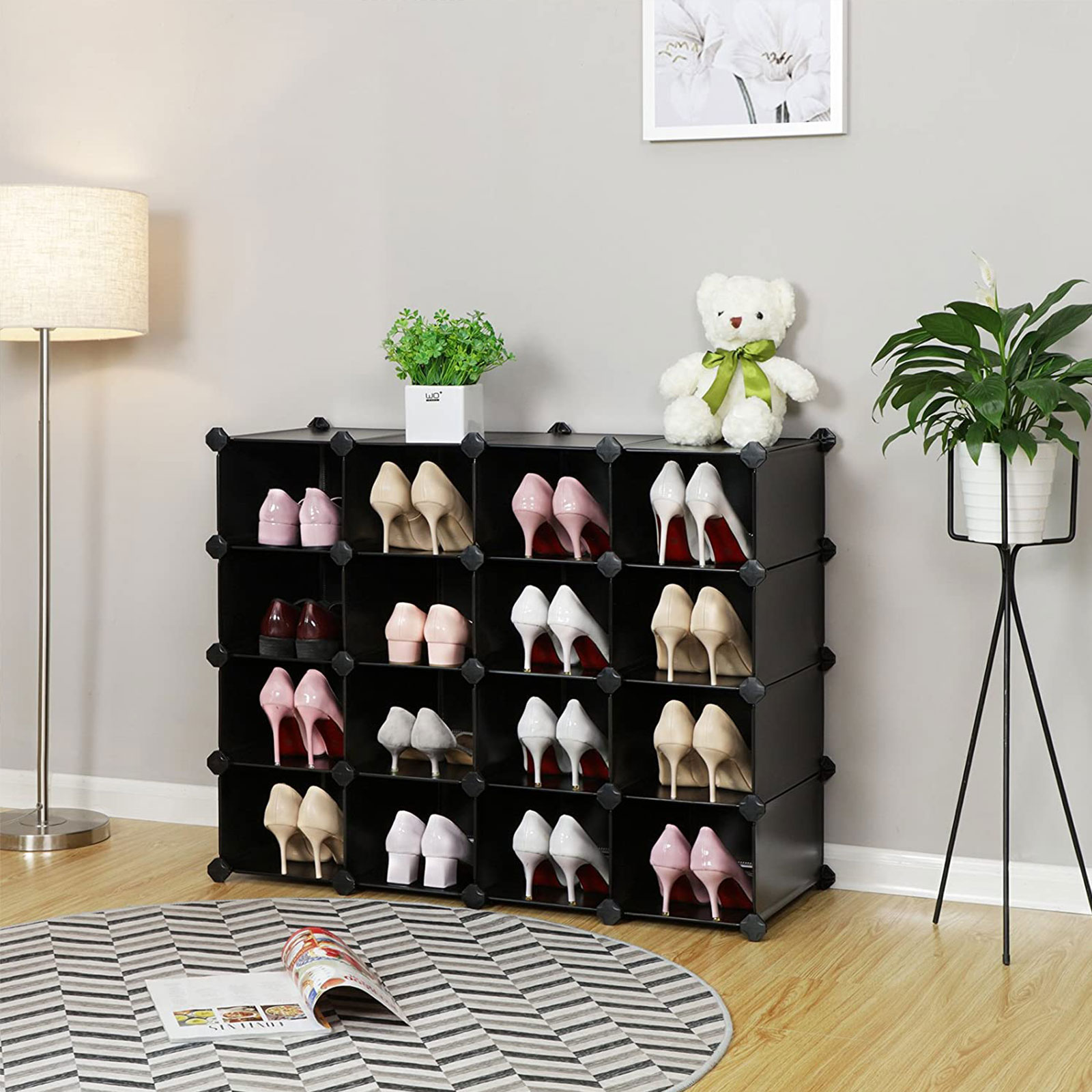 SONGMICS Skohylla i plast, rektangulärt hyllsystem med 16 fack, DIY-hylla, förvaringshylla, garderob, skoorganiserare, 22 x 35 x 22 cm per fack, metalltråd, vit LPC44S