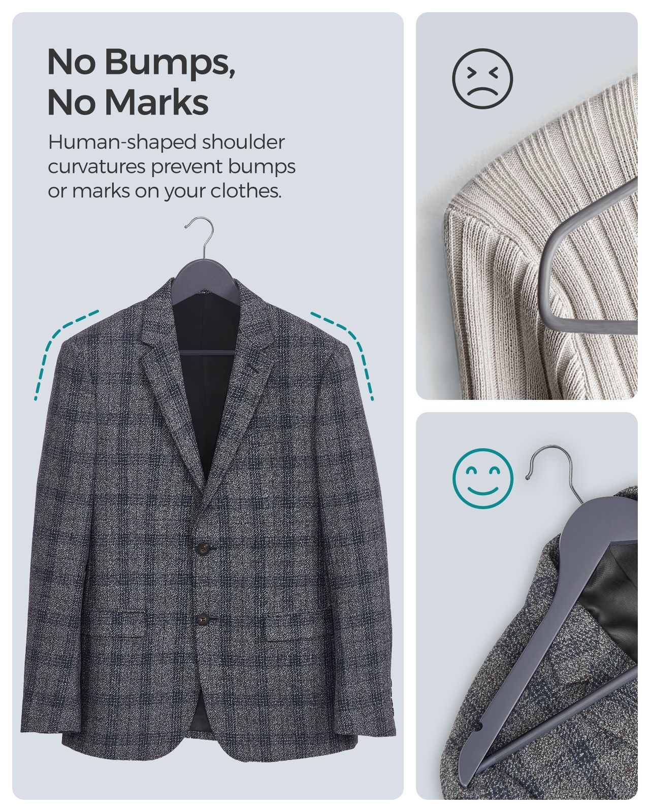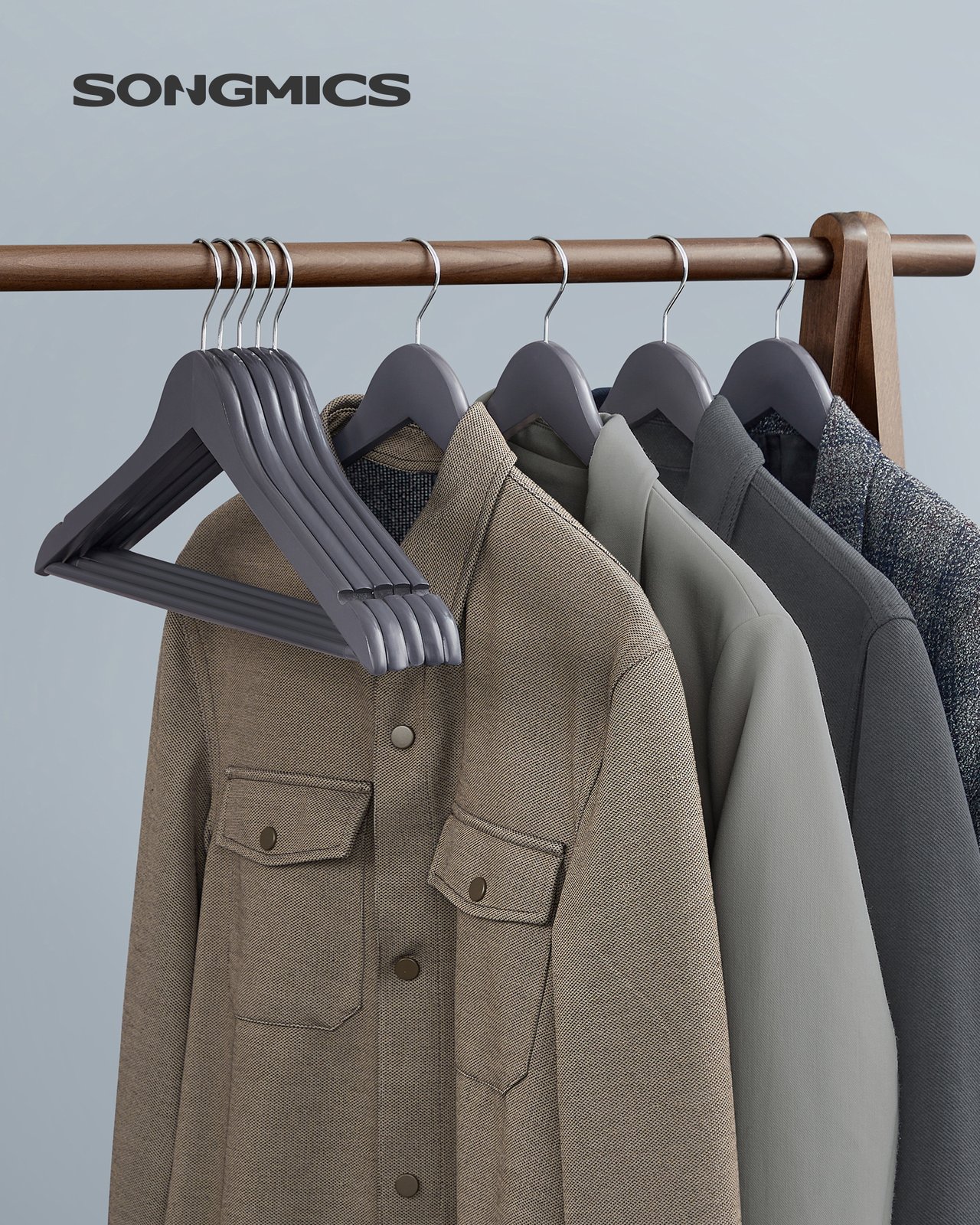 SONGMICS klädhängare – 10 stycken, kanter, med halkfri brygga, 360° vridbar krok, CRW001-10, trä, natur, 10