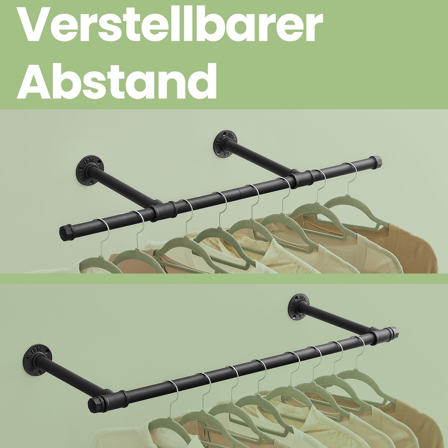 SONGMICS klädstång för väggmontering, klädhängare för väggmontering, industriell, platsbesparande, 30,4 x 170 x 7 cm, 68 kg belastningskapacitet, enkel montering, för små rum, svart HSR104B01