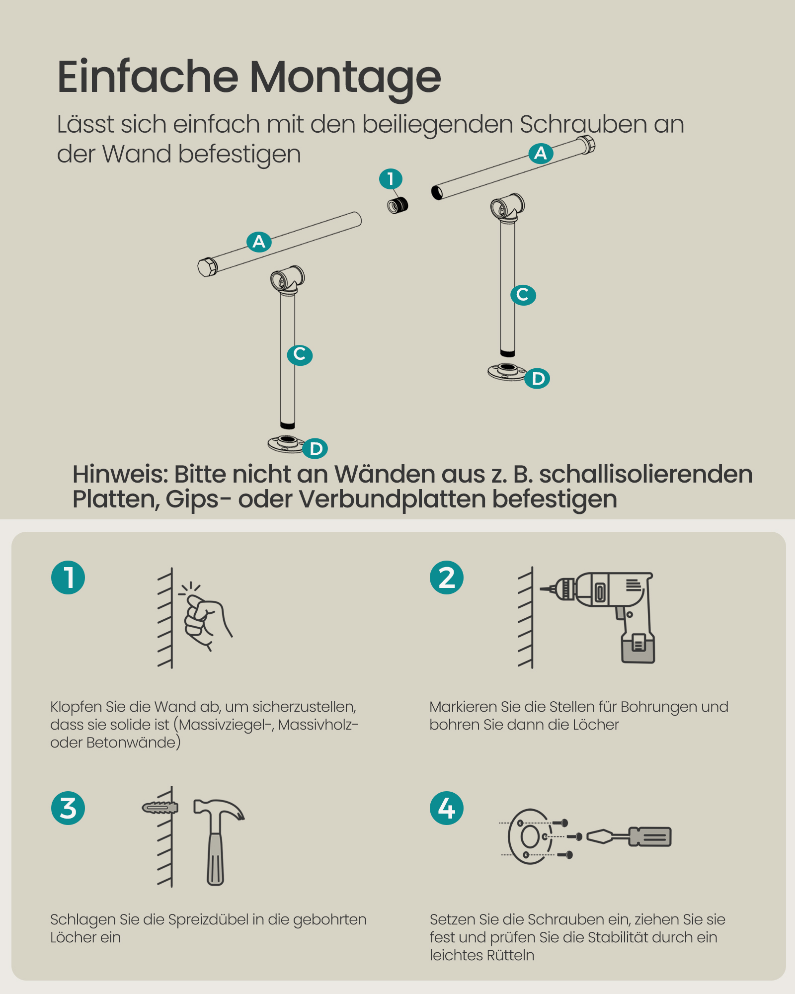 Bli först med att recensera ”SONGMICS klädstång för väggmontering 30 x 84 x 7 cm”
