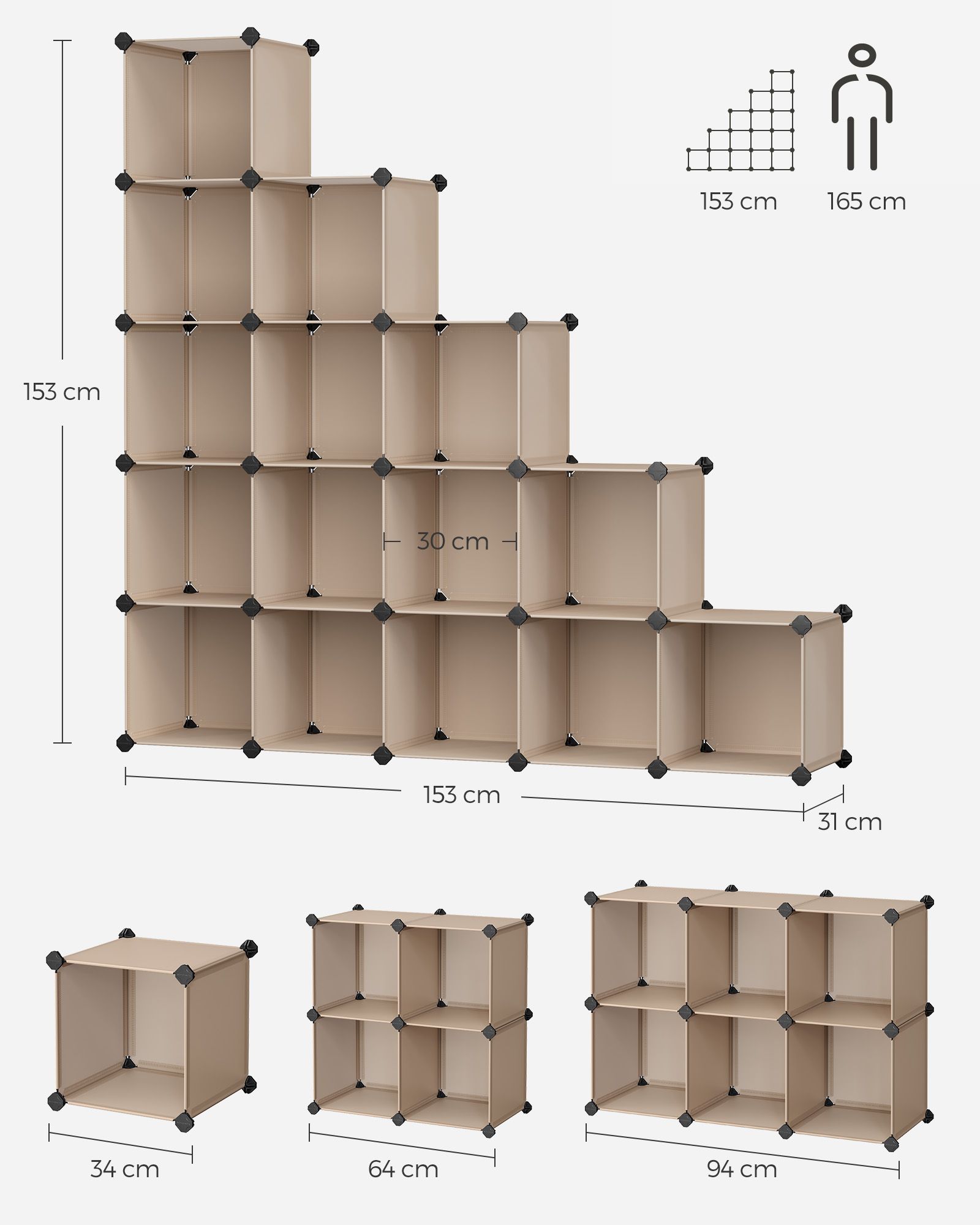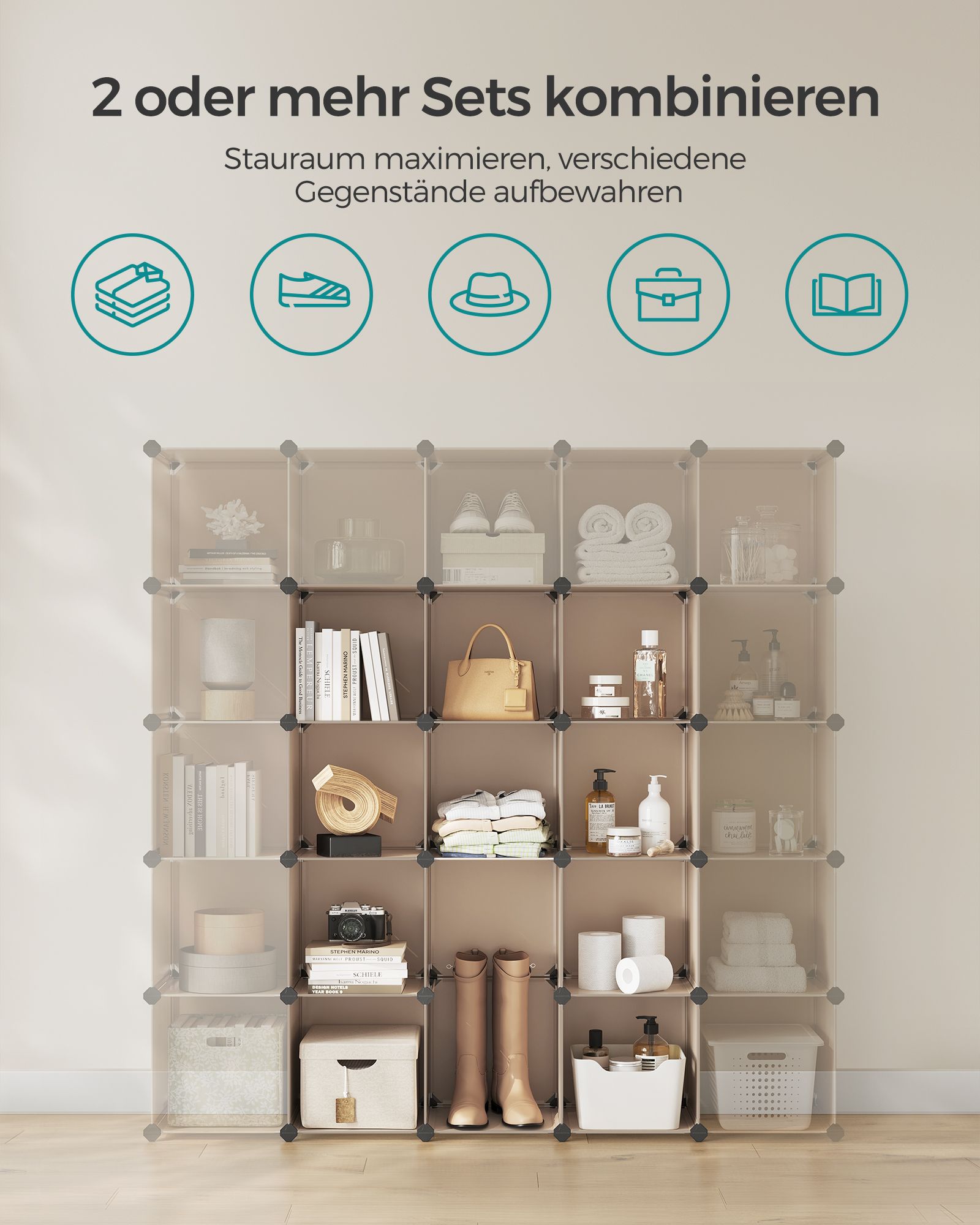 SONGMICS skoställ, hyllsystem, plugghylla, set med 15 kuber, DIY-hylla, stapelbar, tillverkad av PP-plast, som garderob, för sovrum, kontor