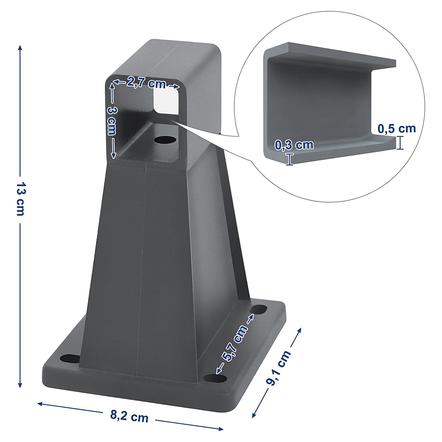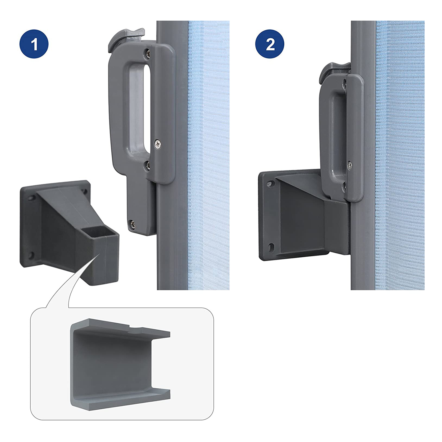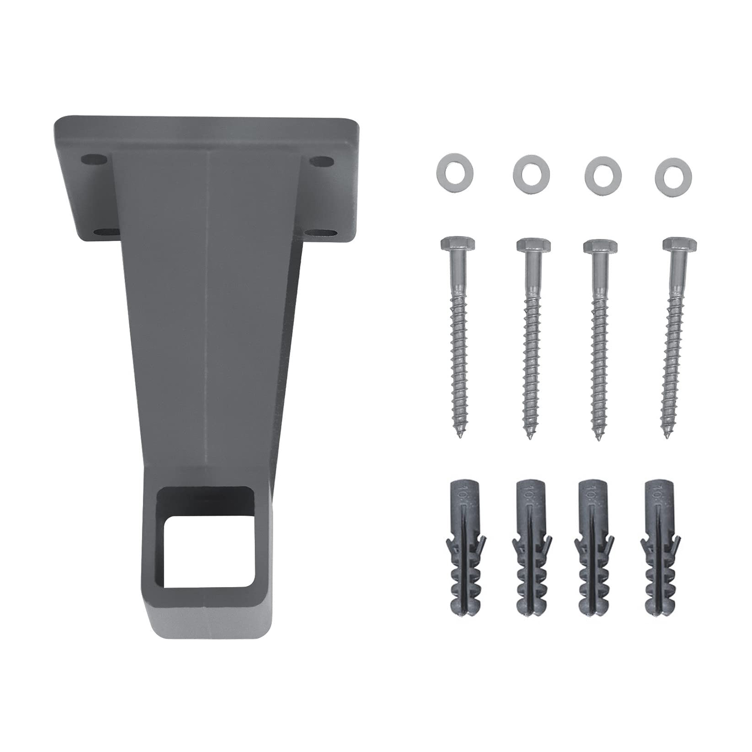 Perfekt komplement till SONGMICS sidomarkiser Väggfästet möjliggör flexibel montering av din sidomarkis. Detta ger dig ännu större frihet vid monteringen, eftersom du kan montera sidomarkisen så att den ansluter till en vägg utan att behöva montera en stolpe.Passar SONGMICS sidomarkiser i aluminium Oavsett vilken av SONGMICS högkvalitativa och vackra sidomarkiser i aluminium du har valt att köpa, passar väggfästet perfekt. Enkel montering Väggfästet monteras enkelt på en vägg. De skruvar och pluggar som behövs för ett säkert och fast fäste ingår naturligtvis i leveransen. Anpassa höjden på väggfästet efter höjden på handtaget på sidomarkisen. Högkvalitativt och robust Väggfästet är tillverkat av robust PA66-plast och håller sidomarkisen stadigt och säkert på plats. Kontrollera skruvarna regelbundet. Produktdetaljer: Färg: grå Material: PA66-plast Produktmått: 9 x 8 x 12,8 cm Vikt: 0,3 kg Leveransomfattning: 1 x väggfäste 4 x skruvar med väggdynor SONGMICS Anmärkningar:Denna produkt är inte lämplig för SONGMICS sidomarkiser med järnstativ. Passar för: GSA160E, GSA160G, GSA180E, GSA180G, GSA200E, GSA200G, GSA185E, GSA185G, GSA185G01,GSA205E,GSA205G,GSA205G01,GSA164G01,GSA184E01,GSA184G,GSA204E01,GSA204G01