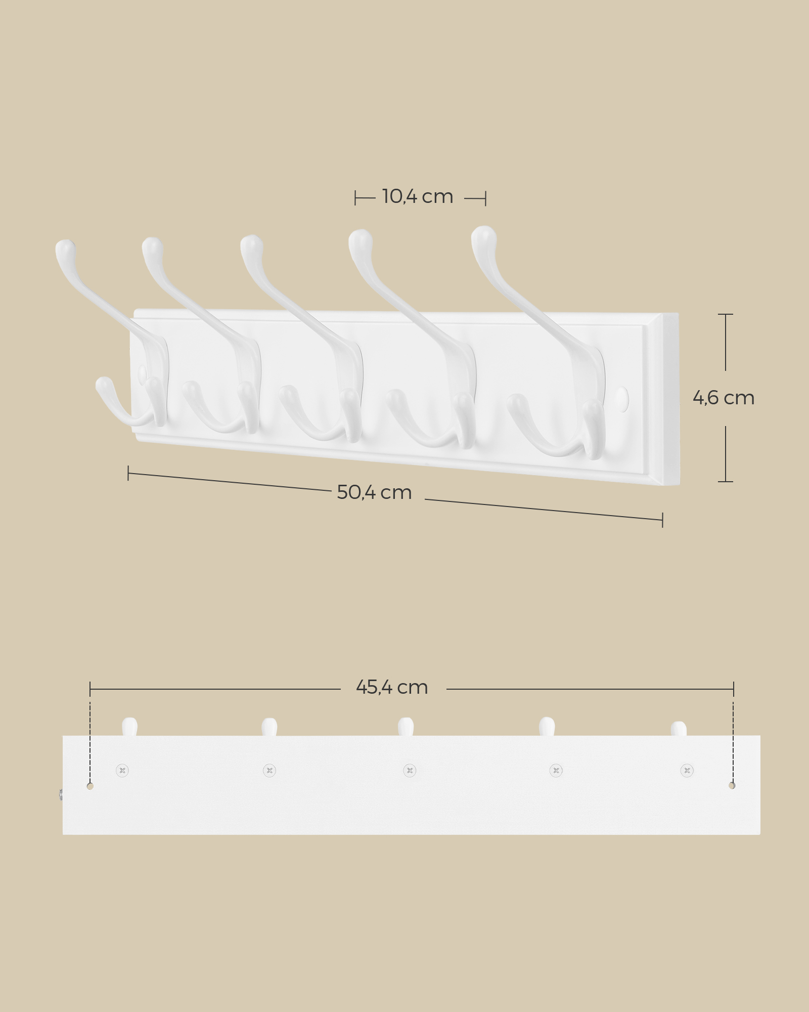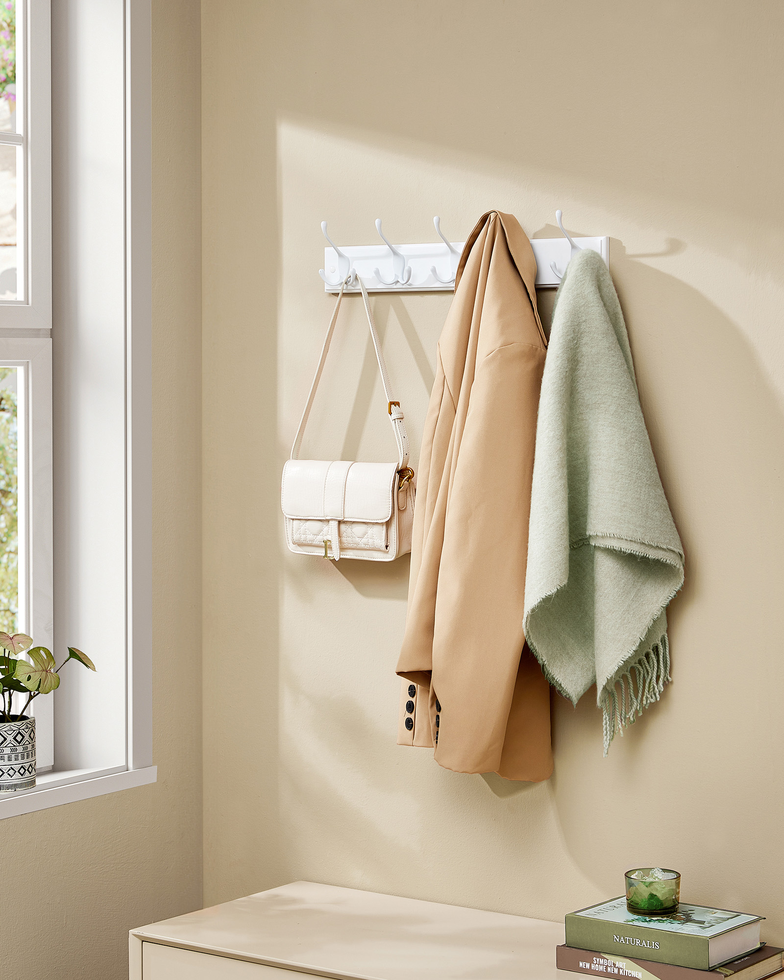 SONGMICS vägghängare, klädhängare, 5 tredubbla krokar i metall, krokspår för kläder, väskor, nycklar, för hall, sovrum, vardagsrum, förmonterad, molnvit LHR305W01