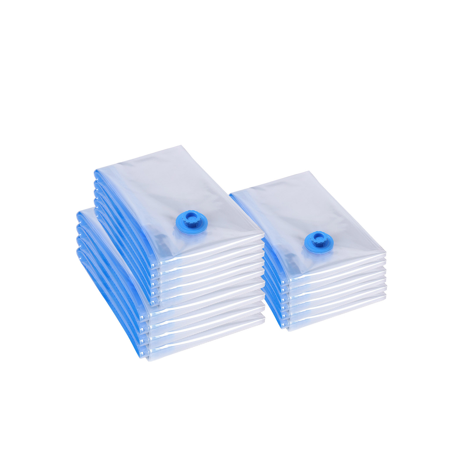 Spara plats med Songmics vakuumpåsar i 15-pack! Vakuumpåsarna är ett populärt hushållshjälpmedel och finns i olika storlekar för att passa dina olika behov av förvaring av oanvända kläder och sängkläder. Genom att vakuumförpacka sparar påsen 75 % förvaringsutrymme i din garderob och skyddar innehållet från damm, mögel och fukt. Tack vare platsbesparingen är Songmics vakuumpåsar också perfekta för resor. Du kan komprimera skidkläder, sovsäckar etc. så att de tar minimalt med plats i ryggsäcken/bilen. Med Songmics vakuumpåsar kommer du att ha glädje av ditt köp i många år. Produktdetaljer: – Färg: transparent – Mått: 50 x 60 cm (5 x); 60 x 80 cm (6 st); 80 x 100 cm (4 st) – Material: PA + PE – Tjocklek: 0,07 mm – Förpackningsmått: 40 x 27,5 x 14 cm Leveransomfattning: – 1 x 15-delars set vakuumförpackningar (utan luftpump)