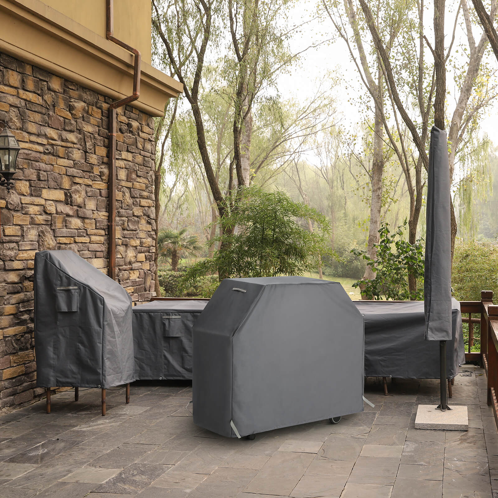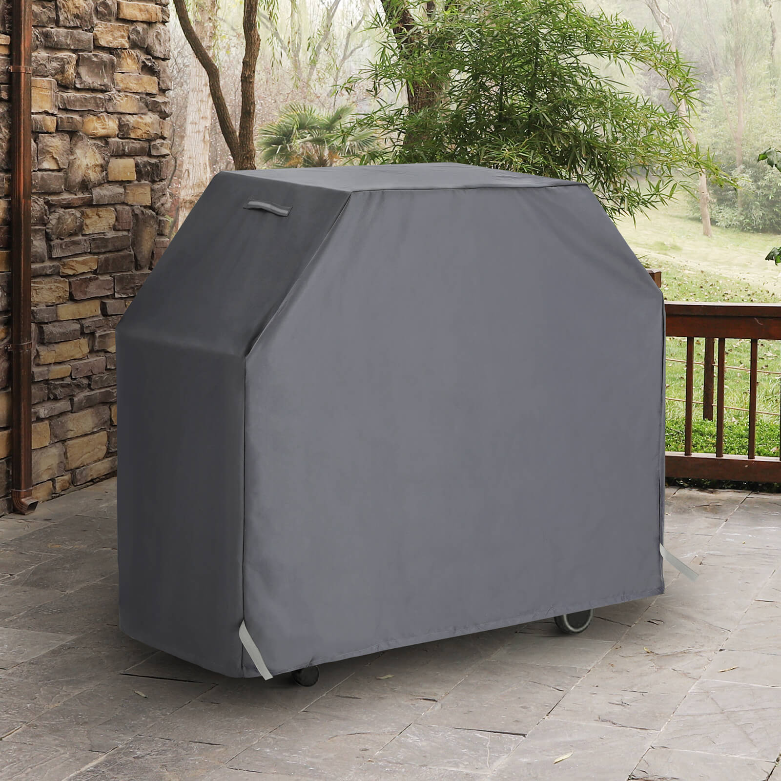 Denna presenning från SONGMICS är utvecklad för att skydda din grill inte bara mot vardagliga påfrestningar som solljus, damm och kåda, utan också mot plötsliga väderomslag med regn, vind och snö. Exceptionella material Det 600D PVC-belagda Oxford-tyget säkerställer att denna grillpresenning inte går sönder även vid kraftig regn och vind och förblir vattentät. Tyget är dessutom mycket robust och därför lämpligt för långvarig användning. Det har dessutom klarat TÜV Rheinland-testet för färgäkthet. Presenningen förlorar alltså inte sin mörkgrå färg, inte ens vid ihållande regn eller långa soltimmar. Viktiga detaljer Har du glömt att täcka över din grill och det har redan börjat regna? Oroa dig inte, för de två handtagen på presenningens ovansida och de två högkvalitativa kardborrebanden gör det enkelt för dig att täcka över grillen utan att förlora mycket tid. Kraftig vind? Dra åt repet på undersidan av skyddet så att det inte flyger iväg som en ballong. Titta även på andra skydd som SONGMICS erbjuder för att skydda alla dina utemöbler! Produktdetaljer: – Färg: mörkgrå – Material: 600D Oxford-tyg med PVC-beläggning – Produktstorlek: 147 x 61 x 122 cm (L x B x H) – Vikt: 1,8 kg Leveransomfattning: – 1 x grillöverdrag SONGMICS Anmärkningar: – Utsätt inte produkten för höga temperaturer och förvara den på en sval, torr plats. – Tvätta inte i tvättmaskin.
