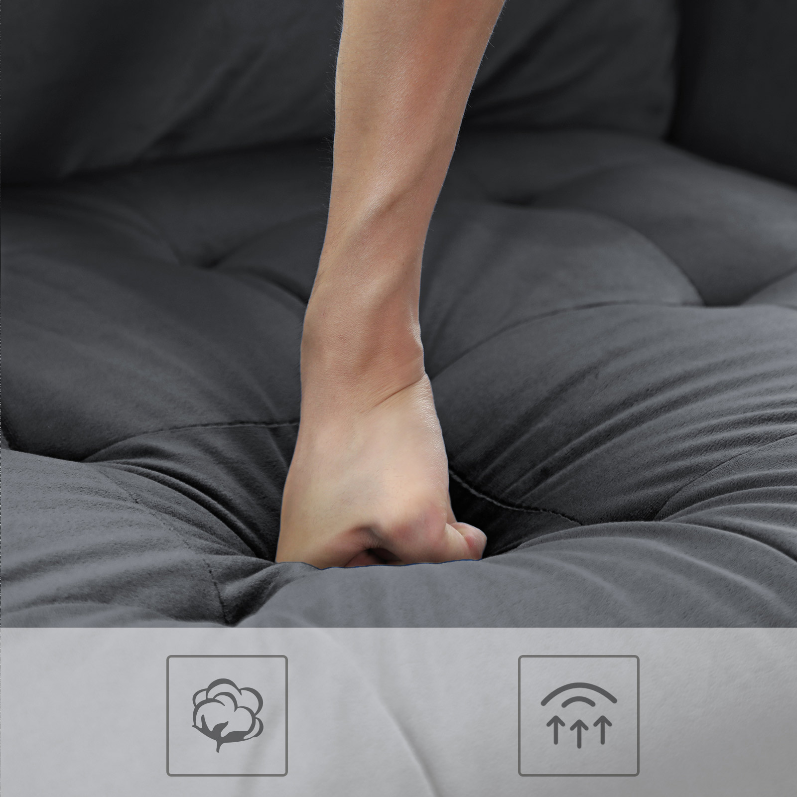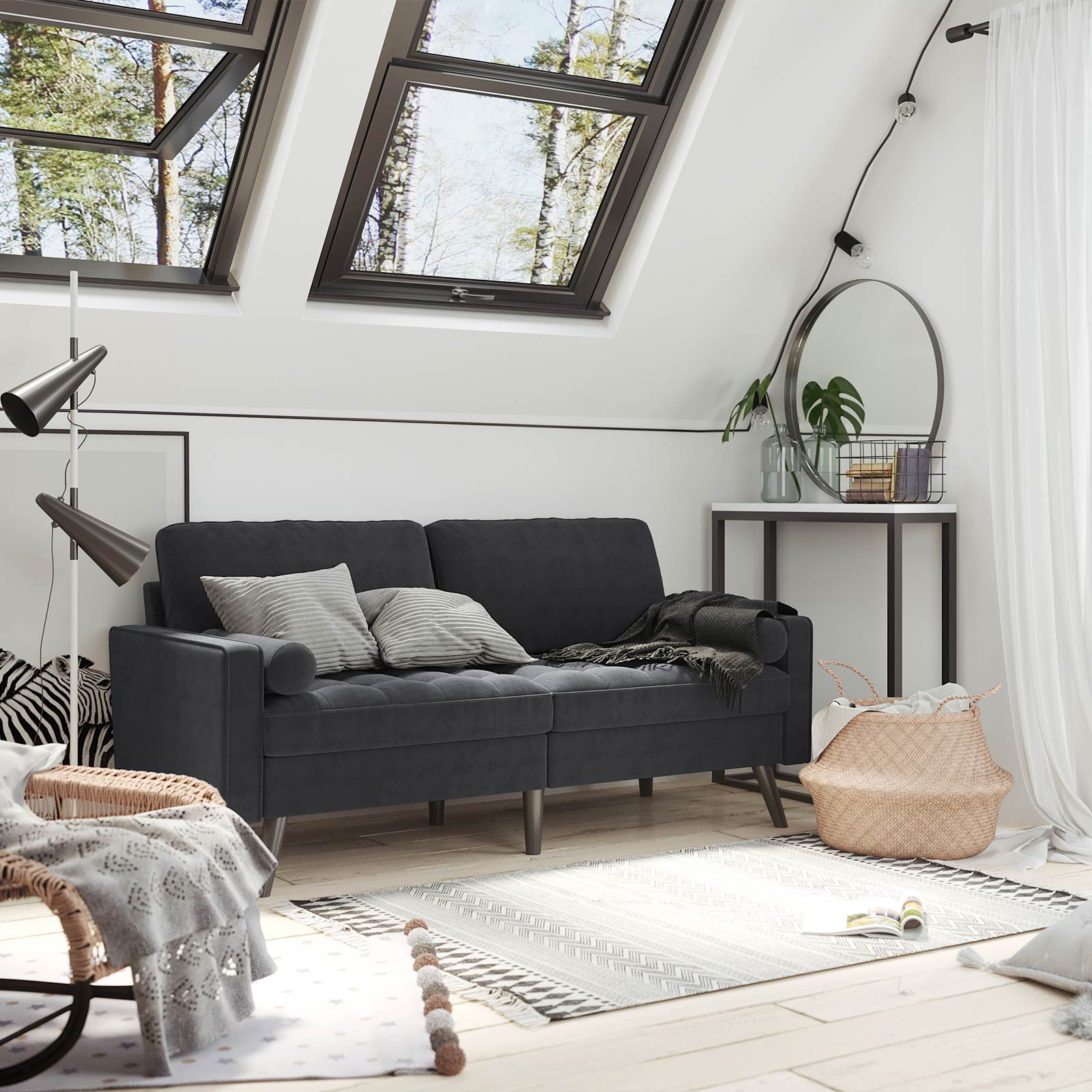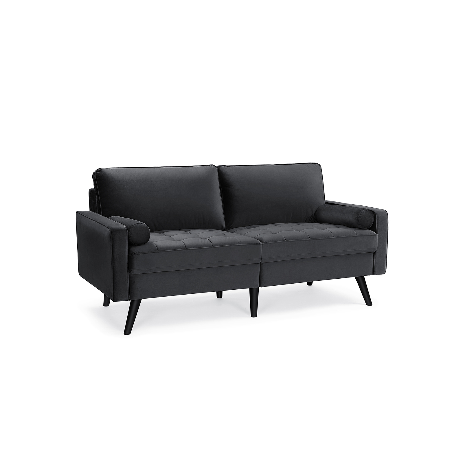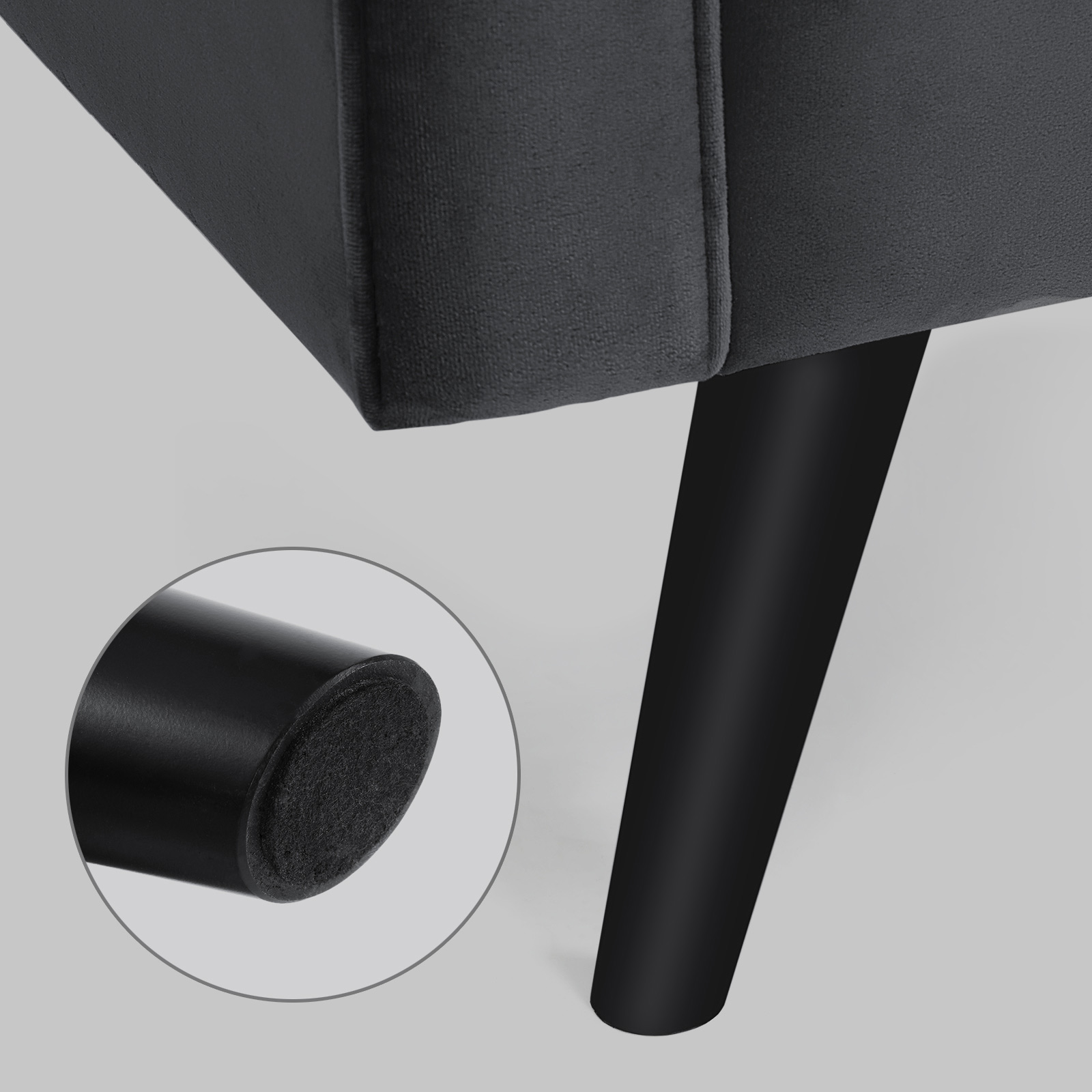 Svarta ben i massivt trä och grå sammet – en oslagbar kombination som inte bara förhöjer ditt hem, utan också är extra robust och slitstark. Höjdpunkterna i denna bekväma sittmöbel i korthet: – Soffans ben är tillverkade av gummiträ, vilket tillsammans med den stabila träkonstruktionen gör att soffan tål en belastning på 200 kg per sittplats. – Extra fack på soffans undersida där du kan förvara till exempel kuddar. – De stora kuddarna fästs på soffan med kardborreband och håller sig därmed alltid på plats. – Klädseln på kuddarna och nackrullarna är avtagbar och därmed lätt att rengöra. Produktdetaljer: – Färg: Grå – Material: Sammet, skumplast, gummiträ, eukalyptusträ – Storlek: 176 x 83 x 84 cm (L x B x H) – Vikt: 39 kg – Max. statisk belastningskapacitet per sittplats: 200 kg/8 timmar Leveransomfattning: – 1 x soffa – 1 x tillbehörspåse – 1 x bruksanvisning (DE, EN, FR, ES, IT) VASAGLE Anmärkningar: – Barn bör endast använda produkten under uppsikt av en vuxen. – Montera produkten enligt bruksanvisningen. Ändringar eller ombyggnader kan äventyra produktens säkerhet.